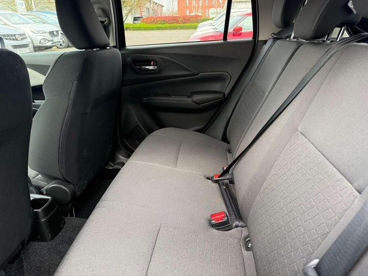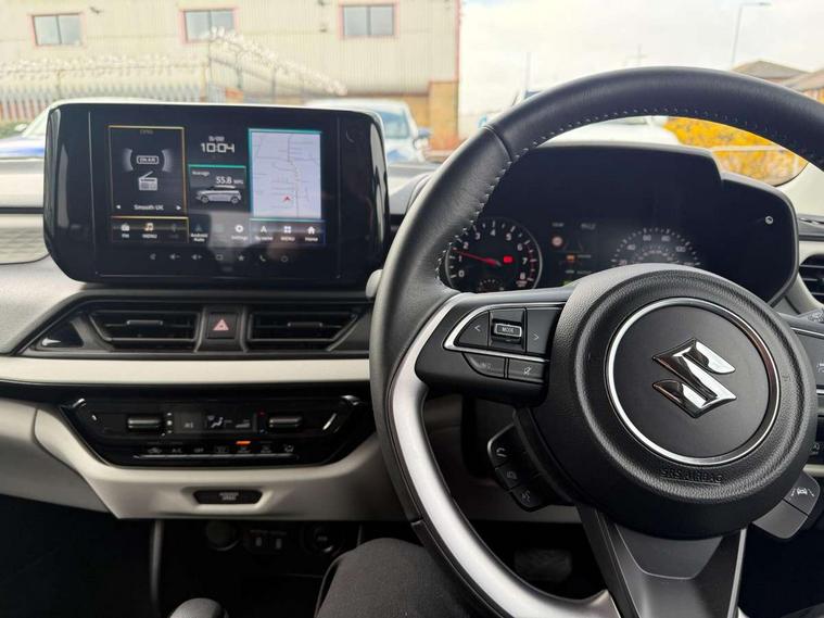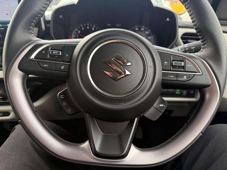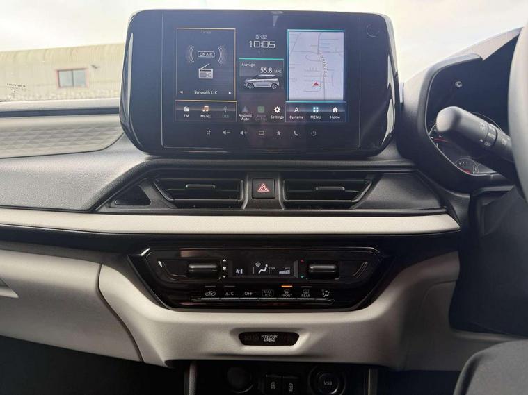 Adaptive cruise control with Stop and Go, Automatic start/stop system, Blind spot monitoring, Colour LCD information display, Digital clock, Driver monitoring system, eCall, Fuel consumption display (average/instantaneous) and range display, Intelligent speed control support, Lane departure prevention, Lane departure warning system, Lane keeping assist (LKA), Low fuel level warning light, Navigation system, Outside temperature display, PAS, Rear cross traffic alert, Rear parking camera, Rear parking sensors, Remote fuel cap release, Smartphone integration with Apple CarPlay and Android auto, Suzuki connect, Tailgate, Traffic sign recognition, Weaving alert, 4 speakers + 2 tweeters, 9-inch infotainment display, Auxiliary input socket, Bluetooth audio streaming, DAB Digital radio, Steering wheel audio controls, USB Type A and C, 'Guide me home' headlamps, 1 speed with intermittent rear wiper + washer, 2 speeds front wiper with intermittent + washer, Automatic headlights, Black coloured A & B pillars, Black Upper and lower front grille, Body colour door mirrors and handles, C pillar trim moulding, Electric door mirrors, Electric front windows, Electric rear windows, Green tinted glass, Heated door mirrors, High beam assist, LED daytime running lights, LED High mounted stop light, LED position lamps, LED projector headlamps, LED rear combination lamp, Manual headlamp level control, Rain sensor, Rear fog lights, Rear privacy glass, Rear side wing doors, Rear spoiler, Side spoiler, 1 cup holder in rear, 12V Accessory socket in front console, 2 cup holders in front, 2 Isofix seat anchors, 3 bench rear seats in 2nd row, 3 rear head restraints, 3 spoke leather covered steering wheel, 60/40 split rear seats, Accessory socket, Centre console storage, Centre lower box, Child seat tether anchorages x 2, Chrome handbrake release button, Chrome interior door handles, Cloth upholstery, Door pockets with bottle holder, Driver/passenger sunvisors with ticket holders + vanity mirrors, Front cabin lights, Front headrests, Front map light, Front passenger side assist grip, Glovebox, Heated front seats, Heater, Height adjustable driver's seat, Luggage area lamp, Manual air conditioning with digital control panel, Material door trim ornament, Parcel shelf, Passenger seat back pocket, Pollen filter, Single front passenger seat, Tilt adjustable steering wheel, Tilt/telescopic adjustable steering wheel, 3 point ELR seatbelts for centre seat, 3 point ELR seatbelts front and rear, ABS+EBD+Brake assist, Curtain airbags, Driver airbag, Dual sensor brake support, ESP + traction control, Front and rear seatbelt reminder, Front passenger airbag, Front passenger airbag deactivation, Front seatbelt pretensioners with force limiters, Hill hold control, Rear child proof door locks, Rear seatbelts with pre-tensioners and load limiters, Side airbags with incorporated into front seats, Tyre pressure indicator, Deadlocks, Freewheeling key cylinders, Immobiliser, Keyless entry and start, Light - on and Key in reminder, Locking wheel nuts, Remote central locking, Painted instrument panel ornament, 16" Painted alloy wheels,