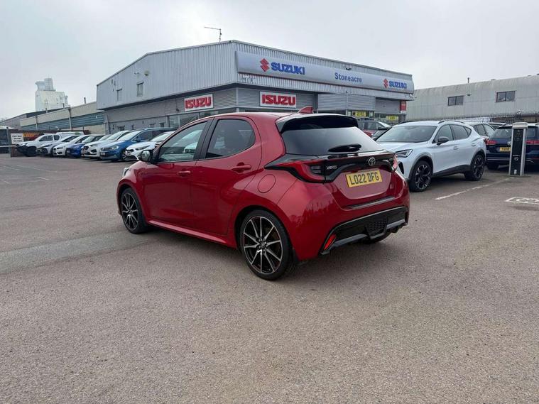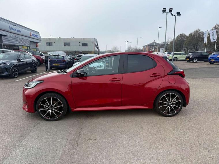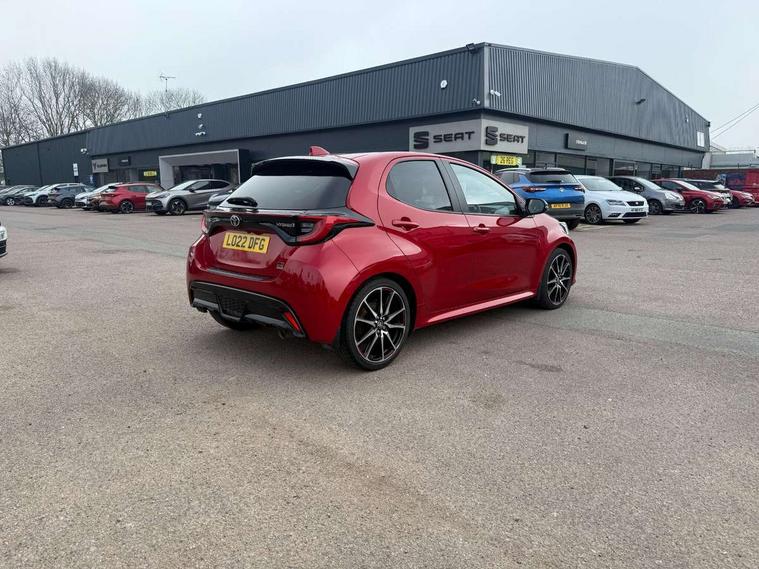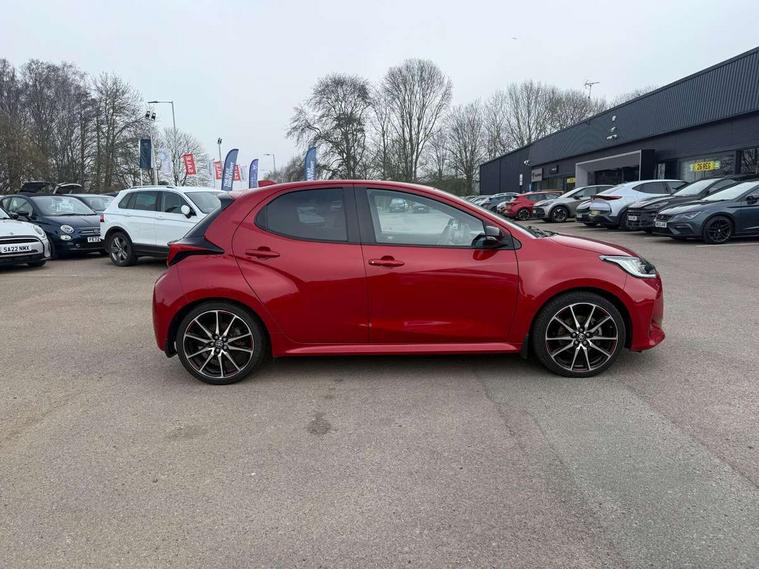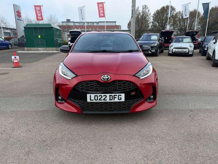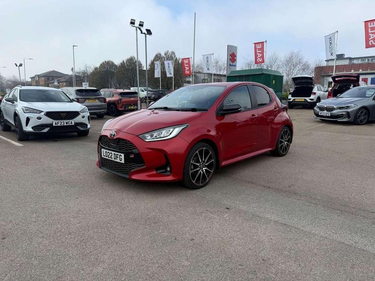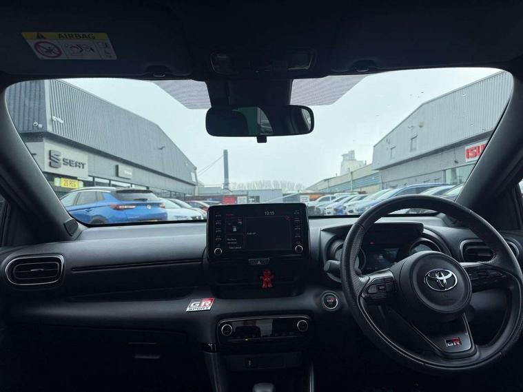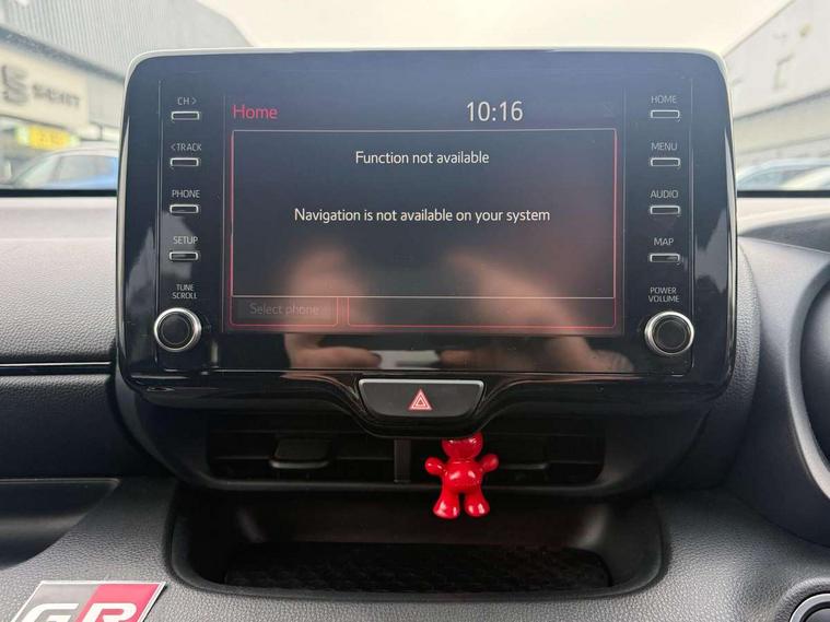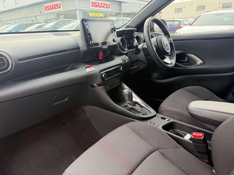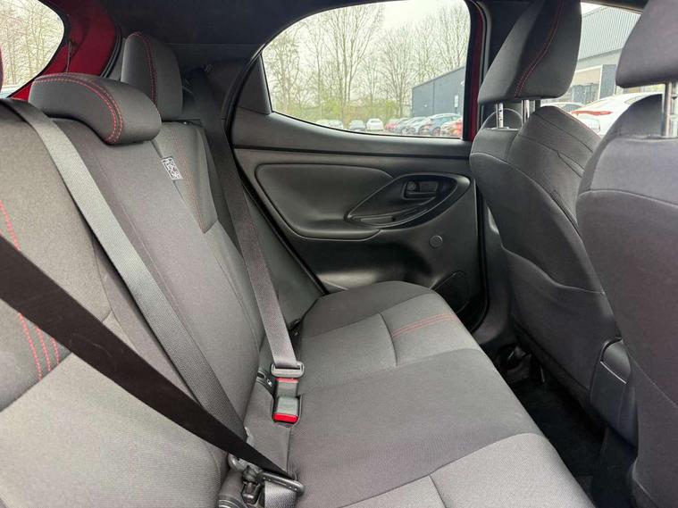 Adaptive cruise control, Adjustable speed limit with speed warning, Bluetooth connectivity, Colour binocular inspired displays with digital speedometer, E-call, Electric power steering, Hybrid energy display, Multi information display switches on steering wheel, Reversing camera, Smartphone integration with Apple CarPlay and Android auto, Voice recognition, Vehicle Stability Control (VSC), 6 speakers, 8" Multimedia display touch screen, Toyota Touch 2 with DAB, USB connection, Acoustic windscreen glass, Auto windscreen wipers, Automatic headlights, Body coloured door mirrors, Dark chrome lower meshed front grille, Electric adjustable heated door mirrors, Follow me home headlights, Front auto power windows with anti jam protection, Full LED rear lights, LED daytime running lights, LED front fog lights, LED front light guide, LED Headlights, LED High mounted stop lamp, LED Indicators, LED rear light guide, Manual headlight levelling, Painted chequered front grille with hot stamp in mesh design, Rain sensor, Rear auto power windows with anti jam protection, Rear privacy glass, Rear side wing doors, Rear spoiler, Rear wiper, Shark fin antenna, Turning signal integrated indicators in door mirrors, 3 adjustable rear headrests, 3 spoke leather steering wheel, 60/40 split folding rear seat, Active headrests, Adjustable boot height, Black roof lining, Coat hooks in rear grab handles, Cup holders (2 front & door), Data Communication Module (DCM) connected services, Dual zone automatic air conditioning, Fabric upholstery with red stitching, Front armrest, Front sport seats, Glovebox, Height adjustable driver's seat, Height adjustable passenger seat, Isofix seat fixing, Leather gearshift, Map pockets on the backs of the front seats, Pollen filter, Shopping bag hooks, Single front passenger seat, Tilt/telescopic steering column, 3 point seatbelts on all rear seats, ABS+EBD+Brake assist, Electronic parking brake, Emergency brake light system (EBS), Front passenger airbag on/off switch, Front seatbelt reminder, Hill start assist control (HAC), Rear child proof door locks, Rear seat belt reminder, Supplemental Restraint System (SRS) 8 airbags: Driver & passenger's airbags, dual side curtain airbags, side impact airbags, front centre airbag, Toyota Safety Sense 2, Precollison + Night time Pedestrian & Cyclist Detection, Lane Trace Assist, Auto High Beam, Intelligent ACC & Road Sign Assist, Tyre pressure warning system, 2x Master key, Alarm/immobiliser, Keyless smart entry with push button start, Remote AC via MyT, Remote locking via MyT, Remote powered central double locking doors, GR Sport interior styling with accents and exterior styling, Piano black interior trim, Soft touch instrument panel, Space saver spare wheel,