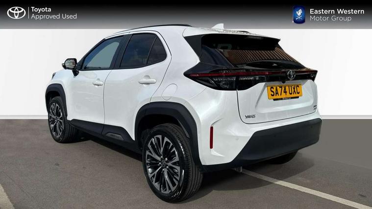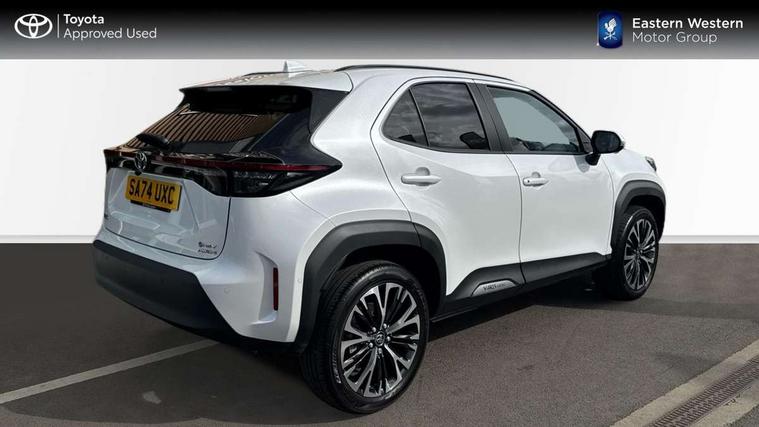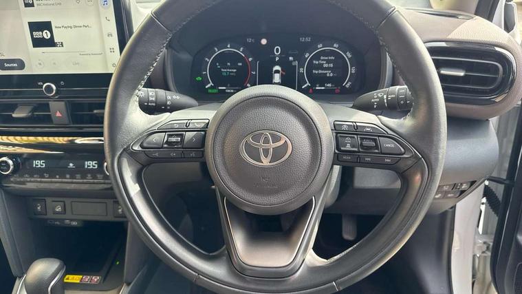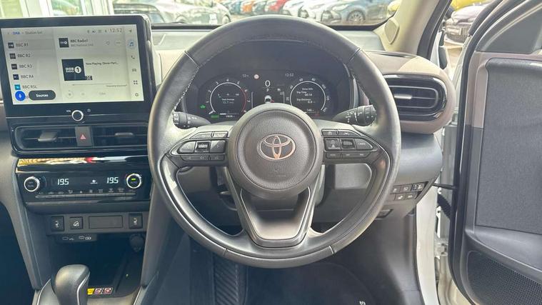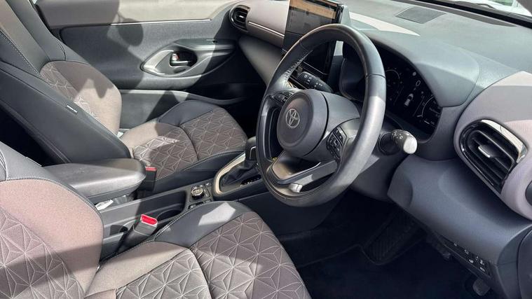 10.5" Multimedia display screen, 10.5" Toyota smart connect+ with navi multimedia system with wireless Smartphone integration incl Apple CarPlay, 360 degree panoramic view monitor, 7" Multi information display screen, Adaptive cruise control, multi info switches on steering wheel, Adjustable speed limiter, Advanced parking assist, Blind spot monitoring, Bluetooth connectivity, Color multi-information display, Digital speedometer, Digital tachometer, Drive mode selector, Driver attention alert system, Dynamic guide lines on reversing camera, eCall emergency system, Electric power steering, Emergency driving stop system, Full range intelligent adaptive cruise control, Hybrid system indicator, Intelligent front and rear parking sensors with clearance sonar and automatic braking, Intersection turn assist, Key reminder warning, Lane change assist, Lane trace assist, My T Connected services, Power tailgate, Pre-collision system enhanced with emergency steering assist, Rear cross traffic alert, Remote boot door release in cabin, Road sign assist - RSA, Safe exit assist, Telephone switch on steering wheel, Wireless Mobile Phone Charger, Rear limited slip differential (LSD) lock, Steering assisted vehicle stability control, 6 speakers, DAB Digital radio, Front USB Type-C connector, Front USB-C device charger, 3rd brake light, Acoustic windscreen glass, Anti-jam protection on power windows, Auto dimming rear view mirror, Auto high beam [AHB] with on/off switch, Auto intermittent windscreen wipers, Automatic headlights, Automatic headlights cut-off, AWD i-Badge, Black door moulding, Black lower front grille, Black protection moulding on side doors, Black roof rails, Black wheel arch mouldings, Body colour door handles, Body colour front bumper, Body colour rear bumper, Electric adjustable heated door mirrors, Follow me home headlights, Front and rear electric windows with auto up/down function, Gloss black upper front grille, Headlight cut off reminder, Indicators integrated on door mirrors, Intermittent rear wiper, Kick activated power back door, LED daytime running lights guide, LED front fog lights, LED front light guide, LED Indicators, LED projector headlights, LED rear lights with sequential indicators, Manual headlight levelling, Meshed shape upper front grille, Noise reduction layer on windscreen, Pre wiring for towing hook, Privacy glass, Rain sensor, Rear side wing doors, Rear spoiler, Rear window defogger, Shark fin antenna, 12v power outlet - front, 12V power point in boot, 2x Rear coat hooks, 3 seat bench in 2nd row, 3 spoke leather steering wheel, 40/60 split deckboard, 40:20:40 split folding rear bench seat, Adjustable rear headrests, Adjustable speed limiter switch on steering wheel, Boot light, Central armrest, Driver and front passenger personal lights, Driver and front passenger Whiplash injury Lesseing seats, Driver and passenger seatback pockets, Dual zone automatic air conditioning, Fabric door trim, Front console box, Front cup holders, Front door pockets, Front head restraints, Front sport seats, Front/rear assist grips, Gear shift indicator, Gloss black surround on gear shift console, Grey roof lining, Heated driver and passenger seats, Heated steering wheel, Height adjustable driver's seat, Height adjustable front passenger seat, Hooks for luggage holding belts, ISOFIX child restraint system, Lane departure alert switch on steering control, Leather gearshift, LED centre room light, Light on driver and passenger sun visor, Manual telescopic and tilting steering wheel, Mirror on driver and passenger sun visor, Nanoe-X air purifier, Partial synthetic leather upholstery, Pollen air filter, Power adjustable lumbar support on driver seat, Rear cup holders, Rear door pockets, Rear head restraints, Remote air-conditioning system, Single compartment glovebox, Single front passenger seat, Soft tonneau cover, Storage box under boot floor, Voice recognition switch on steering wheel, White ambient lighting in centre console, White ambient lighting in footwell, White ambient lighting on front doors, Yaris cross floor mats, Tech pack - Yaris Cross, 3x3 point rear seat belts, ABS+EBD+Brake assist, Downhill Assist Control (DAC), Driver and passenger central airbags, Driver and passenger front airbags, Driver and passenger side airbags, Electronic parking brake, Emergency brake light system (EBS), Front seat belt reminder, Hill start assist control (HAC), Passenger airbag on/off switch, Pre-collision system with pedestrian and cyclist detection, Rear door child safety locks, Rear passenger side airbags, Rear seat belt reminder, Traction control, Tyre pressure warning system, Immobiliser, Intrusion alarm, Keyless smart entry with push button start, Power door locks, Power passenger window lock, Remote door lock, Gloss black side air vent surrounds, Tyre repair kit,