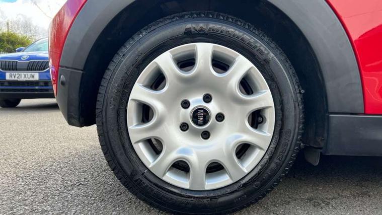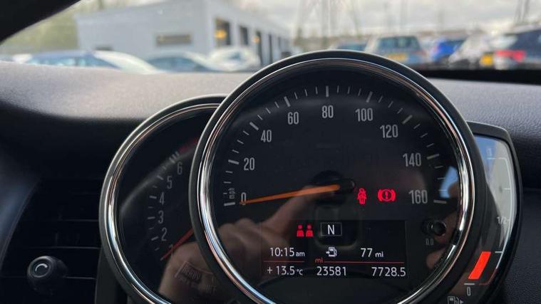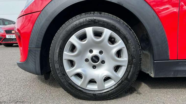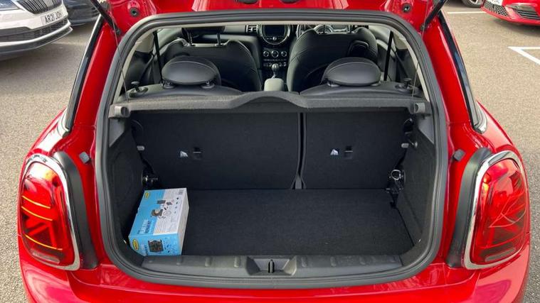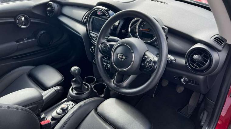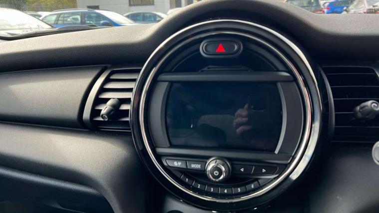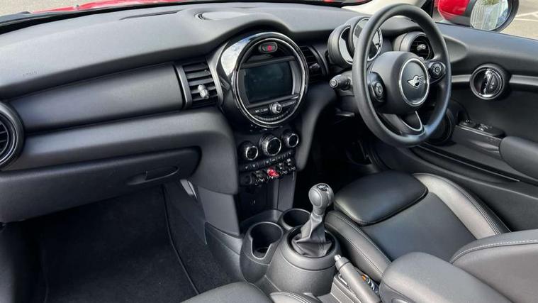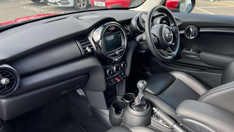 Automatic start/stop function with brake energy recuperation, Compatible mobile phone bluetooth with audio streaming, Electro-mechanical speed dependant steering assistance, Instrument cluster, Mini E-call, MINI TeleServices, On board computer, Service interval indicator, Double Vanos system, Fully variable valve control, High precision injection, 6.5" touchscreen with LED ring, FM tuner and DAB digital radio, Automatic headlight activation switch, Body colour fuel filler cap, Body colour roof and mirror caps, Chrome border high gloss black slats radiator grille, Dynamic brake lights, Electric front+rear windows, Exhaust tailpipe, Heated rear window, Heated windscreen washer jets, LED headlight with closed ring and daytime driving lights, Metal door sill strips with MINI imprint, Rain sensor window wipers, Rear fog lights, Rear LED lights with union jack design, Rear window wiper, Side scuttle panel with integrated indicator, Sun/heat protection glass, White indicator lenses, 12V Accessory socket in centre console, 4 lashing eyes in luggage compartment, 60/40 split folding rear seat, Chrome interior highlights, Colour line - Carbon black, Cupholders, Front and rear head restraints, Front and rear isofix with front passenger airbag deactivation, Glove compartment, Height and length steering column adjustment, Interior lighting with 12 basic colours selectable via toggle switch in roof, Leather gearshift lever and handbrake gaiters, LED reading lights, vanity mirror lights, front foot well light and spotlight on front seats, Manual air conditioning, Mechanical seat adjustment, driver seat height adjust, forward/back and front seats backrest, Mini logo projection on floor from drivers exterior mirror, Multifunction steering wheel, Satellite grey headlining, Storage compartments in doors, Sunvisors with vanity mirrors, 3 point seatbelts on all four seats, 6 Airbags - front, side, head and seat belt tensioners, Anti-lock braking system (ABS), DSC - Dynamic Stability Control, Front and rear disc brakes, Hill start assist, Single tone fanfare horn, Tyre pressure monitoring system, Alarm system with tilt sensor, monitoring doors, bonnet interior and tailgate, Electronic vehicle immobiliser, Start/stop toggle with keyless go, Tool kit,