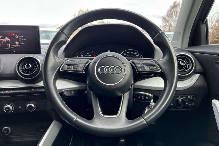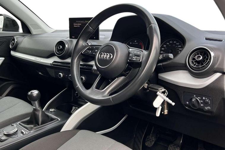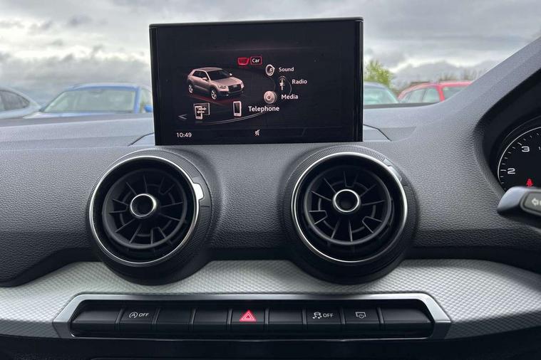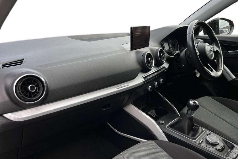 Audi smartphone interface, Automatic start/stop system with recuperation, Bluetooth interface includes bluetooth audio streaming, MMI - Multi Media Interface control system, Power operated tailgate, Progressive steering, Service interval indicator, Voice control system, Dynamic suspension, 2 x SDXC card reader, Audi music interface - apple iPod, apple iPhone, USB storage media, compatible MP3 players, 2 x USB charging points and 1 x Aux-in, CD Drive, DAB digital radio reception, MMI radio plus with 7" colour MMI screen and MMI controller, Black window trims, Body colour door mirrors, Chrome exhaust tailpipe, Contrast bumpers in Manhattan grey paint finish, Electrically adjustable and heated door mirrors with integrated LED side indicators, Front and rear electric windows, Front underbody guard and rear diffuser trim in selenite silver, Interior mirror, LED indicator lights, Rain and light sensors, Rear wiper, 3 spoke multi-function leather steering wheel, Aspect cloth upholstery, Door sill trims with aluminium inlay, Front centre armrest, Front headrests, Front/rear floor mats, Height/reach adjust steering wheel, ISOFIX child seat mounting with top tether and electrically operated child lock, Manual seat adjustment including seat height adjustment for front seats, Standard seats, Storage compartments - Glovebox, cupholder compartment in centre console, storage compartment in rear centre console, front and rear door pockets, Three rear headrests, Titanium grey cloth headlining, Connectivity pack - Q2, Non smoking pack - Q2, 3x3 point rear seatbelts, 6 airbags - Front, curtain and front side airbags, Electromechanical parking brake, Electronic stabilisation control including ABS, ASR and EDL, Extended and proactive pedestrian protection, Hill hold assist, Multi collision brake assist, Pre-sense front with pedestrian recognition, Seatbelt monitoring, Tyre pressure warning light, Warning triangle and first aid kit, Anti theft alarm, Anti theft wheel bolts, Central locking system with remote control key,
