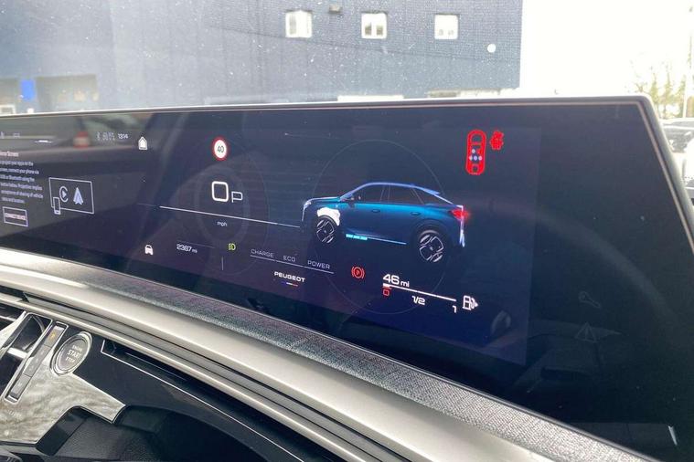 Bluetooth with two microphones (Connect up to 2 phones), Drive modes select (Eco, normal and sport) with configurable ambient lighting, Driver attention alert, Driver foot rest, Driver profile selection, E-call, Exterior temperature indicator with ice warning, Front passenger seat detection, Lane keep assist, Manual gear changes via steering mounted paddles, Multi function trip computer, Natural voice recognition, PEUGEOT i-Cockpit - 21" HD panoramic curved display incorporating instrument panel and touchscreen with 3colour themes, PEUGEOT i-connect advanced HD fully customisable touch screen, Navigation with Tom Tom Live updates and over the air map updates, PEUGEOT SOS and assistance, Rear parking sensor, Speed limit and traffic sign recognition and recommendation, Wireless mirror screen with apple carplay and android auto, Wireless smartphone charger with status light and ambient lighting, Dynamic stability control and electronic anti-skid system, 6 speakers, AM/FM bi-tuner, DAB Radio (Digital Audio Broadcasting), Peugeot customisable virtual iToggles, USB-C sockets (2 x front and 2 x rear), 3008 model designation badgers front and rear in basalt grey, Acoustic windscreen, Automatic hazard light activation upon heavy brake application, Automatic headlamp activation, Automatic windscreen wiper activation with interval wiping intensity control, Body colour floating effect rear roof spoiler, Body colour roof, Body coloured exterior door handles, Dark tinted privacy glass for rear door, Tailgate and Quarter windows, Door mirrors - Welcome lighting and integrated LED indicators, Eco LED headlights, Electric adjustable/heated/folding door mirrors, Electrochrome rear view mirror, Flat blade wipers with magic wash integrated nozzles, Front and rear electric windows with one touch, Front grille with body coloured accents, Gloss black connecting strip between rear lights, Gloss black finish B pillar, Grained black lower door claddings and wheel arches, Hybrid rear badging in basalt grey, Laminated windscreen, LED exterior lighting, LED third brake light, Lower front and rear bumper trims in meteor grey, Orbital gloss black door mirrors, Peugeot 3-claw signature front and rear daytime running lights, Rain sensor, Rear side wing doors, Rear wiper, Tailgate with heated rear window, 12V socket in front and boot, 2 cupholders in front centre console, 3 seat rear bench, 4 Grab handles retractable and damped, 4 tie down luggage rings, 40/20/40 folding rear seat backrest with fixed base, 8 colour ambient lighting, Aluminium pedals, Arch design central console with concealed storage, Cabin high efficiency filter, Central front armrest with ventilated storage compartment and LED lighting, Chrome finish interior door handles, Compact split leather mutifunction steering wheel with gloss black and satin chrom detailing, Dual zone climate control, Dynamic front seats, e-Toggle compact gear selector, Electric power steering with reach and rake adjustable steering column, Glasses storage box, roof mounted, LED boot light, LED footwell lights, LED front and rear reading lights with push button control, LED Glovebox light, LED illuminated driver and passenger concealed sunvisor mirrors, Luggage cover, Mistral black pillars and headlining, Quick launch cabin heating/cooling function, Rear air vents, RISPY embossed fabric upholstery, Roof lining - Meteor grey, Seatbelt unfastened on the move audible and visual alert for front and rear seats, Single front passenger seat, Two bag hooks, Two position boot floor, 2x Isofix child seat fitting on outer rear seats with zipped cover, 3x3 point rear seat belts, ABS (Anti-lock Braking System) with EBD (Electronic Brakeforce Distribution) and EBA (Emergency Braking Assistance), Advanced Emergency Braking System with radar (AEBS3) providing night detection of pedestrians and cyclists, Child locking functionality on rear doors, Driver and front passenger airbags with airbag deactivation function, Driver and front passenger side airbags, Electric parking brake, Front and rear curtain airbags, Front optimised safety headrests and 3 x rear retractable headrests with height adjustable, Front/rear disc brakes, Hill start assist, Post collision safety brake, Seatbelts - Front and rear outer seats with pyrotechnic pretensioners and force limiters, 2x Keys (Lock, Unlock, Boot release function with concealed key), Acoustic vehicle alert system (AVAS), Automatic door locking when moving off, Deadlocking system, Electronic code immobiliser, Exterior passenger door lock, Locking wheel nuts, Peugeot Open and Go (keyless entry and push button start), Seatbelts reminder and unfastend warning indicator, Thatcham category 1 Perimetric and volumetric alarm with anti-lift detection, Stene grey finish for dashboard, door panels and central console decors, 19" BREDA diamond cut alloy wheels with star center cap in orbital black, Michelin e-primacy class A tyres,
