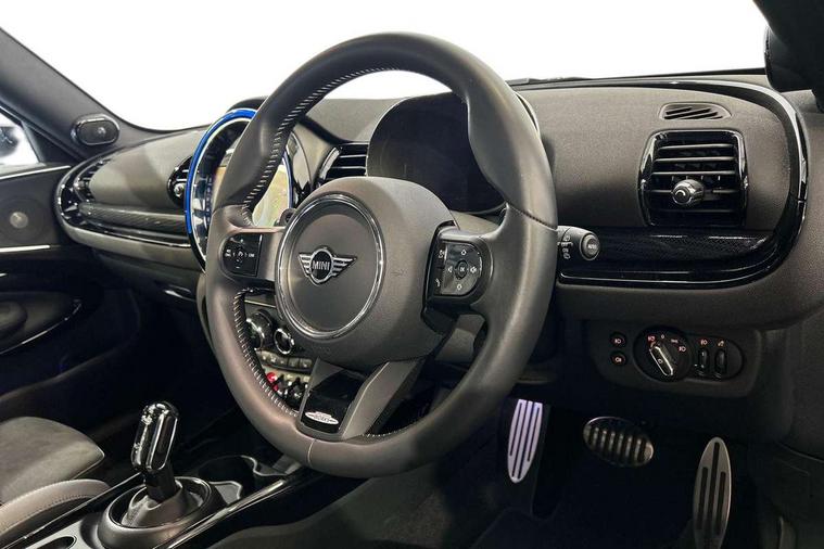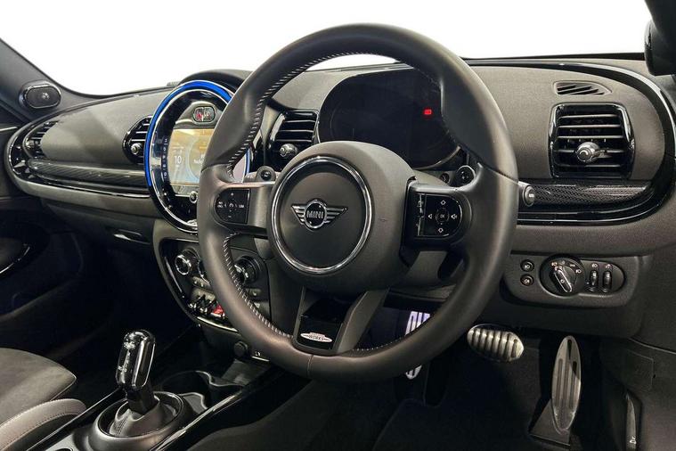 Active Guard incl speed limiting and lane departure functions with auto steering, and front collision warning with brake intervention, Automatic start/stop function with brake energy recuperation, Compatible mobile phone bluetooth with audio streaming, Digital cockpit, Electro-mechanical speed dependant steering assistance, Instrument cluster, Mini E-call, MINI TeleServices, On board computer, Rear parking distance control, Double Vanos system, Fully variable valve control, High precision injection, Performance Control, Steptronic sport transmission with double clutch and steering wheel paddles, FM tuner and DAB digital radio, Bonnet scoop, Chrome fuel filler cap, Dynamic brake lights, Electric windows, Heated rear window, Heated windscreen washer jets, John Cooper Works - aerodynamic kit (front and rear apron, spoiler), front and rear sport bumpers and part-painted side sills with door sill finishers, John Cooper Works rear spoiler, LED headlights with closed ring as daytime driving lights, LED rear light with union jack design, Metal door sill strips with Cooper S imprint, Model logo, Model logo on rear doors, Radiator grille, Rain sensor with auto headlights, Rear fog lights, Rear window wiper, Side scuttle panel with integrated indicator, Split rear doors, Sun/heat protection glass, Twin exhaust tailpipe, White indicator lenses, 12V Accessory socket in centre console, 360L luggage compartment capacity, 4 lashing eyes in luggage compartment, 60/40 split folding rear seat, Anthracite headlining with grab handles and clothes hooks, Chrome interior highlights, Cupholders, English handbook, Glove compartment, Height and length steering column adjustment, Interior lighting with 12 basic colours selectable via toggle switch in roof, Isofix rear child seat preparation, John Cooper Works perforated leather steering wheel with contrast stitching in chilli red and John Cooper Works logo, John Cooper Works sports seat with integrated headrest, adjustable thigh support and John Cooper Works logo, Leather gearshift lever and handbrake gaiters, LED reading lights, vanity mirror lights, front foot well light and spotlight on front seats, Manual air conditioning, Multifunction steering wheel, Storage compartments in doors, Sunvisors with vanity mirrors, Toolkit, Excitement pack - Clubman, Navigation pack - Clubman, 2 tone horn, 3 point seatbelts on all seats, 6 Airbags - front, side, head and seat belt tensioners, Anti-lock braking system (ABS), DSC - Dynamic Stability Control, Electronic handbrake, Front and rear disc brakes, Tyre pressure monitoring system, Alarm system with tilt sensor, monitoring doors, bonnet interior and tailgate, Auto drive away locking, Deadlocking function, Electronic vehicle immobiliser, Locking wheel bolts, Start/stop toggle with keyless go,