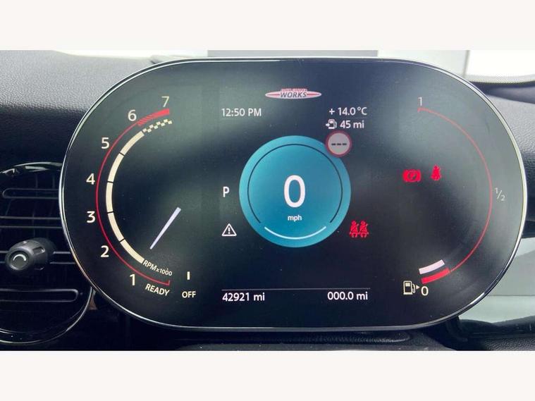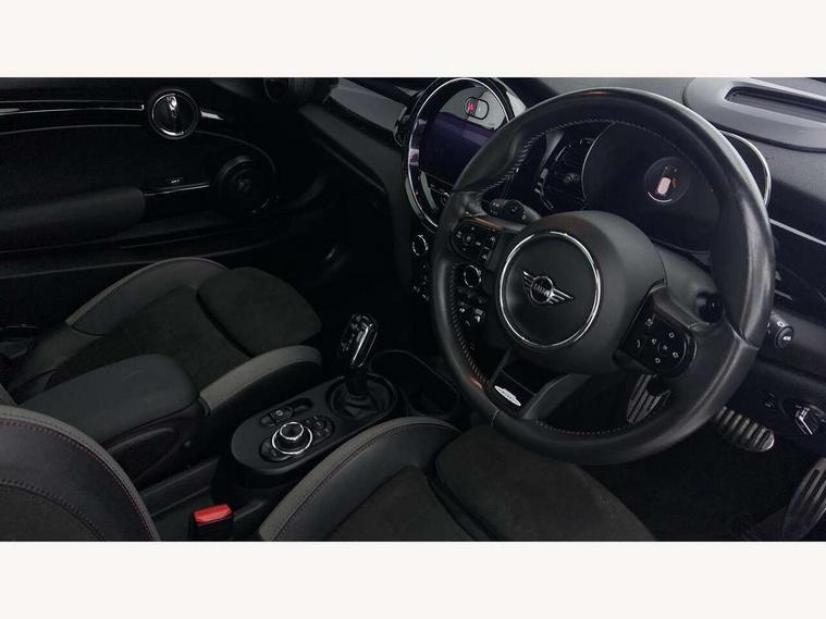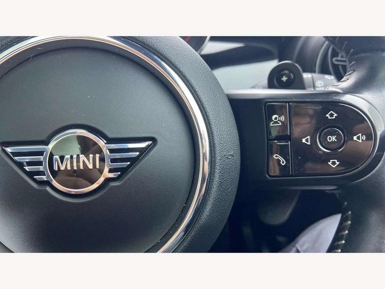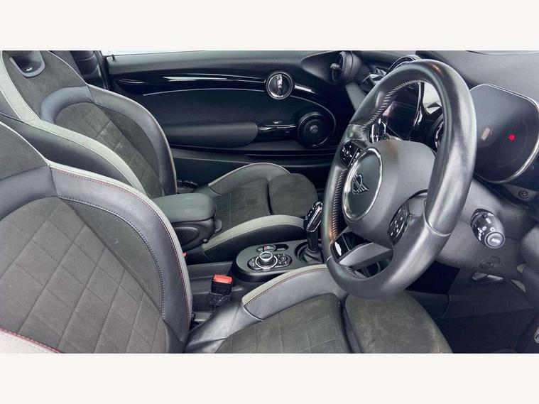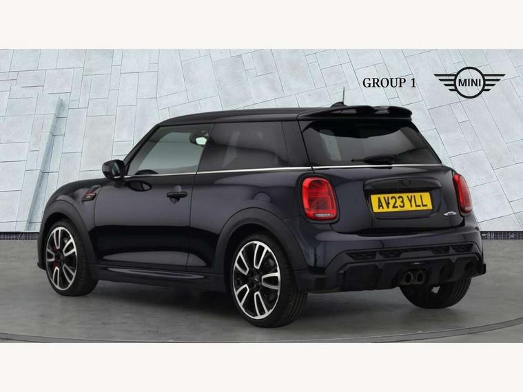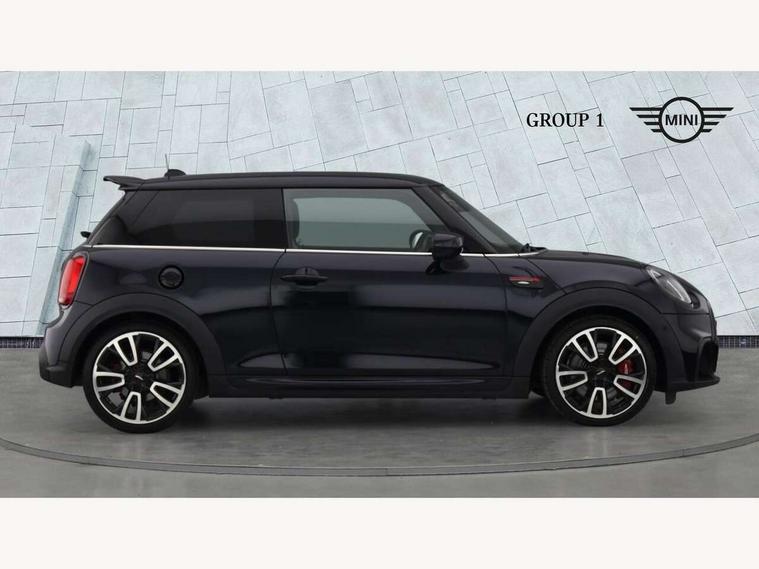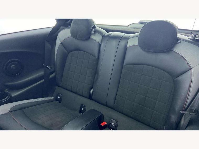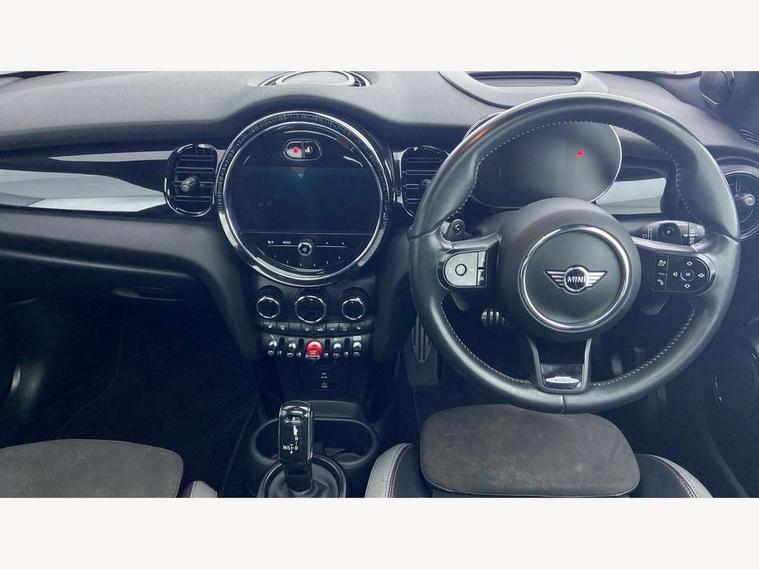Apple CarPlay, Automatic start/stop function with brake energy recuperation, Compatible mobile phone bluetooth with audio streaming, Cruise control with brake assist, Electro-mechanical speed dependant steering assistance, Flexible car sharing preparation, Instrument cluster, MINI Driving Modes - centre toggle switch to control driving setting (sport, mid and green), Mini E-call, MINI TeleServices, On board computer, Rear park distance control, Service interval indicator, Double Vanos system, Eight speed steptronic sport transmission, with gearshift paddles, Fully variable valve control, High precision injection, Performance Control, 8.8" touchscreen with LED ring, FM tuner and DAB digital radio, 3rd brake light, Automatic headlight activation switch, Bonnet scoop, Dynamic brake lights, Electric front windows, Heated rear window, Heated windscreen washer jets, JCW Aerodynamic kit - Front and rear bumpers with sporty JCW styling and part-painted side sills with MINI John Cooper Works door sill finishers, John Cooper Works logo above an individual grille strut in Chilli Red, John Cooper Works rear spoiler, LED headlight with closed ring and daytime driving lights, Radiator grille piano black border with honeycomb structure in black matt, Rain sensor window wipers, Rear fog lights, Rear LED lights with union jack design, Rear window wiper, Side scuttle panel with integrated indicator, Side scuttle with MINI John Cooper Works logo in black high-gloss with red border, Sun/heat protection glass, Two central exhaust tailpipes with chrome finisher, White indicator lenses, 12V Accessory socket in centre console, 2 seat bench in 2nd row, 4 lashing eyes in luggage compartment, 60/40 split folding rear seat, Anthracite headliner including grab handles and clothes hooks, Carbon black colour line - Knee roll and door armrest, Chrome interior highlights, Cupholders, Front and rear isofix with front passenger airbag deactivation, Front floor mats in velour, Glove compartment, Height and length steering column adjustment, Interior lighting with 12 different colours across the dashboard, underneath door bezel with illuminated laser-engraved design on central display, JCW Sport seats with integrated headrests, adjustable thigh support and John Cooper Works logo, Leatherette gearshift lever and handbrake gaiters, LED reading lights, vanity mirror lights, front foot well light and spotlight on front seats, Manual air conditioning, Mechanical seat adjustment - forward/back & backrest for front seats and driver seat height adjust, Multifunction steering wheel, Passenger seat height adjuster, Rubberised stainless steel pedals, Single front passenger seat, Storage compartments in doors, Storage pocket on back of front seats, Sunvisors with vanity mirrors, Walknappa leather steering wheel with grey seam and John Cooper Works badge on Piano Black lower steering wheel spoke, Navigation pack without Apple Carplay - Mini Hatchback, Piano black exterior pack - JCW, 3 point seatbelts on all four seats, 4-piston fixed-calliper brakes front, 6 Airbags - front, side, head and seat belt tensioners, Anti-lock braking system (ABS), DSC - Dynamic Stability Control, Front and rear disc brakes, Red brake callipers with John Cooper Works logo, Single tone fanfare horn, Tyre pressure monitoring system, Alarm system with tilt sensor, monitoring doors, bonnet interior and tailgate, Electronic vehicle immobiliser, Start/stop toggle with keyless go, Tool kit,