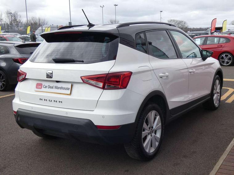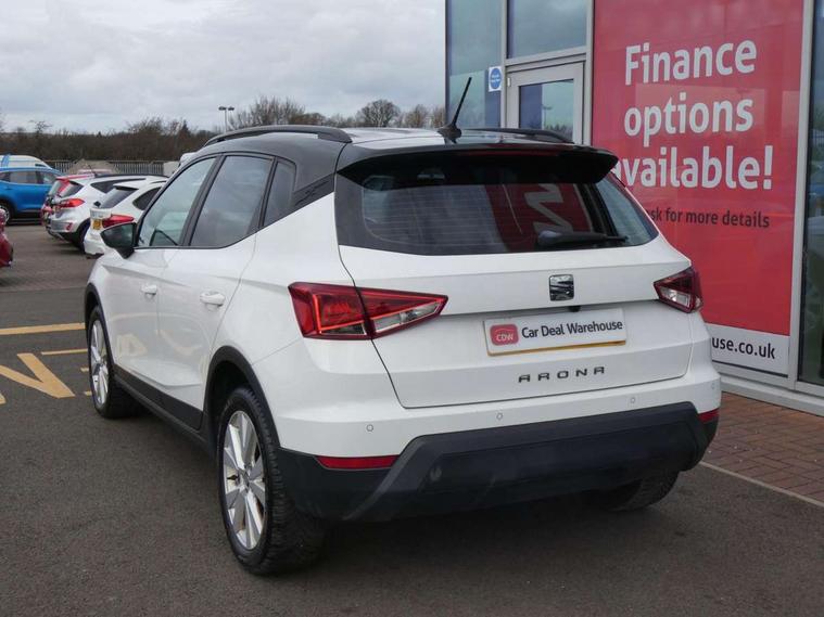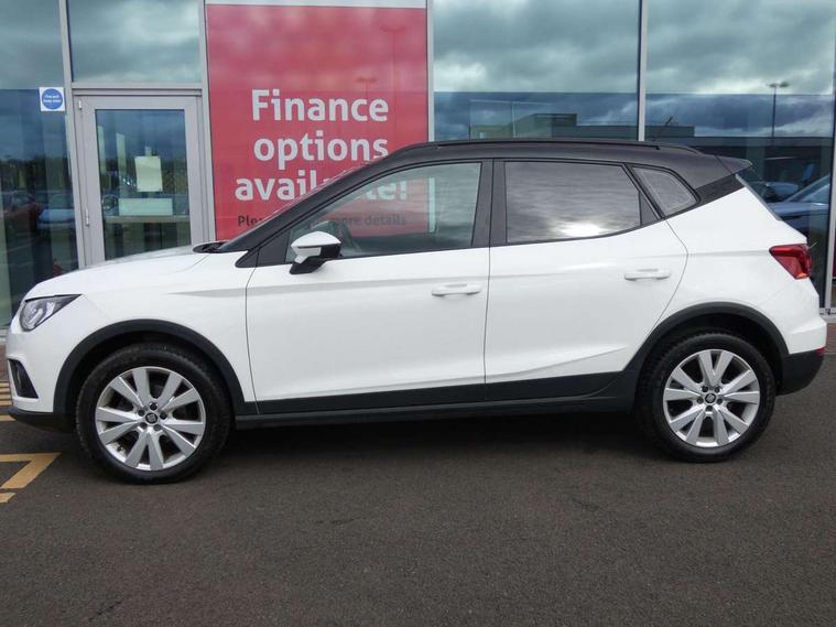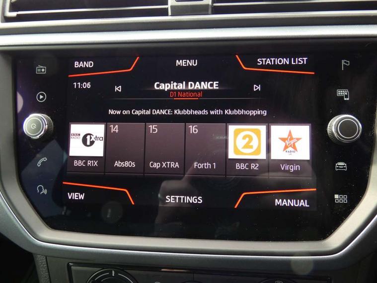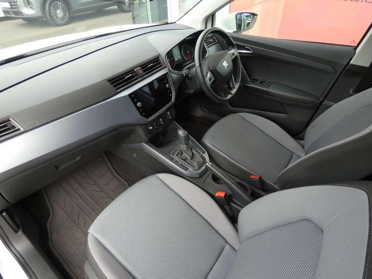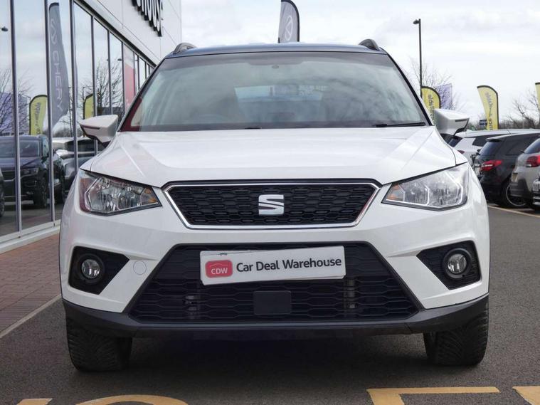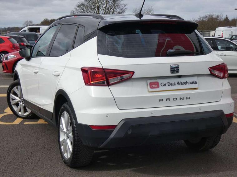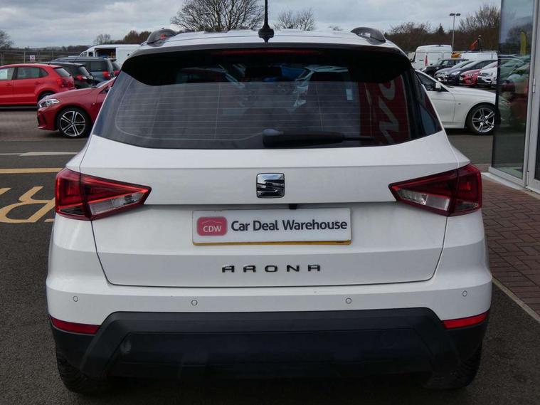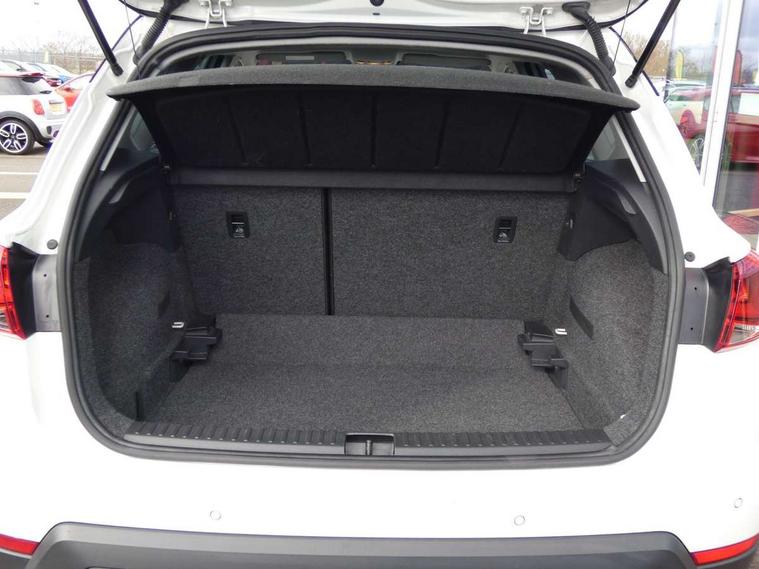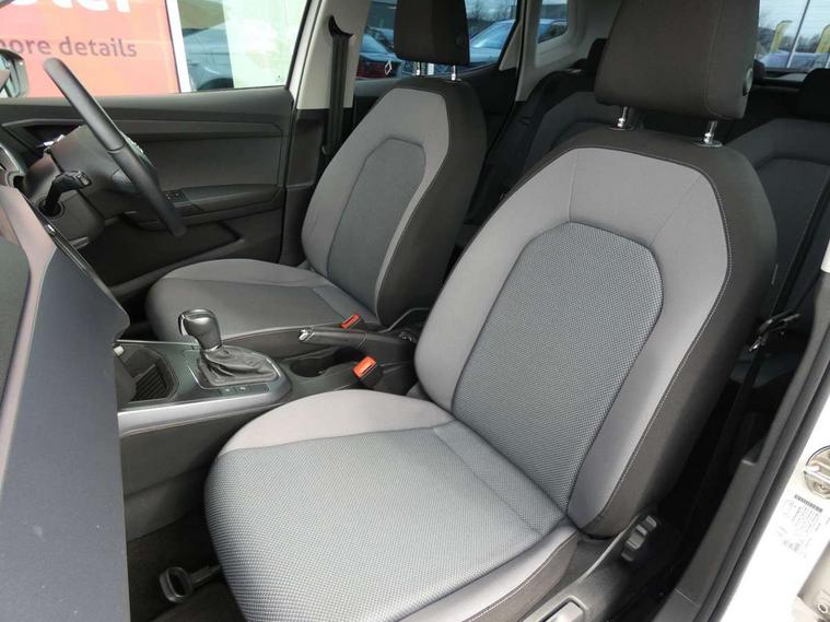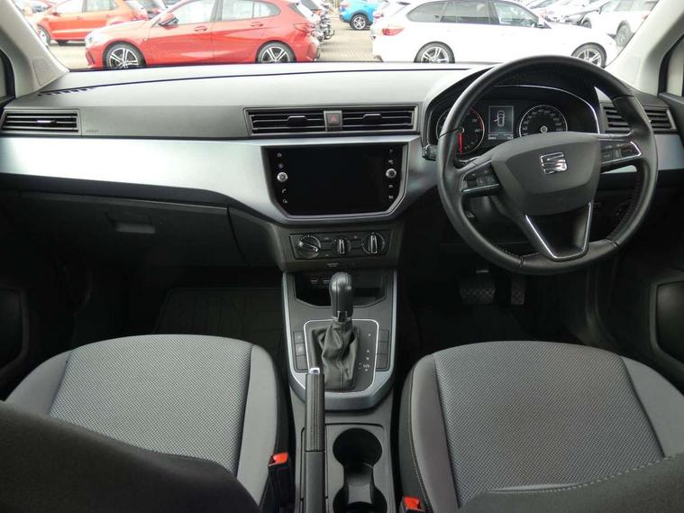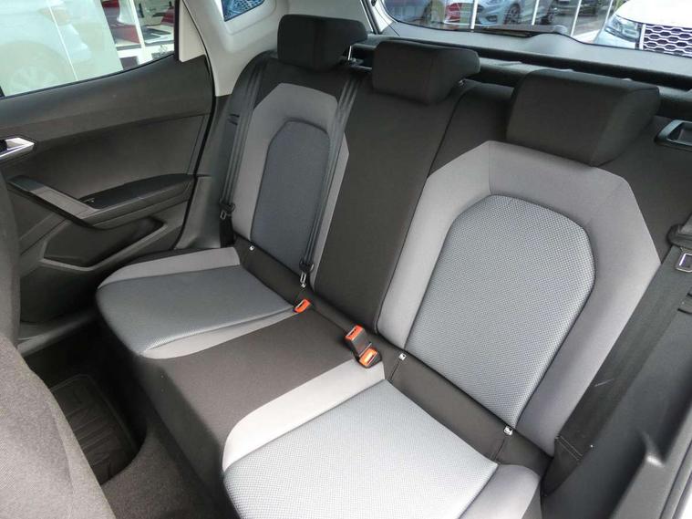 'Lights On' Reminder warning buzzer, Cruise control, Electric speed sensitive power steering, Front assistant collision mitigation, Outside temperature display, Rear parking sensor, Trip computer, Comfort suspension, 6 speakers, Bluetooth interface for hands free and audio streaming, DAB Digital radio, Steering wheel mounted audio controls, Automatic activation of hazard warning lights, Automatic headlights, Black roof rails, Black window surrounds, Body coloured bumpers, Body coloured door handle inserts, Chrome grille surround, Electric adjustable door mirrors, Electric front/rear windows with one touch/auto up/down, Electric headlight adjustment, Front fog lights with static cornering function, LED daytime running lights, Rear window wash/wipe, 2 cupholders, 3 rear height adjustable headrests, 60/40 split folding rear seat, Air conditioning, Ambient interior lighting, Cloth upholstery, Double boot floor, Driver and passenger sunvisors, Driver/front passenger seat height adjustment, Dust/pollen filter, Footwell ambient lighting, Front courtesy lights, Front reading light, Height/reach adjustable steering column, Illuminated boot, Isofix attachments on outer rear seats, Leather handbrake, Leather steering wheel and gear knob, Connectivity pack plus - Arona, 3 point seatbelts on all rear seats, ABS+EBA, Child locks on rear doors, Driver/Front Passenger airbags, Electronic stability control, Front and rear seatbelt reminder, Front side/curtain airbags, Height adjustable active front headrests, Hill hold control + Tyre Pressure monitor, Multi-Collision braking, Passenger airbag deactivate switch, Tiredness recognition system, Traction control, 2 folding remote keys with window open/close function, Immobiliser, Locking wheel bolts, Remote central locking + deadlocks, Interior chrome line trim, 17" Dynamic alloy wheels,