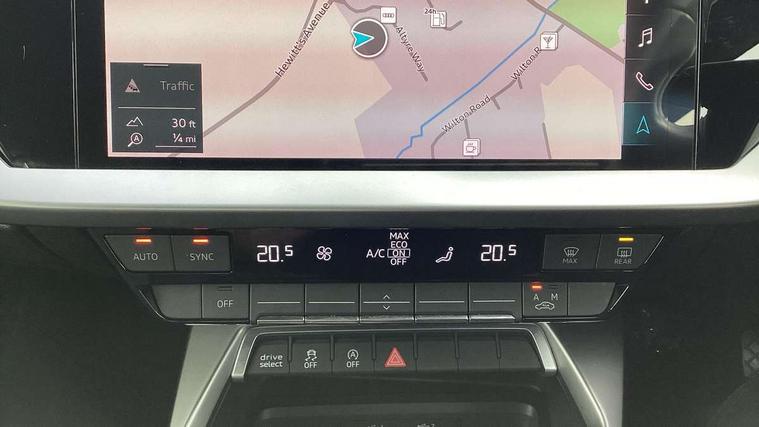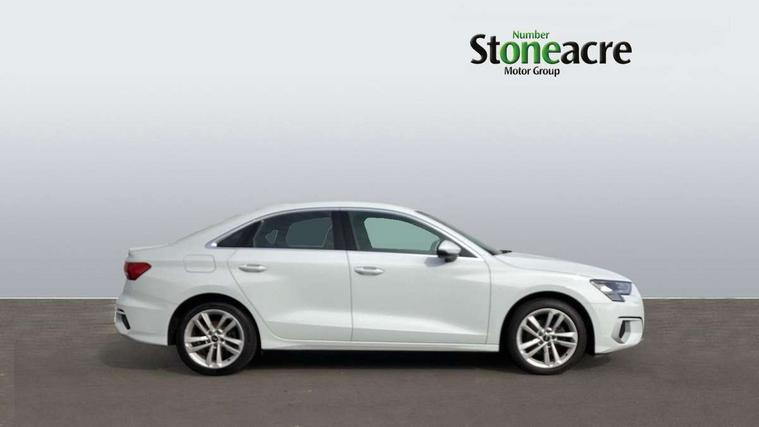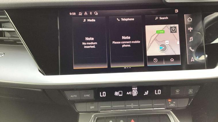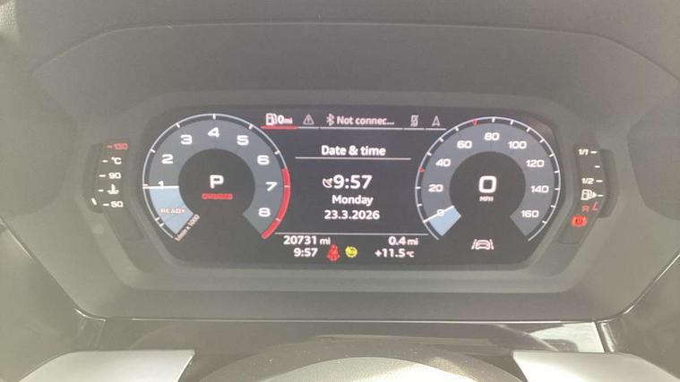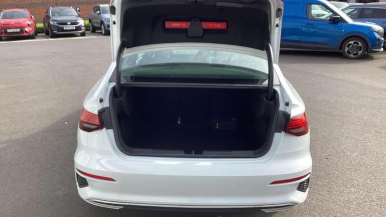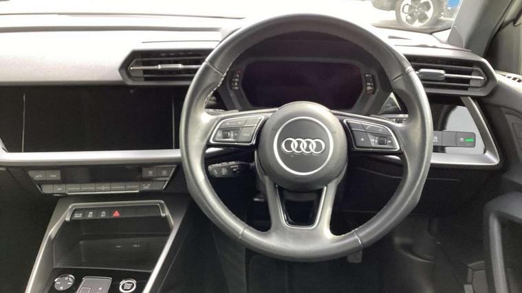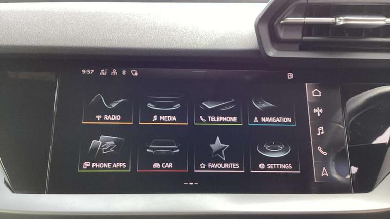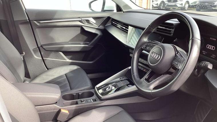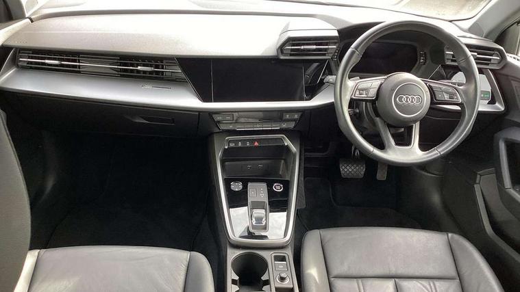 Audi connect emergency call and service, Audi drive select (Auto, Comfort, Dynamic, Efficiency and Individual), Audi smartphone interface, Audi Virtual Cockpit - 10.25" digital and colour instrument cluster, Automatic start/stop system with recuperation, Bluetooth interface, Collision avoidance assistant, Electromechanical power speed sensitive steering, Lane departure warning system, MMI Navigation Plus with high resolution 10.1" colour touch screen display, Service indicator, Voice control system with natural language interaction, Standard suspension, 2x USB Type C ports (for charging and data transfer), 6 passive loudspeakers, CD player, DAB Digital radio, 3rd brake light, Acoustic glass windscreen, Aluminium window trim, Auto dimming frameless rear view mirror, Body colour exterior mirrors, Body colour roof spoiler, Electrically adjustable/heated/folding/dimming door mirrors with kerb view includes integrated LED indications + kerb view function for passenger side, Front electric windows, LED daytime running lights, LED headlights and halogen rear lights, Light and rain sensors, Model and engine designation badges at rear, Rear boot, Rear electric windows, Rear side wing doors, Rear window, rear door windows and rear side windows in clear glass, 12V socket and storage compartment in front centre console, 3 seat bench in 2nd row, 40/20/40 split folding rear seat bench with cupholder, Dual zone electronic climate control, Front and rear headrests, Front centre armrest, Front door sill trims with aluminium inlay, Front/rear floor mats, Height and reach adjustable steering wheel, Interior lighting - Front and rear roof module including reading lights, glove compartment light and right hand side, Luggage compartment floor covering, Manual boot compartment lid, Manually adjustable front seats, Seat side bolsters, Single front passenger seat, Steel grey cloth headlining, Twin leather upholstery, Aluminium interior elements pack - A3 Saloon, Sport styling pack - A3 Saloon, 3x3 point rear seat belts, Driver and front passenger airbag with passenger airbag deactivation, Electronic Stabilisation Control (ESC) including ABS, ASR and EDL, First aid kit with warning triangle and 2 safety vests, Front side airbags with head airbags and interaction airbag, Hill hold assist, Pre-sense front with pedestrian and cyclist detection, Seatbelt monitoring, Tyre pressure loss indicator, Anti theft alarm, Anti-theft wheel bolts, Immobiliser, Manual child locks, Remote control central locking, Aluminium air vent surrounds, Aluminium trim elements, Inlays with silk effect paint in platinum grey,