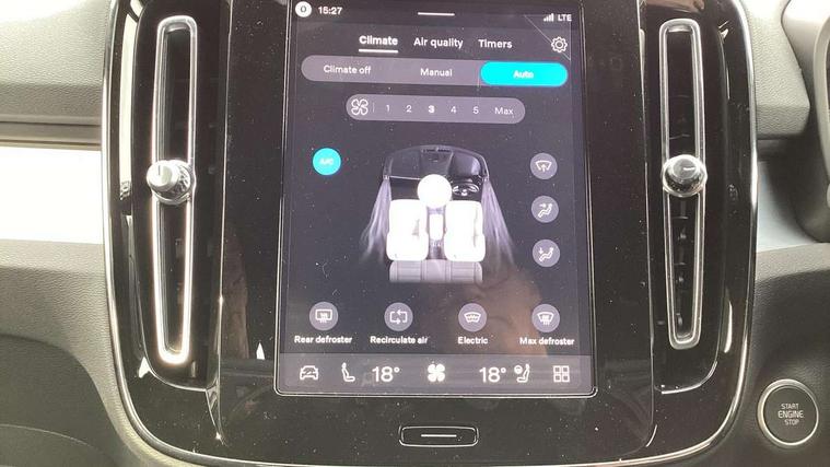 12.3" Progressive Driver Display, 9" centre console portrait touch screen, Adjustable steering wheel force, Android auto (Wired), Apple carplay (wired), Bluetooth handsfree system, Driver alert control, Driver assistance (pilot assist and adaptive cruise control), Driver awareness - Blind spot information system with steer assist, cross traffic alert with autobrake and rear collision warning and mitigation, E-call, Front and rear parking sensors, Front park assist, Google automotive services - Enabled entertainment apps, navigation with google maps, voice recognition with google assistant, Hands free power tailgate, Intelligent speed assistance, Lane keeping aid, Oncoming Lane Mitigation, Speed sensitive steering, Volvo cars services with app - Driving journal, engine remote start, remote door locking/unlocking and vehicle dashboard, Wireless/Inductive Mobile Phone Charging, Automatic transmission with start/stop and manual change functions, Dynamic chassis, DAB Digital radio, Steering wheel mounted remote controls, Adaptive brake lights with high level LED brake lights, Auto dimming feature for exterior door mirrors, Auto dimming interior mirror, Auto folding and heated power door mirrors, Automatic headlamp levelling, Automatic LED Headlights + Active high beam incorporating daytime running lights, Front aluminium tread plates, Front and rear electric windows, High gloss black front and rear skid plate, High gloss black front bumper deco, High gloss black mesh front grille with high gloss black surround, High gloss black window trim, Home safe and approach lighting, Integrated roof rails in high gloss black, LED front fog lights, Puddle lights, Rain sensor with automatic windscreen wiper activation, Rear side wing doors, Rear wiper, Roof antenna, Roof spoiler, Visible VIN plate, 12V socket in front tunnel console and luggage compartment, 2-Zone electronic climate control with CleanZone air quality system and pollen filter, 3 seat bench in 2nd row, 3 Spoke tailored steering wheel with chrome trim, 60/40 versatile split folding rear seat, Centre console cupholders and storage, Charcoal carpet and floor mats, Charcoal headlining, Connect suede textile/microtech upholstery, Flexible load floor and grocery bag holder, Front headrests, Front seat cushion extensions, Glovebox bag hook, Heated front seats, Height adjustable passenger seat, Height/reach adjustable steering column, High gloss centre tunnel deco, High level illumination - Front door pocket, front side step (under door), tailgate, instrument panel, front door inlay, rear courtesy&reading lights, Integrated waste bin, Isofix attachments on outer rear seats, Load cover, Load protection net, Mid level illumination - Front footwell, luggage & glovebox compartment, front cabin courtesy & reading lights, illuminated vanity mirrors+ticket holder, Multi directional lumbar support for driver and passenger seat, Power driver seat with memory + exterior mirrors memory, Rear armrest with cupholders, Rear headrests, Single front passenger seat, Underfloor luggage compartment storage, Climate pack without heated front seats - XC40, 3x3 point rear seatbelts, City safety with steering support with Pedestrian + cyclist + front collision warning with full auto brake and rear auto brake, Driver and passenger airbags, Drivers knee airbag, Electronic parking brake with auto hold, First aid kit, Front and outer rear seatbelt reminder and pretensioners, Front seats SIPS airbags, Hill descent control - Off-road drive mode, Hill start assist, IC (Inflatable Curtains) - Full Length, Passenger airbag cut-off device, Power child locks on rear doors, Road sign information display, Run off Road Protection, SIPS (Side Impact Protection System), Slippery road and hazard light alert, Stability and Traction Control with Spin control, Engine Drag Control and Corner Traction Control, Tyre pressure monitoring system, Vehicle deceleration control with Anti-lock Brake System, Electronic Brake Distribution and Emergency Brake Assist, Warning triangle, WHIPS whiplash protection system - front, 2 x Key integrated remote control central locking including with deadlocking system and auto open/close windows, Anti-theft alarm including immobiliser/volume sensor + level sensor, Keyless drive includes keyless entry and keyless start, Locking wheel nuts,