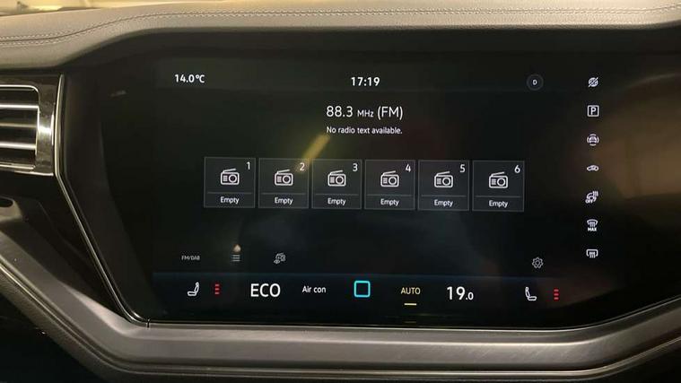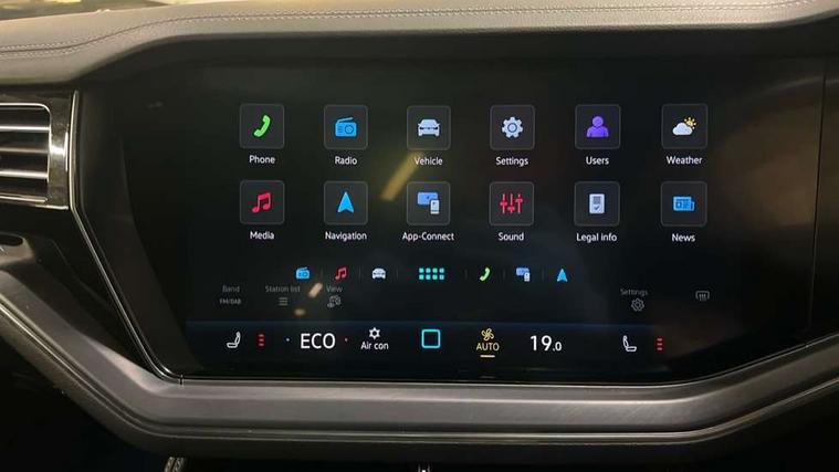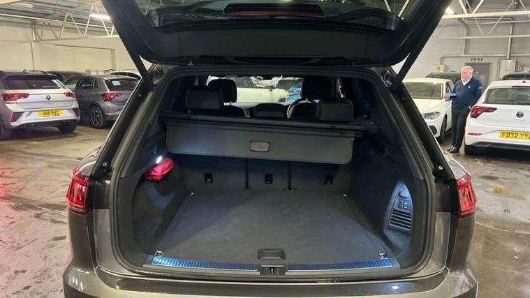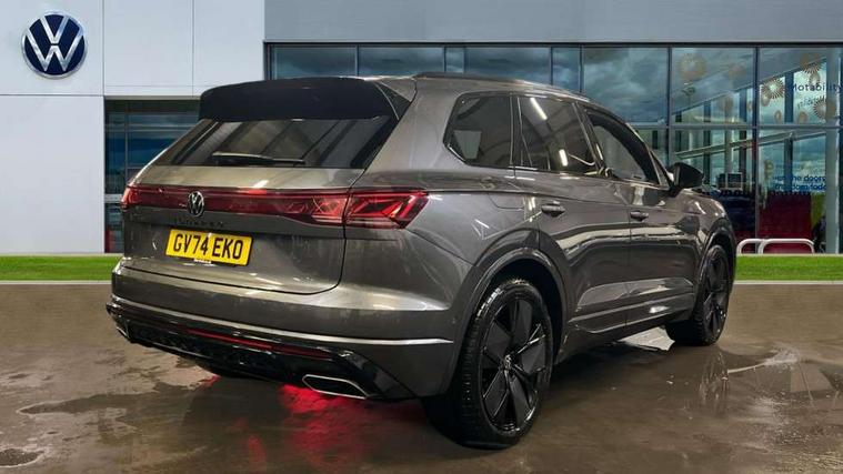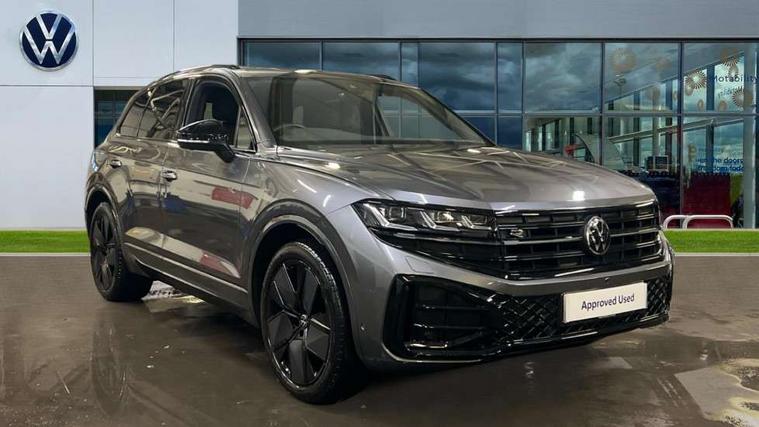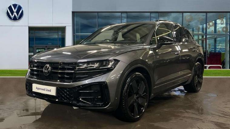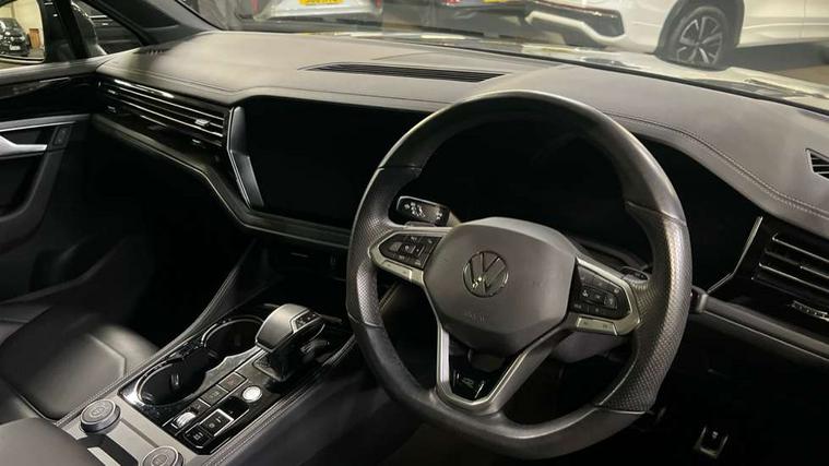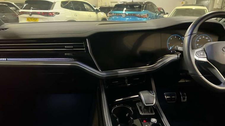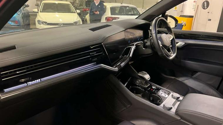 15" Screen Top infotainment system Premium (MIB3), Adaptive cruise control, Advanced driver attention and drowsiness monitor, Driver profile selection, Dynamic road sign display, E-Sim card for online connectivity, eCall emergency system, Innovision cockpit, Intelligent park assist, Mobile phone interface with inductive charging, Multi-colour Active Info display, Park Assist - Sensor controlled steering aid to assist parallel or bay parking, PAS, Warning signal and warning light for front and rear seatbelts not fastened, Wireless app connect, Adaptive chassis control, DAB Digital radio, Diversity antenna for AM/ FM reception, We Connect and We Connect Plus functionality, Automatic coming/leaving home lighting function, Automatic headlights, Black door mirrors, Black style comfort bumpers, Dynamic headlight range control with dynamic cornering light, Electric front tilt/slide panoramic sunroof and fixed rear sunroof, Electrically power adjustable, heated, folding, auto dimming, front passenger exterior door mirror lowering function, External USB type C socket and charging sockets, Gloss black roof rails, HD LED Matrix beam plus digital headlight projection with variable light distribution, Headlight washers, Highway light, LED 3rd brake light, LED daytime running lights, LED rear combination lamp with variable lighting functions and special styling, Poor weather light, Rain sensor, Rear exhaust tailpipe, Rear fog light with back up light on both sides, Rear light bar and illuminated logo, Rear side wing doors, Rear wiper, Stainless steel door sill protection, 12V socket in centre console, 3 rear headrests, 3 seat bench in 2nd row, 4 zone climate control, Airbag label on sun visor and B-pillar, Brushed stainless steel pedals, Double sun visors with illuminated vanity mirrors, Front + rear carpet mats, Front centre armrest, Leather wrapped multifunction sports steering wheel, heated, with touch control and shift paddles, Mechanical rear seat release, Power adjustable lumbar support in front, Power seats in front, right side with memory features and seat cushion depth adjustment, Rear seat backrest and split folding with center armrest, Single front passenger seat, Memory pack plus - Touareg, 3 point seatbelts, outer rear with ECE lable, ABS, Child locks on rear doors, Curtain airbags, Driver and front passenger safety-optimised head restraints, Driver/Front Passenger airbags, Extended pedestrian protection measures, Front assist, Front seat side impact airbags, Generative braking with start and stop system, Height adjustable 3 point front seatbelts with pre tensioners, Passenger airbag deactivate switch, Three 3 point rear seatbelts, Two tone horn, Tyre pressure loss indicator, Warning triangle and first aid kit, Alarm system with interior protection, Easy open and close sensor controlled luggage compartment opening and closing with remote unlocking, Keyless Access Keyless locking and starting system with SAFELOCK, Aluminium decorative inserts, Black decorative trims, Gloss black decorative inserts in centre console, Tool kit,