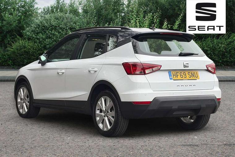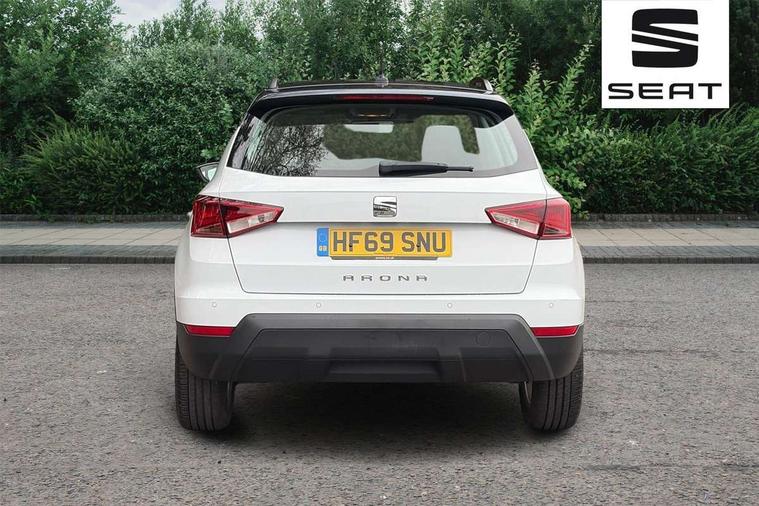 Interior chrome line trim, Plastic grey dashboard, Connectivity pack plus - Arona, Interior chrome pack - Arona, 17" Dynamic alloy wheels, 2 folding remote keys with window open/close function, Electronic engine immobiliser, Locking wheel bolts, Remote central locking + deadlocks, 6 speakers, Bluetooth interface for hands free and audio streaming, DAB digital radio and AM/FM radio, Steering wheel mounted audio controls, 3 point seatbelts on all rear seats, ABS, Active front headrests, Child locks on rear doors, Driver and front passenger airbags with front passenger airbag de activation, front side and curtain airbags, Electronic stability control, Emergency Brake Assist (EBA) and front assist, Front and rear seatbelt reminder, Hill hold control, Multi-Collision braking, Tiredness recognition system, Traction control, Tyre pressure monitoring system, Anti theft roof antenna, Automatic activation of hazard warning lights, Automatic headlights, Black roof rails, Black window trims, Body coloured bumpers, Body coloured door handle inserts, Body coloured door mirrors, Chrome front grille frame, Dimming rear view mirror, Electric adjustable door mirrors, Electric front/rear windows with one touch/auto up/down, Electric headlight adjustment, Front fog lights with cornering function and rear fog light, Hidden exhaust pipe, LED daytime running lights, LED rear tail lights and licence plate lights, Rear window wash/wipe, Visible VIN plate, Windshield wiper with intermittent control and potentiometer, 2 cupholders, 60/40 split folding rear seat, Air conditioning, Cloth upholstery, Double boot floor, Driver sunvisor with covered mirror + card holder, Dust/pollen filter, Front courtesy light with front reading lights, Gear shift indicator, Grey interior roof, Height adjustable front seats, Height/reach adjustable steering column, Illuminated boot, Instrument lighting with brightness control, Interior footwell lighting, ISOFIX points in outer rear seats with top tether anchorage points, Leather steering wheel/gear knob/handbrake, Multi-colour ambient interior lighting, Passenger sunvisor with vanity mirror, Two front and three rear height adjustable headrests, 'Lights On' Reminder warning buzzer, Cruise control, Digital clock, Electric speed sensitive power steering, Full Link Smartphone Integration with Mirror Link, Apple Car Play, Google Android Auto with USB cable for Apple and Android compatibility, Low fuel warning light, Outside temperature display, Rear parking sensor, RPM counter, Trip computer, Comfort suspension,