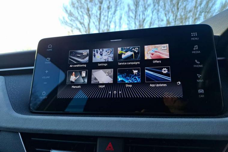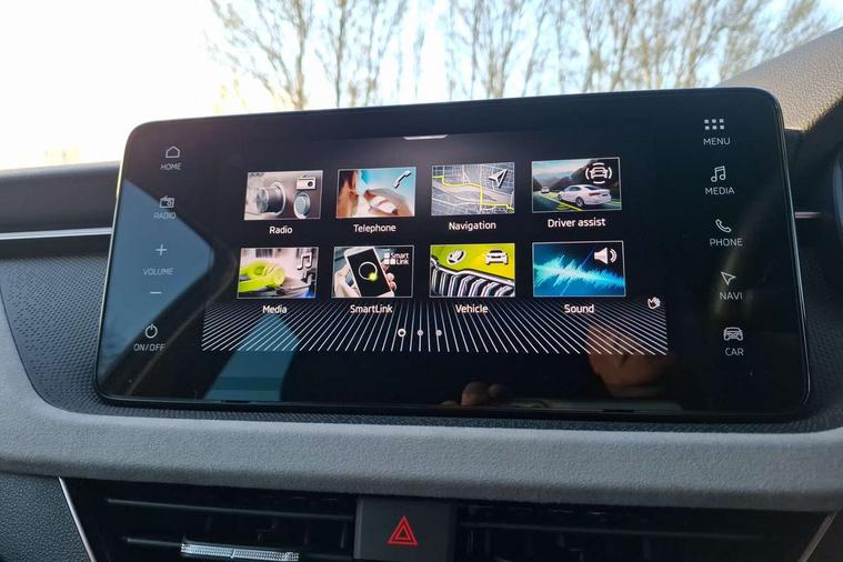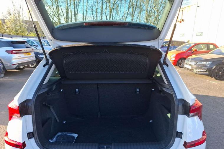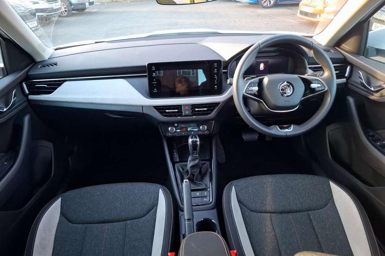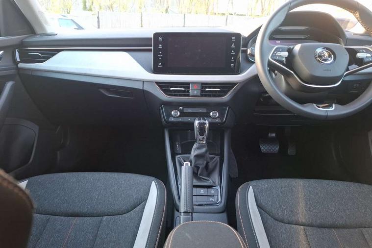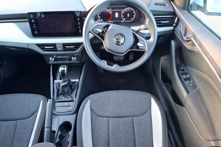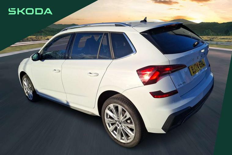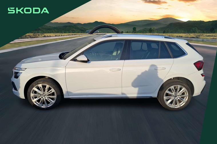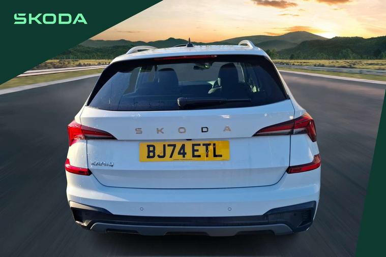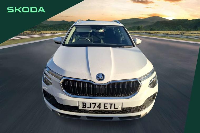 Advanced driver attention and drowsiness monitor, Bluetooth system, E-call, Front assist system, PAS, Rear parking sensors, Rear view camera, Service indicator, Speed limiter, Traffic sign recognition, Virtual cockpit with 10.25" display, Voice control system, Wireless smartlink, 4 USB C ports, 8 Speakers, 9.2" Skoda navigation display, DAB Digital radio, Auto dimming rear view mirror, Automatic headlight control with coming home and leaving home feature, Body colour bumpers, Body colour door mirrors and handles, Chrome grille surround, Chrome roof rails with chrome window surround, Front and rear electric windows, Heated rear window, LED daytime running lights, LED high beam, LED low beam, LED third brake light, Light sensors, Privacy glass, Rear side wing doors, Rear wiper, Ticket holder inside windscreen, 12V socket in luggage compartment, 3 seat bench in 2nd row, Accent black door inserts, Ambient lighting in white/red, Cargo elements, Chrome inner door handles, Copper hotstamping, Driver and passenger sun visors with vanity mirror, Dual zone climate control, Front and rear roof lights, Front centre armrest, Front head restraints, Glove compartment with illumination, Height adjustable driver seat, Height adjustable front passenger seat, Ice scraper, Inner circulation control with pollen filter, ISOFIX on front passenger seat, Isofix preparation for back seats, Leather gearknob and handbrake lever, Lodge cloth upholstery, Manual lumbar support for front seats, Net package and top tether hooks in boot space, Net under rear shelf, Overhead glasses storage compartment, Pocket on the back of both front seats include mobile phone pockets, Rake/reach adjustable steering wheel, Reading lights, Rear centre armrests, Single front passenger seat, Suedia grey decor inserts, Textile floor mats, Third rear headrest, Top tether for front passenger seat, Umbrella in driver's door, Convenience pack - Kamiq, 3x3 point rear seatbelts, Airbags - driver and front passenger, Disc brakes, ESP, Extended and predictive pedestrian/cyclist protection, Front passenger airbag deactivation switch, Front side airbags with curtain airbags, Hill hold control, Manual leather parking brake, Manual rear child locks, One tone horn, Seatbelt reminder for driver an co-driver, Traction control, Tyre pressure monitor, Anti-theft alarm system with interior monitoring, backup horn, towing protection and remote central locking with SAFE system, Anti-theft wheel bolts, Electronic engine immobilizer,
