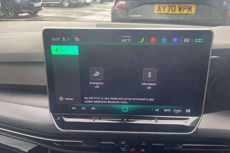Activated carbon canister, Adaptive cruise control (ACC), Advanced driver attention and drowsiness monitor, Dynamic road sign display, Dynamic steering, E-Sim card for online connectivity, eCall emergency call system, Multi-color Digital cockpit pro, selection of different info profile possible, Multifunction front facing camera for distance control, Navigation system, Oncoming vehicle braking when turning including swerve support, Speed limiter, Speedo, rev counter, electronic odometer, trip, service interval display, exterior temperature and fuel gauge, Traffic jam assist, Voice enhancer and voice control, Warning signal and warning light for front and rear seatbelts not fastened, We connect plus preparation, We connect preparation, Wireless app connect, Hybrid propulsion system, Petrol Particulate Filter, Start-stop system with battery regeneration (recuperation - energy recovery during braking), XDS electronic differential lock for improved traction and handling, 2 USB C ports in front, 2 USB charging sockets on the centre console in the rear charging capacity upto 45W, Digital radio reception (DAB), Diversity antenna for FM reception, Gaming platform via car app, Infotainment system with 12.9" display, Mobile phone interface with inductive charging feature, 3rd brake light, Automatic headlamp activation with Coming home and Leaving home feature, Body colored bumpers in R-Line style, Body colour door handles, Exterior mirrors convex on the left and aspherical on the right, Front and rear electric windows, Heat insulating windshield made of laminated glass, LED separate daytime running light, Rear exhaust tailpipe, Rear fog light on one side and reversing lights on both sides, Rear side wing doors, Rear windscreen washer and wiper with interval delay, Remote electrically foldable door mirrors, puddle lights and reverse activated passenger's door mirror, Welcome light with surround lighting, 12V socket in front centre console, 12V socket in luggage compartment, 3 rear head restraints, 3 seat bench in 2nd row, Ambient lighting with 30 colour including LED light unit in front footwell with selectable light colour, Black roof lining, Brushed stainless steel pedals, Chrome plated radiator grille inserts, air vent surrounds and light switch surrounds, Door insert, side trim panel and arm support in leatherette, Front + rear black carpet mats, Front centre armrest, Front seat lumbar support adjuster, Integrated front head restraints, ISOFIX anchors for child seats on outer rear bench seats and on front passanger seat compatible for i-Size, Luggage compartment lighting, Manual height adjustable front passenger seat, Manually height adjustable driver seat, Plastic gear knob, Premium sports seats in front, Rear cupholder and loadthough, Sardegna cloth upholstery with front and outer rear seats Art Velour inner sides of bolsters, Single front passenger seat, Split folding backrest with centre armrest and unsplit rear seat bench, Sun visors with illuminated vanity mirrors, Titanium black instrument panel, 3 point height adj front seatbelts + pretensioners, 3 rear three point seatbelts, ABS, Autonomous emergency braking front assist with pedestrian and cyclist monitoring, Child locks on rear doors, Driver and front passenger airbag with front passenger airbag deactivation, Electronic parking brake with auto hold, ESC (Electronic Stability Control), Extended pedestrian protection measures, Hill start assist, Rear disc brakes, Two tone horn, Tyre pressure loss indicator, Volkswagen roadside assistance, Anti theft wheel bolts, Preparation for alcohol interlock, Decorative inserts carbon grey for dashboard and front door trim panels, Tool kit for tyre mobility set, Tyre mobility kit Includes 12V compressor and tyre sealant,