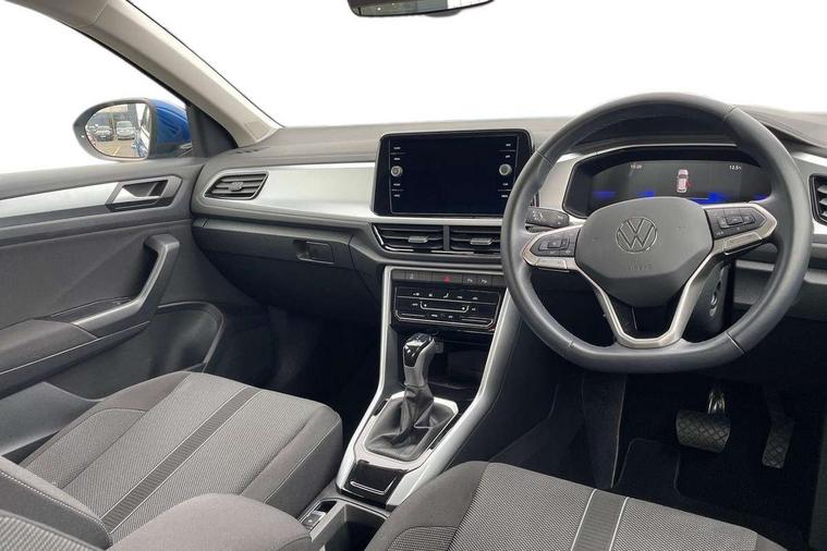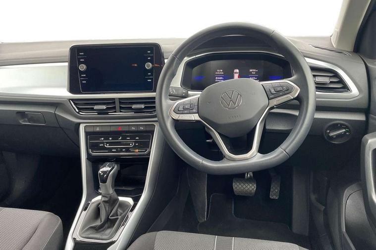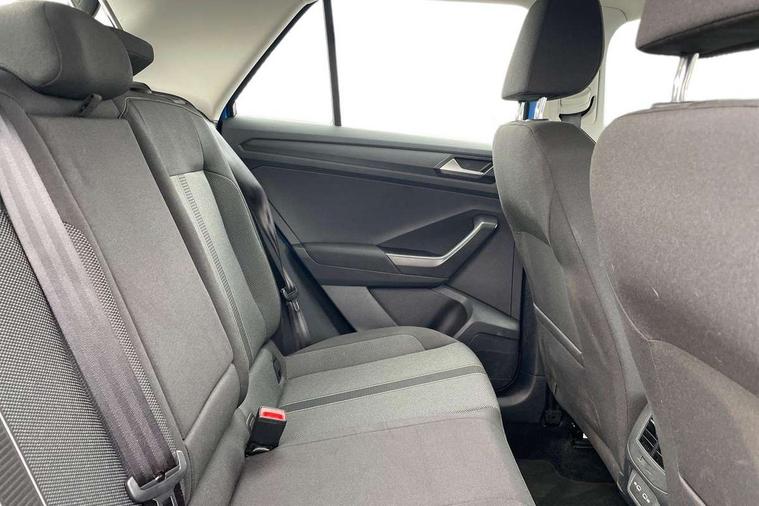 Advanced driver attention and drowsiness monitor, Bluetooth mobile phone interface, Driver tips and journey analysis, Emergency call service, Lane keeping system Lane Assist, Modified key software - reduce switch off time for key status change to Long no motion, Online services, Park assist including front and rear parking sensors, Power assisted speed sensitive steering, Service interval indicator, Tailgate/trunk lid release from outside, Think blue trainer driver tips and journey analysis, Warning sound and light for front seatbelts unfastened, Wireless app connect, Battery regeneration during braking, Front shock absorption, Rear shock absorption chassis with increased ride height, Start/stop function with battery regeneration, DAB Digital radio, Diversity antenna for FM reception, Music playback - MP3, WMA and AAC files, Premium USB cable in choice of either Apple or Android smartphone compatibility, SD card slot, Simultaneous pairing of 2 compatible mobile devices, Title and cover art display, We Connect and We Connect Plus functionality, 3rd brake light, Auto dimming interior rear view mirror, Automatic hazard lights activation under emergency braking, Automatic headlight control with LED separate daytime running lights with coming/leaving home function, Black roof rails, Body coloured bumpers and radiator grille with chrome trim and front fog lamps with chrome bezel, Body coloured exterior mirror housings and door handles, Extended roof spoiler, Exterior mirrors aspherical on driver side, convex on front passenger side, External USB type C socket and charging sockets, Front windscreen wiper with intermittent wipe and 4 position delay, Heated rear window, LED rear combination lamps, LED rear number plate lights, LED tail lamp rear comination lamps, Power windows with comfort operation and circuit breaker, Rain sensor, Rear exhaust tailpipe, Rear fog light on one side and reversing lights on both sides, Rear side wing doors, Rear wash/wipe with intermittent wipe setting, Remote electrically foldable door mirrors, puddle lights and reverse activated passenger's door mirror, 12V power socket in centre console, 3 rear head restraints, 3 seat bench in 2nd row, 4 load lashing points in luggage compartment, Air care climatronic air conditoning system with active combination filter and 2-zone temperature control, Ambient lighting with mirror logo projection, Cloth upholstery, Door and side trim panel in cloth, Drawer under drivers seat, Driver/front passenger seat height adjustment, Front centre armrest, Front comfort sports seats, Front cupholders x 2, Front reading light, Instrument lighting, white adjustable panel illumination, Interior light delay, Isofix child seat preparation, Leather gearshift handle, Load-through provision with cup holder when folded down ('Unsplit rear seat bench, split folding backrest, with centre armrest), Luggage compartment lighting, Lumbar support for driver's and front passengers seat, Non-folding front passenger seat backrest, Single front passenger seat, Storage compartment in left and right luggage area, Storage compartment in rear doors, Storage compartments in driver and front passenger doors, Sunvisors with illuminated vanity mirrors, Variable boot floor, height adjustable and removable, Driver assistance pack without proactive passenger protection - T-Roc, 3 point height adj front seatbelts + pretensioners, 3 point seatbelts in outer rear with ECE label, ABS, Child locks on rear doors, Driver and front passenger airbag with front passenger airbag deactivation, Driver and front passenger safety-optimised head restraints, Drivers seatbelt reminder, Electronic parking brake, Electronic Stability Control (ESC) inc EDL (Electronic Differential Lock) and ASR (Traction Control), Front and rear passengers curtain airbag system including front side airbags, Front assist with city emergency braking and pedestrian monitoring, Front disc brakes, Front seat side impact airbags, Hill start assist, Predictive pedestrian protection, Rear disc brakes, Two tone horn, Tyre pressure loss indicator, Volkswagen roadside assistance, Alarm with interior protection, Anti-theft alarm system with interior monitoring, backup horn, and towing protection, Remote central locking with SAFELOCK, radio remote control with 2 remote control folding keys, Pewter matt decorative inserts for intrument panel, centre console and door panels at the front, Trims for alloy wheels,