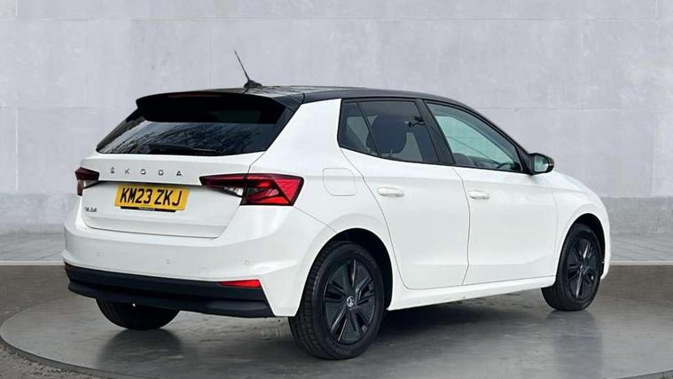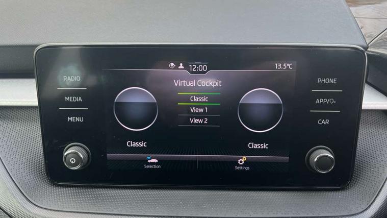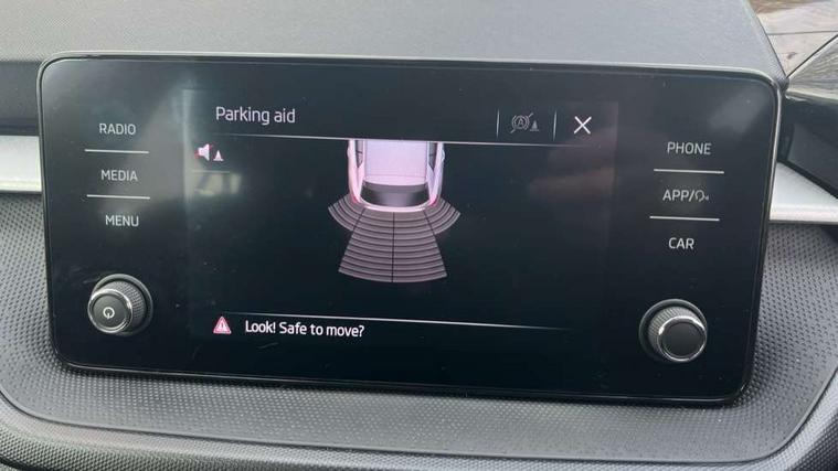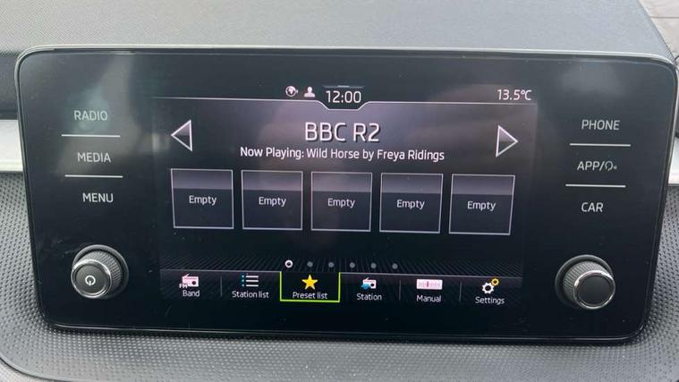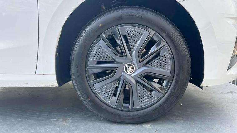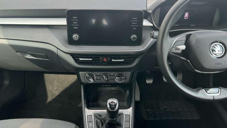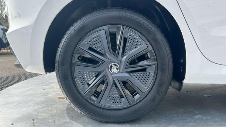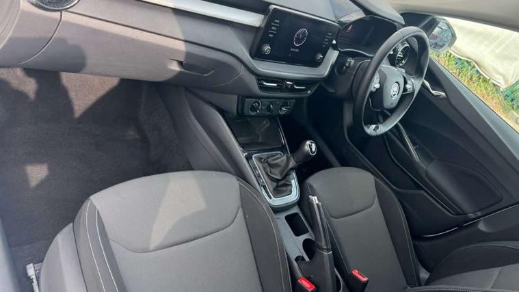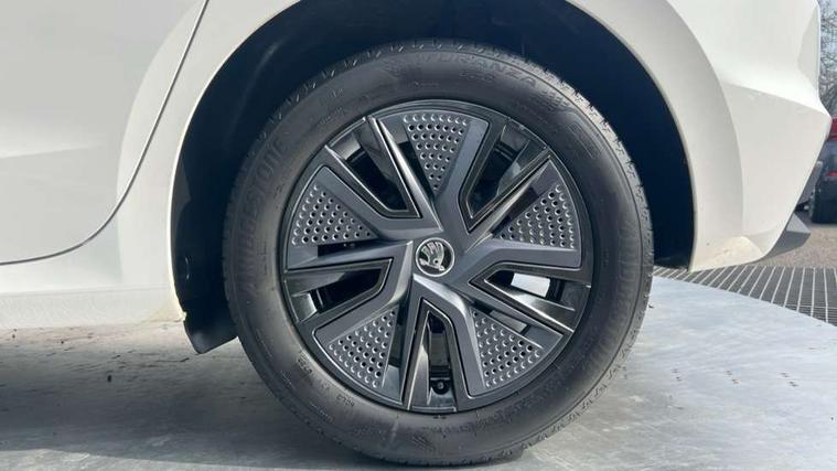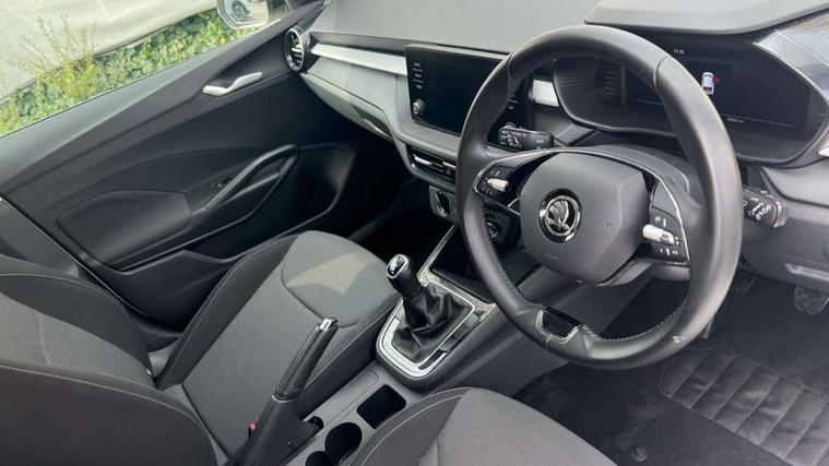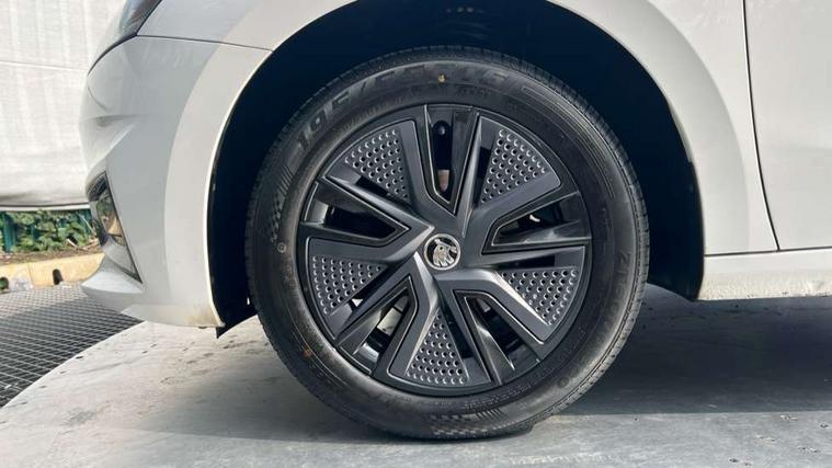 Bluetooth connection, Driver alert system - DAS, Electromechanical power steering, Exterior temperature gauge, Lane assist including road edge detection, Service interval indicator, Virtual cockpit with 10.25" colour display, 2x USB-C in the front (for data transmission and charging), 6 Speakers (4 in front and 2 in rear), Auxiliary socket for external MP3 player, Bolero radio with 8" colour display, DAB digital radio reception, Basic rear lights, Body coloured bumpers, Dimming rear view mirror with black frame, Door mirror integrated indicators, Electrically adjustable and heated door mirrors, Electrically adjustable front windows with function auto up/down, Front window wiper intermittent control, Headlight range control - Automatic, Ice scraper in fuel cap, LED daytime running lights with coming and leaving home feature, Mechanical adjustable rear windows, Privacy glass, Rear LED fog light, Rear side wing doors, Rear window wiper with washing nozzles, Roof colour door mirrors, Roof mounted spoiler, SKODA tailgate lettering in chrome, Third brake light, 3 rear headrests, Backrest split and folding, Central console with fixed cup holder and storage box, Chrome handbrake release button, Fabric upholstery, Gearshift knob/handle in leather, Grain satin black interior door handles, Hand brake lever handle in leather, Height adjustable front headrests, Height adjustable steering wheel, ISOFIX and TopTether anchorage points to the outer rear seats, ISOFIX and TopTether on the front passenger seat, Luggage compartment lighting, Pollen filter, Rear seat bench unsplit, Single front passenger seat, Storm grey headlining, Sun visors with mirror and airbag label on passenger side, Ticket holder, Umbrella in drivers door, 3-point height adjustable front seats belts with pretensioner and force limiter, Automatic warning lights in case of crash, Driver and passengers airbag with switch off function, e-Call+, ESC including ABS, MSR, ASR, EDS, HBA and XDS, Front and rear seat belt warning, FRONT ASSIST (AEB City and AEB Inter Urban), Front side airbags, Head airbags, One tone horn, Pedestrian protection, Three rear 3-points safety seat belts with pretensioner and force limiter including stop function for outer rear seat belts, Tyre pressure monitoring system, Anti-theft alarm system including immobiliser, interior monitoring, backup horn, and towing protection, Anodized cross line upper decorative trim, Colour Edition air vents, Grain satin black central console cover, Grain satin black lower decorative trim, Satin black door and side trim panel in front, Anti-theft wheel bolts protection, Super-low rolling resistance tyres,