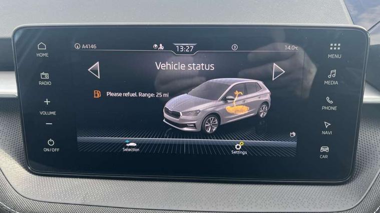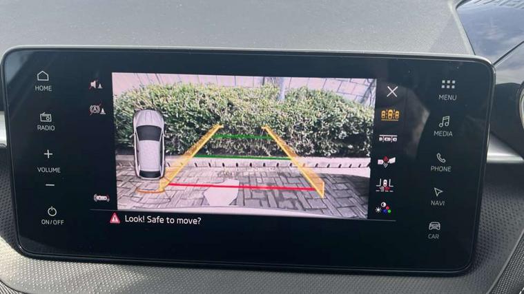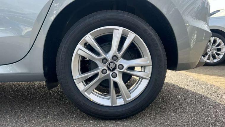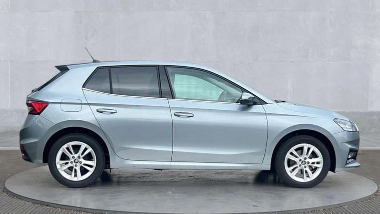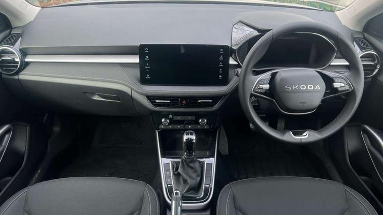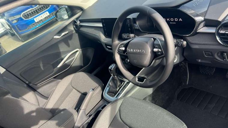 Advanced driver attention and drowsiness monitor, Bluetooth connection, Driver alert system, Electromechanical power steering, Exterior temperature gauge, Service interval indicator, Traffic sign recognition, Virtual cockpit with 10.25" colour display, Wireless SmartLink for Apple CarPlay and Android Auto, 6 Speakers (4 in front and 2 in rear), 9.2" colour display skoda navigation system with voice control and web radio, Auxiliary socket for external MP3 player, DAB digital radio reception, Auto dimming rear view mirror, Body colour door mirrors, Body coloured bumpers, Chrome window surround, Door mirror integrated indicators, Front and rear electric windows, Front window wiper intermittent control, Headlight range control - Automatic, Ice scraper in fuel cap, LED 3rd brake light, LED daytime running lights with coming and leaving home feature, LED rear lights, Privacy glass, Rear LED fog light, Rear side wing doors, Rear window wiper with washing nozzles, Roof mounted spoiler, SKODA tailgate lettering in chrome, Unique dark chrome design logo on alloy wheels, 2 LED reading lights in front and rear, 3 rear headrests, Backrest split and folding, Central console with fixed cup holder and storage box, Chrome handbrake release button, Comfort seats, Door sills with fabia badging, Dual zone air conditioning with climatronic electronic control, Fabric upholstery, Front centre armrest, Gearshift knob/handle in leather, Grain satin black interior door handles, Hand brake lever handle in leather, Height adjustable front headrests, Height adjustable front seats, Height adjustable steering wheel, ISOFIX and TopTether anchorage points to the outer rear seats, ISOFIX and TopTether on the front passenger seat, Luggage compartment lighting, Manually adjustable lumbar support in front seats, Pollen filter, Rear seat bench unsplit, Single front passenger seat, Skoda lettering on steering wheel, Storm grey headlining, Sun visors with mirror and airbag label on passenger side, Textile floor mats, Ticket holder, Ambient lighting pack - Fabia Hatchback, 3-point height adjustable front seats belts with pretensioner and force limiter, Automatic warning lights in case of crash, Driver and passengers airbag with switch off function, e-Call+, ESC including ABS, MSR, ASR, EDS, HBA and XDS, Front and rear seat belt warning, FRONT ASSIST (AEB City and AEB Inter Urban), Front side airbags, Head airbags, Hill hold control, One tone horn, Pedestrian protection, Three rear 3-points safety seat belts with pretensioner and force limiter including stop function for outer rear seat belts, Tyre pressure monitoring system, Anti-theft alarm system including immobiliser, interior monitoring, backup horn, and towing protection, Central locking with radio remote control, interior controls, SAFE function and 2 foldable keys, Chrome edged air vents, Grain satin black central console cover, Metallic grey upper decorative trim, Satin black door and side trim panel in front, Textile microsuede grey lower decorative trim with art grey stitching, Anti-theft wheel bolts protection, Super-low rolling resistance tyres,