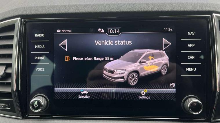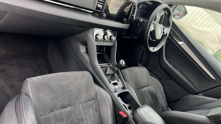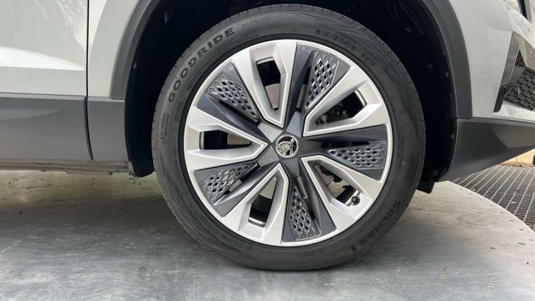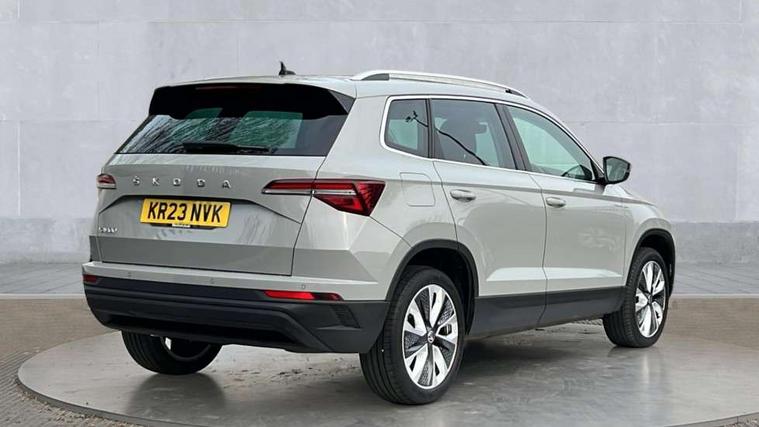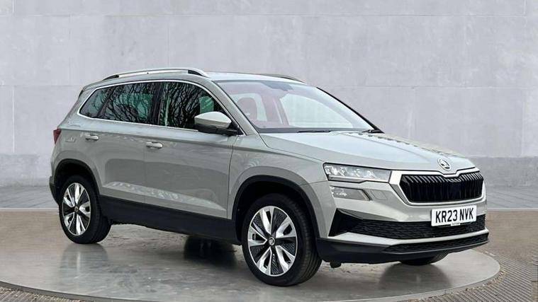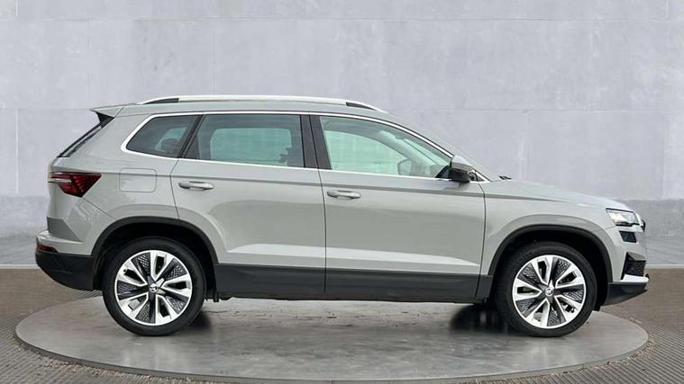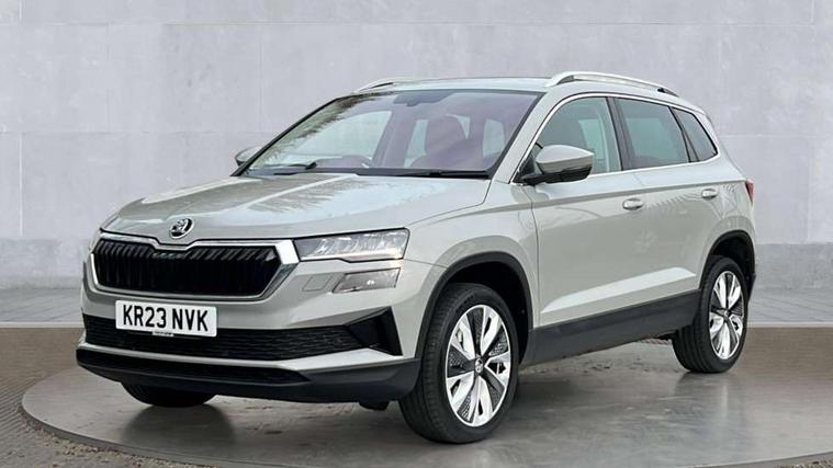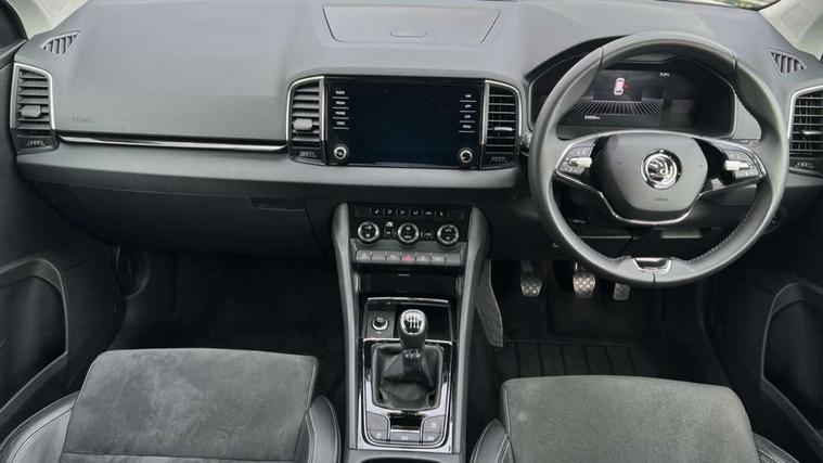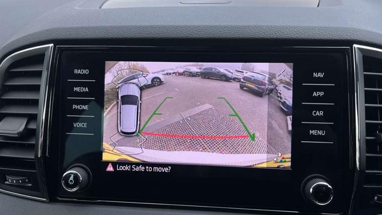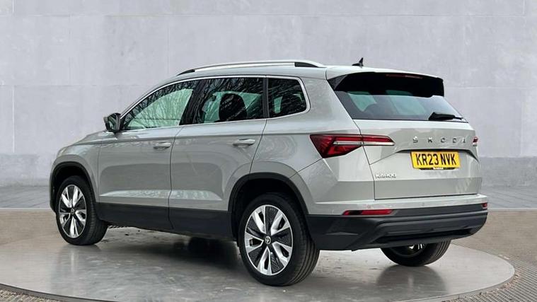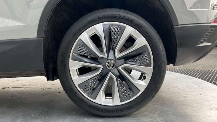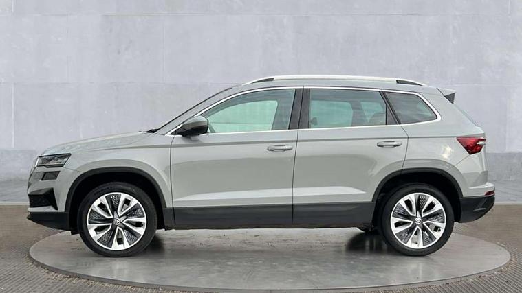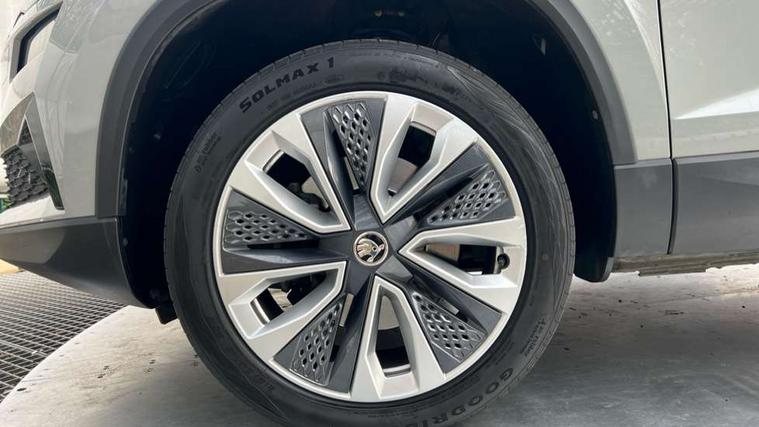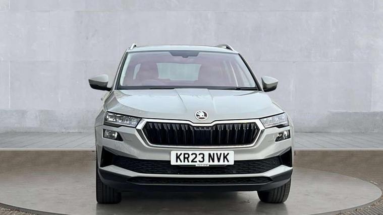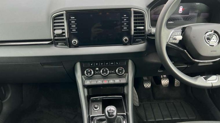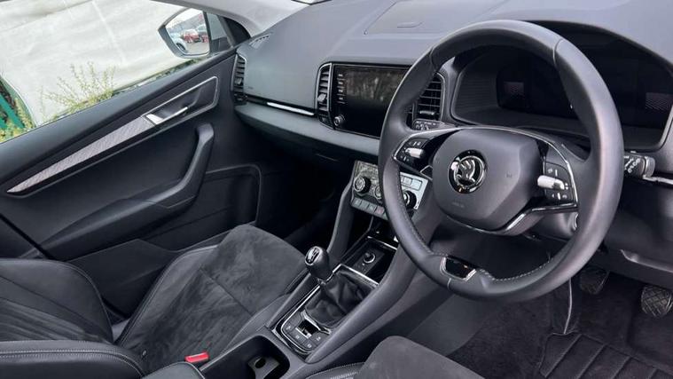 8" Digital display, Care connect, Driver fatigue sensor, Emergency services call system, Outside temperature gauge, Service interval indicator, SmartLink wireless for Apple and wired for Android, Start/stop system with regenerative braking, USB C Port x 2 in front centre console, Diesel particulate filter, 8 Speakers, DAB radio with Bluetooth, USB connection, Acoustic glass, Aero front windscreen wipers with intermittent function, Auto dimming rear view mirror with light and rain sensors, Black electric window control buttons, Body colour door mirrors and handles, Dynamic headlight range control with cornering light function, Electric front and rear windows with child proof lock, Heated rear windscreen, LED daytime running lights, LED rear lights with high functionality welcome effect and dynamic indicators, Light assistant (coming/leaving home/tunnel light), Plastic scuff plates, Privacy glass, Rear side wing doors, Rear spoiler, Rear window wiper with washer system and intermittent control, Safety reflectors on front doors, Third brake light, 1.5 litre bottle holders in driver and front passenger door panels, 12V socket in boot, 12v socket in front centre armrest with storage compartment and rear air vents, 2 Folding hooks and nets in boot, 2 spoke leather heated multifunction steering wheel, 2 x Tablet holder, 3 rear height adjustable headrests, 3 seat bench in 2nd row, 4 foldable roof handles with rear coat hooks, Black floor carpet, Chrome inner door handles, Decorative door sills with KAROQ badging, Double sided boot floor, Foldable hooks in the boot, Front head restraints, Height adjustable front three point seats belts with tensioners, Height/reach adjust steering wheel, Ice scraper, Illuminated glovebox, Illuminated luggage compartment, Interior noise suppression, Isofix child seat preparation for front passenger seat, Isofix child seat preparation outer rear, Manual lumbar support for front seats, Pen holder, Pollen filter, Rear boot cover, Rear reading lights, Rubbish bin door, Safety vest holder, Single front passenger seat, Storage box in upper central dashboard closed, Sunvisors with illuminated vanity mirrors, Textile floor mats, Ticket holder, VarioFlex seats with standard rear seat release, Chrome roof rails + chrome pack - Karoq, Parking pack - Karoq, Automatic door unlocking in case of crash, Automatic fuel cut off in case of crash, Child locks on rear doors, Driver airbag, Electronic parking brake with auto hold function, Emergency rear braking signal, ESC including ABS, MSR, ASR, EDS, HBA, DSR, RBS, MKB and traction control, Front side airbags, Hill hold control, Knee airbags, Passenger airbag with switch-off function, Pedestrian monitor, Seatbelt reminder signalisation and pretensioner for all seats, Three point seatbelts rear, Two tone horn, Tyre pressure display, Tyre pressure monitor, Alarm with interior monitoring, back up horn and tilt sensor with safe function, Electronic engine immobiliser, Keyless entry and start/stop, Remote central locking with 2 remote folding keys, Chrome framed air vents, 18" Procyon silver alloy wheels with anthracite aero inserts, Anti-theft wheel bolts protection, Storage on wheel cover, Tool kit,