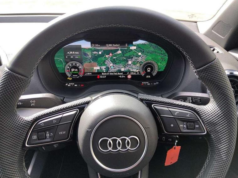 3D map display, Audi connect navigation and infotainment includes innovative services, Audi connect remote and control connects your vehicle to your smartphone, Audi drive select: S tronic - power steering assistance + engine + gearshift (modes: comfort, auto, dynamic, efficiency, individual), Audi smartphone interface - Apple carplay/Android Auto, USB connect, 2xSDXC card readers, voice control for navi, telephone, music and 3rd party apps, Audi virtual cockpit, Automatic start/stop system with recuperation, Bluetooth interface includes bluetooth audio streaming, Camera based traffic sign recognition, Cruise control, Distraction and Fatigue warning, E-call, Jukebox hard drive memory for music (10GB), Lane departure warning, MMI navigation plus with 8.8" touchscreen, Natural voice recognition, Power operated tailgate, Progressive steering, Rear parking sensors, Sport suspension, 6 passive loudspeakers, DAB Digital radio, USB type C port, Auto dimming rear view mirror, Black window trims, Body colour door mirrors, Electrically adjustable, folding, auto dimming and heated door mirrors with integrated LED side indicators, Front windscreen with grey tinted sunband, LED daytime running lights, LED headlights with dipped beam, high beam, position lights, indicators, LED rear lights, LED third brake light, Privacy glass - dark tinted rear and rear side windows from B-pillar backwards, Rear side wing doors, Rear wiper, S Line badges on the front wings, S Line body styling - front and rear bumpers, side skirts, radiator grille, rear diffuser insert and front air intakes, Variable front intermittent wipers, Wheel arch trims in manhattan grey, 12V socket in front, 3 seat bench in 2nd row, 3 spoke multi-function leather steering wheel with S badging, 4-way electric lumbar support for front seats including manual seat height adjustment for both front seats, 60/40 split folding rear seat bench, Black carpets, Black cloth headlining, Front and rear head restraints, Front centre armrest, Front sport seats, Front/rear floor mats, Height/reach adjust steering wheel, Illuminated door sill trims with S logo, ISOFIX child seat mounting in front passenger and rear outer seats, Manual air conditioning, Single front passenger seat, Stainless steel pedals, 3x3 point rear seatbelts, 6 airbags - Front, curtain and front side airbags, Electromechanical parking brake, Electronic stabilisation control including ABS, ASR and EDL, Front passenger airbag deactivation, Hill hold assist, Pre-sense front with pedestrian recognition, Seatbelt monitoring, Tyre pressure warning light with visual and acoustic warning, Warning triangle and first aid kit, Anti theft wheel bolts, Electronically operated child locks, Remote central door locking, Thatcham category 1 alarm, Aluminium interior element, Black dashboard, Gloss black centre console, Matt brushed aluminium trim inlays, Tool kit,