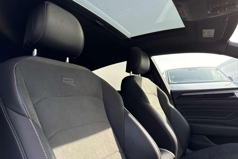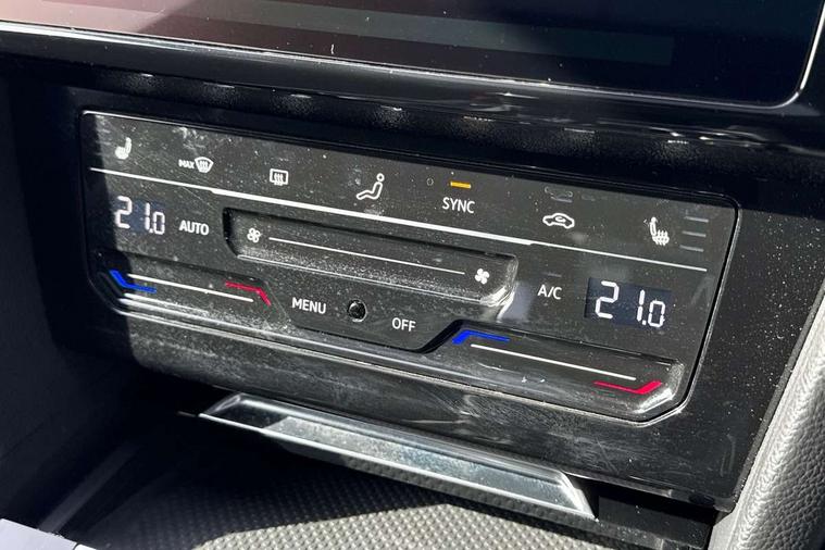 Adaptive cruise control (ACC) with speed limiter, front assist (reacting vehicles pedestrian and cyclists) and follow to stop, App connect including wireless Apple CarPlay, Camera for warning system, Digital cockpit with 10.25" high resolution TFT display screen with customisable menus and information, Driver alert system with fatigue detection, Driver profile selection including ECO function, Dynamic road sign display, eCall - Emergency call service for SOS calls to emergency response, Emergency assist, Hands free boot opening, Press and drive key, Progressive steering, Speedo and rev counter, electronic odometer, trip, service interval display and exterior temperature gauge, Travel assist - Lane keeping assist and traffic jam assist, Voice activation for telephone and navigation, Start/stop function with battery regeneration, Premium USB cable in choice of either Apple or Android smartphone compatibility, Auto dimming interior rear view mirror, Automatic headlights, Body colour door handles, Body colour side skirt, Body coloured top and matt black lower door mirrors with integrated indicators, Chrome plated radiator grille inserts and light switch surrounds, Chrome side window surrounds, Dynamic headlight range control, Electric folding door mirror, adjustable, heated with front passenger exterior mirror lowering function, Front and rear electric windows, Front and rear stainless steel door sill protection, Front windscreen washers and wipers with 4x interval delay, Heat insulating side and rear windows, Heated rear windscreen, Heated windscreen washer jets, High level 3rd brake light, LED rear combination lamp with dynamic indicators, LED rear number plate lights, Panoramic sunroof with tilting and sliding including integrated roller blind, R Line design body coloured bumpers, Rain sensor, Rear fog lamp on one side and reversing lamp on both sides, Rear side wing doors, Rear tinted glass from B pillar backwards, approx 65% tinted, Rear wash/wipe, Tailpipes behind rear bumper, 12V socket in front centre console, 12V socket on rear of front centre armrest, 3 rear head restraints, 3 seat bench in 2nd row, 30 colours options interior ambient lighting, 60:40 split folding rear seat backrests with centre armrest, Air care climatronic 3 Zone electronic air conditioning with automatic air recirculation, Black roof lining, Chrome trim on upper and lower air vents extending across cockpit, Driver and front passenger sunvisor with vanity mirror, Front + rear carpet mats, Front cupholders x 2, Front footwell illumination, Front sports comfort seats, Glovebox, Heated front seats, Height/reach adjust steering wheel, Isofix child seat preparation easy fit for two outer rear seats, Luggage compartment lighting, Removable luggage compartment cover, Single front passenger seat, Split folding front seat backrest with front centre armrest, Stainless steel pedals, Two LED front reading light, 3 rear three point seatbelts, ABS+EBD+Brake assist, Child locks on rear doors, Driver airbag and front passenger airbags with deactivation switch including driver knee airbags, Electronic parking brake, Electronic stability control (ESC) and Electromechanical brake booster, Front disc brakes, Front side airbags with curtain airbags, Hill start assist, Pro active occupant protection to detect critical situations with elevated accident potential from the front, Rear disc brakes, Three point height adjust front seatbelts + pretensioners, Two tone horn, Tyre pressure loss indicator, Warning buzzer for seatbelts if unfastened, Warning triangle, Alarm with interior protection with deactivation via infotainment system, Electronic engine immobiliser, Keyless entry system including start/stop button on centre console, Aluminium decorative inserts, Chrome trim on lower doors in front and rear, Leatherette insert on door and side trim panel in foam film, Piano black decorative inserts in centre console,