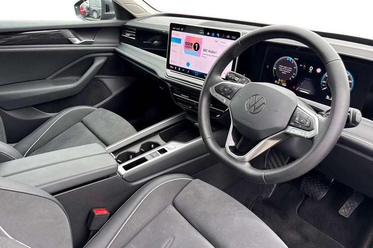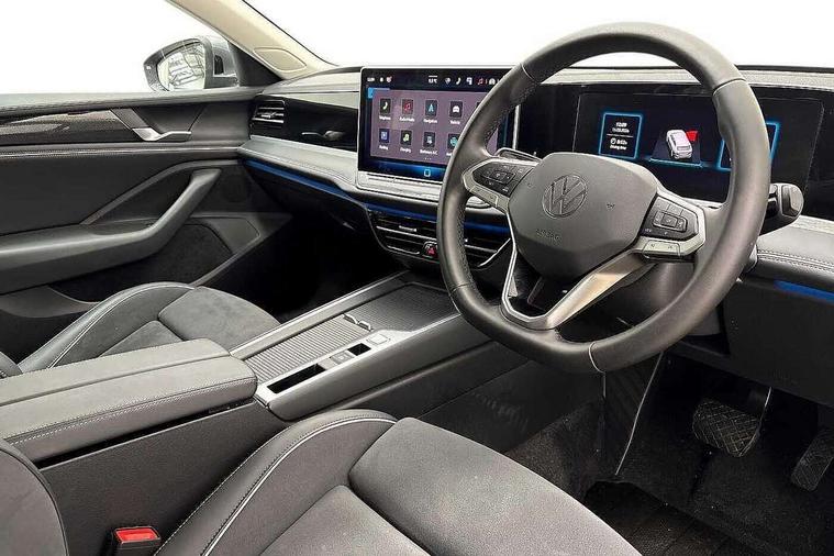2 x Front USB-C ports, 2 x USB-C charging sockets on the centre console in the rear, charging capacity up to 45W, Adaptive cruise control, Advanced driver attention and drowsiness monitor, Chat GPT function for IDA voice assistant, Digital cockpit pro 10.25" high resolution, Discover media navigation system includes streaming and internet, Dynamic road sign display, E-Sim card for online connectivity, eCall emergency call service, Electronic engine sound, Full electric tailgate operation, Inductive smartphone charging without external antenna connection, Memory feature for park assist, Oncoming vehicle braking when turning including swerve support, Park assist with park distance control, Predictive speed limiter, Preparation for We connect and We connect plus, Wireless app connect, Battery 340 A (58 Ah), Front wheel drive, Petrol Particulate Filter, 8 Speakers, Auto dimming interior rear view mirror, Automatic headlights, Body colour bumpers, Body colour door handles, Heat insulating glass in side and rear windows, LED third brake light, Rain sensor, Rear side wing doors, Rear wiper, Welcome light with surround lighting, 3 seat bench in 2nd row, 3 zone air care climatronic with rear air conditioning control panel, Front + rear carpet mats, Front head restraints, Isofix child seat preparation, easy-fit (for two outer rear seats, and front passenger seat), compatible with I-size, Luggage compartment cover, power operated, Single front passenger seat, Standard pedal cluster, Sun visors with illuminated vanity mirrors for driver and front passenger, Sunblind for rear side windows, Three rear head restraints, Unsplit rear seat bench, split folding backrest, Infotainment package plus - Passat Estate, Park and comfort pack - Passat Estate, 3x3 point rear seat belts, ABS (Anti locking brake system) includes BAS (Brake assist) and EBD (Electronic brake pressure distribution), Autonomous emergency braking front assist with pedestrian and cyclist monitoring, Disc brakes in front, Driver/Front Passenger airbags, Drivers knee airbag, Electronic parking brake with auto hold, ESC (Electronic stability control) + EDL (Electronic Differential lock) and ASR (Traction control), EDTC (Engine drag torque control), Extended safety system with proactive passenger protection system, Front passenger airbag deactivation switch, Hill hold function, Tyre pressure loss indicator, Warning triangle and first aid kit, Alarm with interior protection, Electronic engine immobiliser, Keyless locking and starting system keyless access with safelock, Aluminium decorative inserts, Tool kit for tyre mobility set, Trims for alloy wheels,