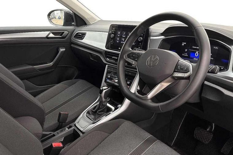 Advanced driver attention and drowsiness monitor, Dynamic road sign display, Emergency call service, Lane keeping system Lane Assist, Mobile phone interface, Modified key software - reduce switch off time for key status change to Long no motion, Online services, Park assist including front and rear parking sensors, Power assisted speed sensitive steering, Rear view camera, Service interval indicator, Tailgate/trunk lid release from outside, Think blue trainer driver tips and journey analysis, Warning sound and light for front seatbelts unfastened, Wireless app connect, Battery regeneration during braking, Front shock absorption, Rear shock absorption chassis with increased ride height, Start/stop function with battery regeneration, DAB Digital radio, Diversity antenna for FM reception, Music playback - MP3, WMA and AAC files, SD card slot, Simultaneous pairing of 2 compatible mobile devices, Title and cover art display, We Connect and We Connect Plus functionality, Auto dimming interior rear view mirror, Automatic hazard lights activation under emergency braking, Automatic headlight control with LED separate daytime running lights with coming/leaving home function, Black roof rails, Body coloured bumpers and radiator grille with chrome trim and front fog lamps with chrome bezel, Body coloured exterior mirror housings and door handles, Electrically adjustable and heated door mirrors, Extended roof spoiler, Exterior mirrors aspherical on driver side, convex on front passenger side, External USB type C socket and charging sockets, Front windscreen wiper with intermittent wipe and 4 position delay, Heated rear window, LED 3rd brake light, LED rear combination lamps, LED rear number plate lights, Power windows with comfort operation and circuit breaker, Privacy glass for rear side windows and rear window, Rain sensor, Rear exhaust tailpipe, Rear fog light on one side and reversing lights on both sides, Rear side wing doors, Rear wash/wipe with intermittent wipe setting, Remote electrically foldable door mirrors, puddle lights and reverse activated passenger's door mirror, 12V power socket in centre console, 3 rear head restraints, 3 seat bench in 2nd row, 4 load lashing points in luggage compartment, Air care climatronic air conditoning system with active combination filter and 2-zone temperature control, Black stitching for floor mats, Ceramique roof liner, Cloth upholstery, Door and side trim panel in cloth, Drawer under drivers seat, Driver/front passenger seat height adjustment, Front centre armrest, Front comfort sports seats, Front cupholders x 2, Front reading light, Front seat back storage pockets, Glove compartment door with light, Instrument lighting, white adjustable panel illumination, Interior ambient lighting and surround lighting, Interior light delay, Isofix child seat preparation, Leather gearshift handle, Load-through provision with cup holder when folded down ('Unsplit rear seat bench, split folding backrest, with centre armrest), Luggage compartment lighting, Lumbar support for driver's and front passengers seat, Non-folding front passenger seat backrest, Single front passenger seat, Storage compartment in left and right luggage area, Storage compartment in rear doors, Storage compartments in driver and front passenger doors, Sunvisors with illuminated vanity mirrors, Variable boot floor, height adjustable and removable, Driver assistance pack without proactive passenger protection - T-Roc Life/Match, 3 point height adj front seatbelts + pretensioners, 3 point seatbelts in outer rear with ECE label, ABS, Child locks on rear doors, City emergency braking and pedestrian monitoring, Driver and front passenger airbag with front passenger airbag deactivation, Driver and front passenger safety-optimised head restraints, Drivers seatbelt reminder, Electronic parking brake, Electronic Stability Control (ESC) inc EDL (Electronic Differential Lock) and ASR (Traction Control), Front and rear passengers curtain airbag system including front side airbags, Front disc brakes, Hill start assist, Predictive pedestrian protection, Rear disc brakes, Two tone horn, Tyre pressure loss indicator, Volkswagen roadside assistance, Alarm with interior protection, Keyless locking and starting system keyless access with safelock, Pewter matt decorative inserts for intrument panel, centre console and door panels at the front, Trims for alloy wheels,