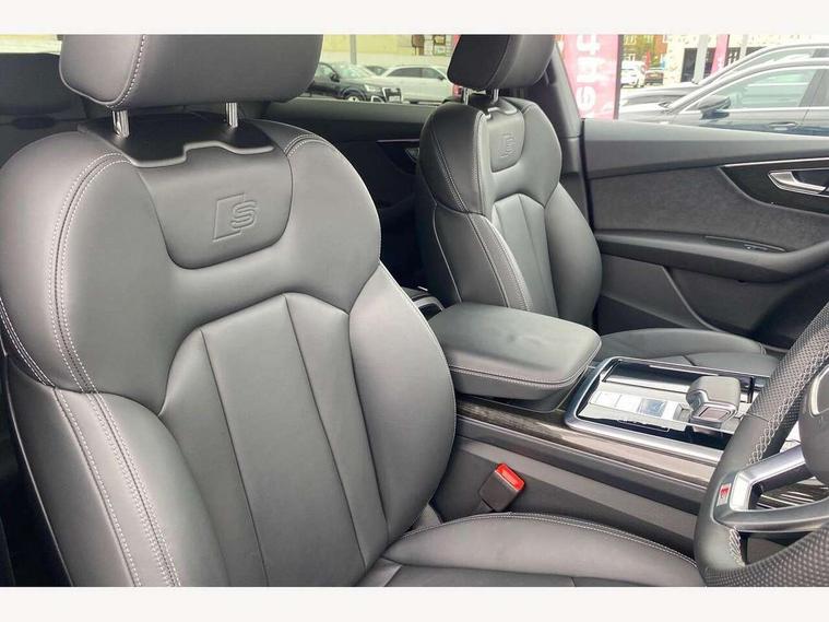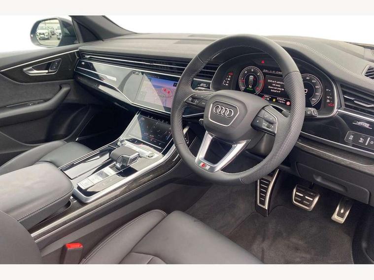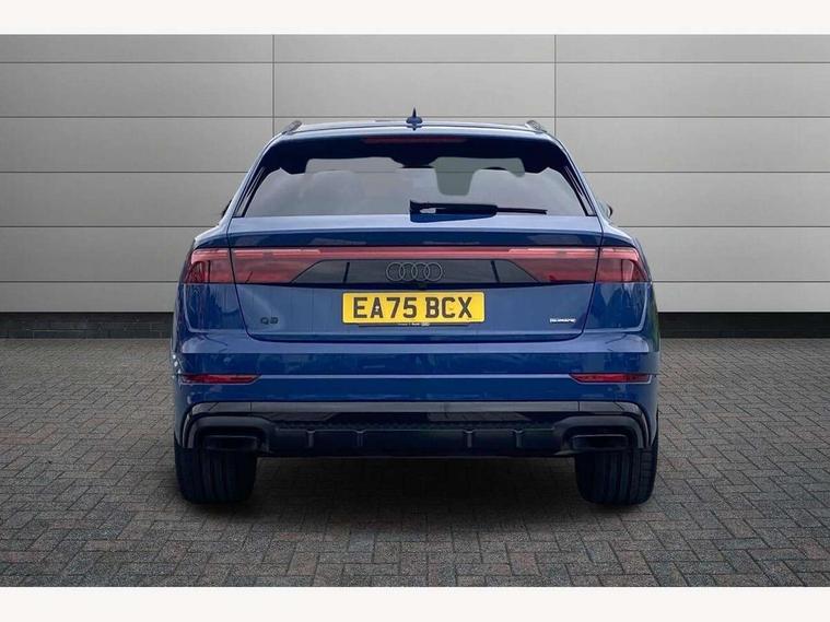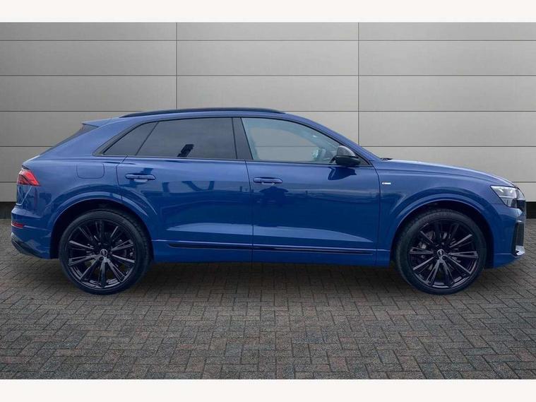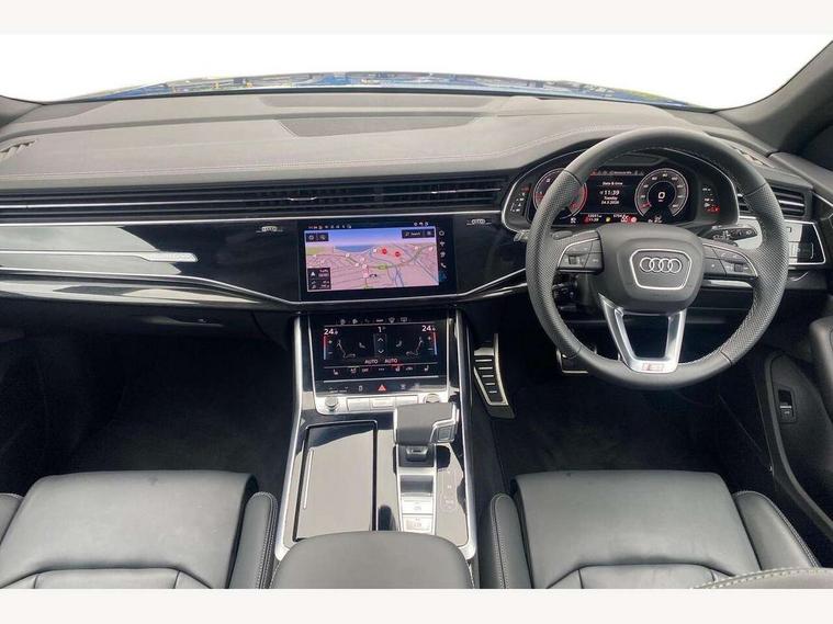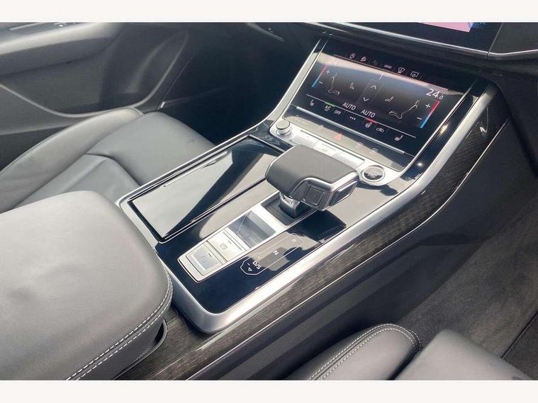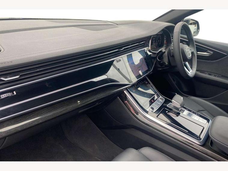 10.1" and 8.6" Dual colour touchscreens, Audi application store, Audi connect safety and service (e-call), Audi connect with Amazon Alexa Integration, Audi drive select, Audi parking system plus includes 360 degree display with front and rear sensors, Audi phone box light with wireless charging, Audi virtual cockpit - 12.3" high resolution LCD display with fully customisable instrument cluster, Automatic start/stop system, Bluetooth, Electro-mechanical PAS, Low washer fluid indicator, MMI navigation plus with MMI touch, Natural voice recognition, On board computer, Operating buttons in black, glass look with haptic feedback, Power operated tailgate, Rear view camera, Service interval indicator, Smartphone interface includes wireless Apple carplay/Android Auto, 48V Mild hybrid technology, Adaptive sport air suspension, Diesel particulate filter, Quattro all wheel drive with self locking centre differential, Audi music interface with 2 USB ports with charge and data functions, Audi sound system with 6 channel amplifier, 180 watt amplifying capacity and 10 loudspeakers including subwoofer, Aux-in socket, DAB Digital radio, 3rd brake light, Audi beam, Auto dimming frameless rear view mirror, Black exhaust tailpipes, Black single frame mask, Coming/leaving home lighting function, Electric front+rear windows, Electrically folding auto dimming/adjustable/heated door mirrors with memory function, LED side indicators and kerb view function for passenger side, Headlight washers, Heat insulating glass in windshield, LED rear light plus, LED signature daytime running lights, Loading edge protection in stainless steel, Matrix LED headlights with dynamic front and rear indicators, Platinum grey front spoiler lip and diffuser insert with honeycomb grille in black, Privacy glass - dark tinted rear and rear side windows from B-pillar backwards, Rain and light sensors, Rear side wing doors, Rear wiper, Singleframe grille surround in matte platinum grey, 2 zone automatic climate control, 3 bench rear seats in 2nd row, 4-way lumbar support for front seats, 40:20:40 split folding rear bench seat, Black cloth headlining, Comfort front centre armrest, Driver seat memory function, Electrically adjustable front seats, Front head restraints, Front/rear floor mats, Heated front seats, ISOFIX child seat mounting for front passenger seat and 2 outer rear seats with top tether child seat mounting for all 3 rear seats, LED interior ambient lighting, Luggage compartment sill protection in stainless steel, Rear centre armrest with 2 cupholders, Rear headrests, Seat cushion displaceable by 100mm in the ratio 60:40, Single front passenger seat, Stainless steel pedals, Sunvisors with illuminated vanity mirrors, Black styling pack plus - Q8, 3 point seatbelts on all seats, Audi pre sense front, Convenience key with safelock, Driver and front passenger, front side and curtain airbags, Electromechanical parking brake, Electronic Stability Control (ESC) including ABS, ASR and EDL, Front passenger airbag deactivation, Hill descent control, Hill hold assist, Predictive pedestrian protection, Seatbelt monitoring, Traction control, Tyre pressure loss indicator, Warning triangle and first aid kit, Anti theft alarm with tow away protection, Anti-theft wheel bolts and wheel loosening detection, Electronically operated child lock, Immobiliser, Keyless go with remote central locking, Polished oak trim with grey finish inlay, Tool kit, Tyre repair kit,
