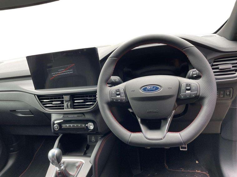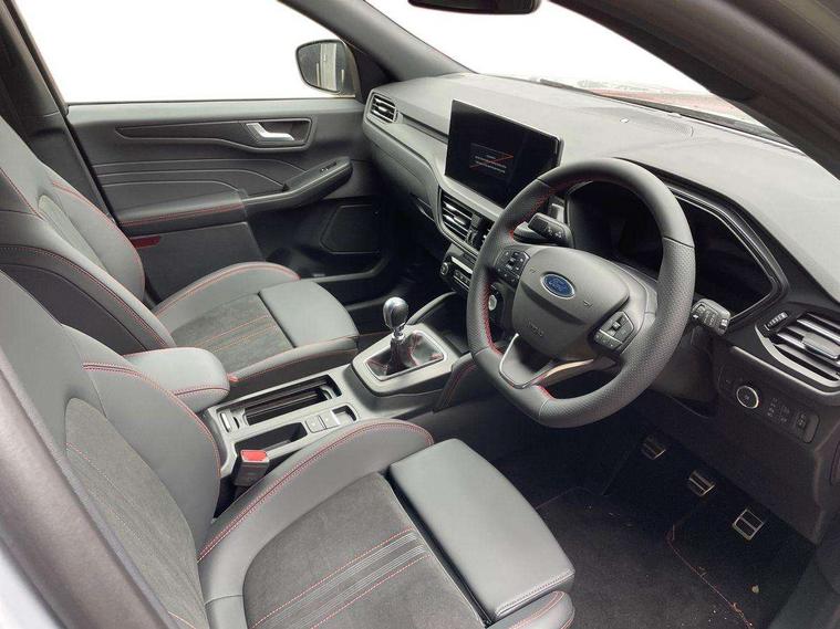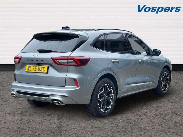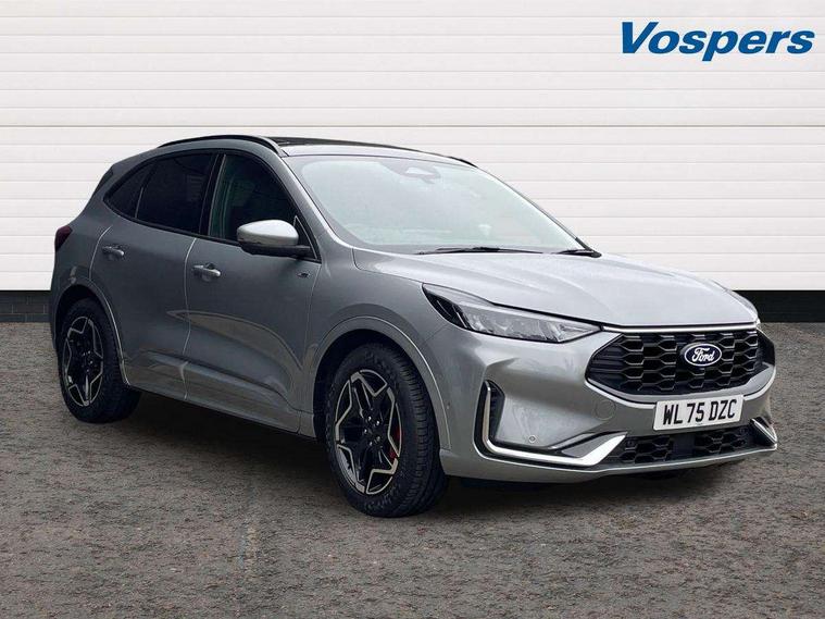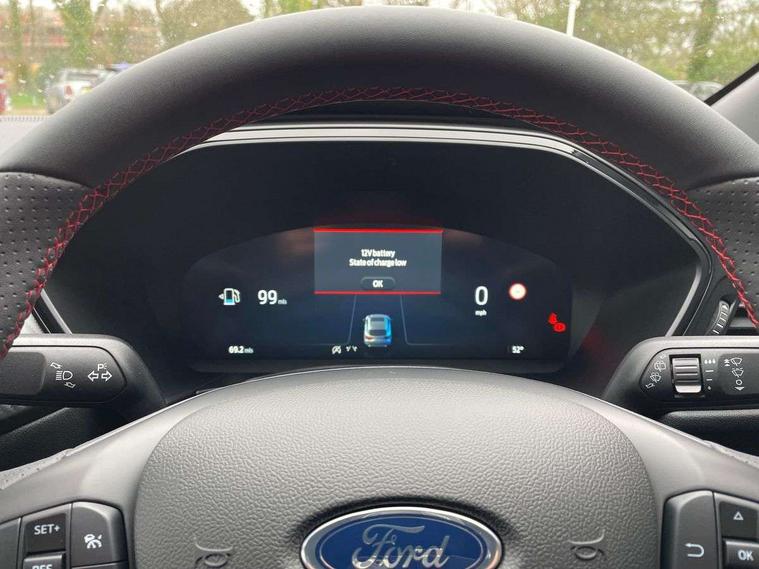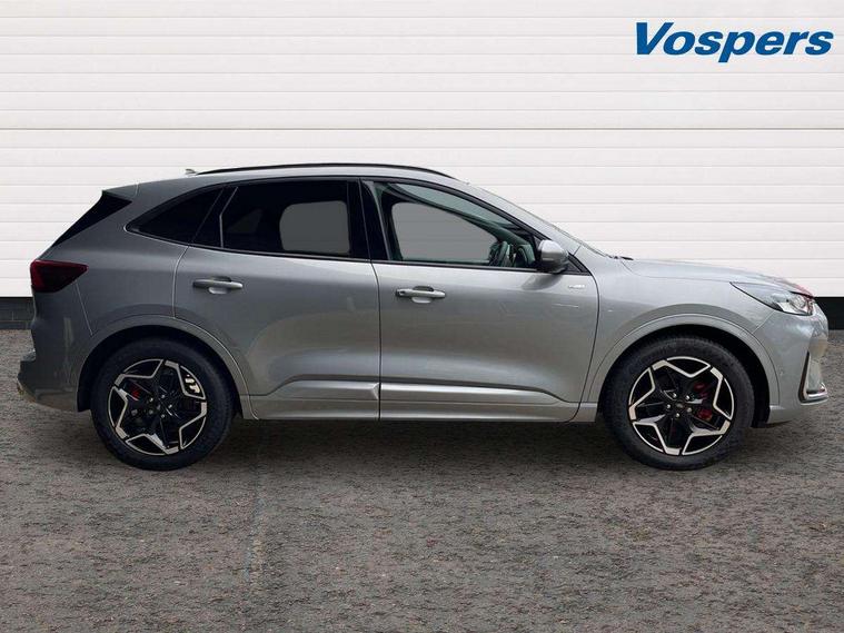 12.3" digital colour instrument cluster, 360 degree view camera, Cross traffic alert with active braking, e-Call (emergency call), Ford easy fuel, Ford SYNC 4 Navigation with 13" touchscreen, DAB radio, emergency assistance, Andriod Auto/Apple CarPlay, 5G modem & Ford Pass connect, Front and rear parking sensors, Hands free power tailgate, Lane keeping aid with lane departure warning, Power assist steering, Selectable drive modes, Service interval indicator, Sports suspension, B&O premium audio system with 10 speakers, subwoofer and 2 USB ports, Auto headlamps with high and low beam, Black roof rails, Body colour bumpers, Front LED fog lamps, Large rear spoiler, LED daytime running lights, LED rear lights, LED third brake light, Pop out door edge protectors, Power front/rear windows with global close, Power heated folding door mirrors with puddle lights, memory function and camera, Power opening panoramic roof, Quickclear heated windscreen, Rain sensing wipers, Rear privacy glass, Rear side wing doors, Rear wiper, ST-Line body styling kit, 2nd row sliding seats, Electronic automatic temperature control (EATC), Front and rear head restraints, Partial premium touch sensico upholstery, Rear centre head restraint, Single front passenger seat, Sports seats, Driver assistance pack - Kuga Manual, Winter pack - Kuga, 3x3 point rear seatbelts, Airbags - front driver/passenger, front and rear curtain, Drivers knee airbag, Dynamic brake support, Electronic stability control (ESC) and ABS, Evasive steering assist, Ford MyKey Gen 2 safety system, Manual child proof rear door locks, Pre collision assist with autonomous emergency braking, Rear seat Occupancy alert, Red brake calipers, Tyre pressure monitoring system, Engine immobiliser, Keyless entry and Ford power start button (Keyless start), Locking wheel nuts, Remote powered central double locking doors, Thatcham category 1 alarm,