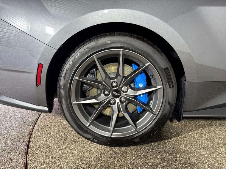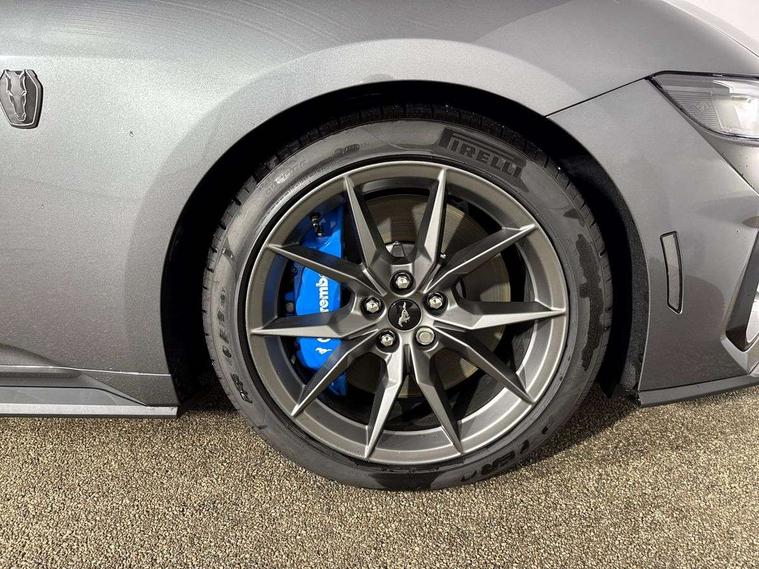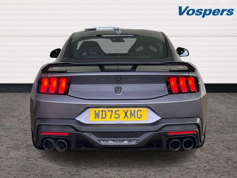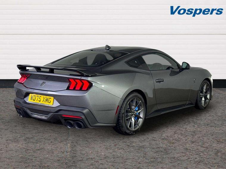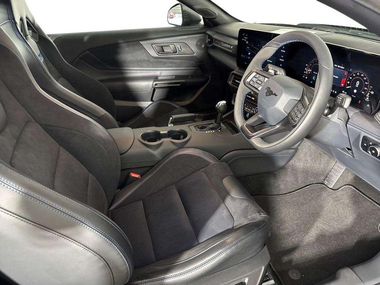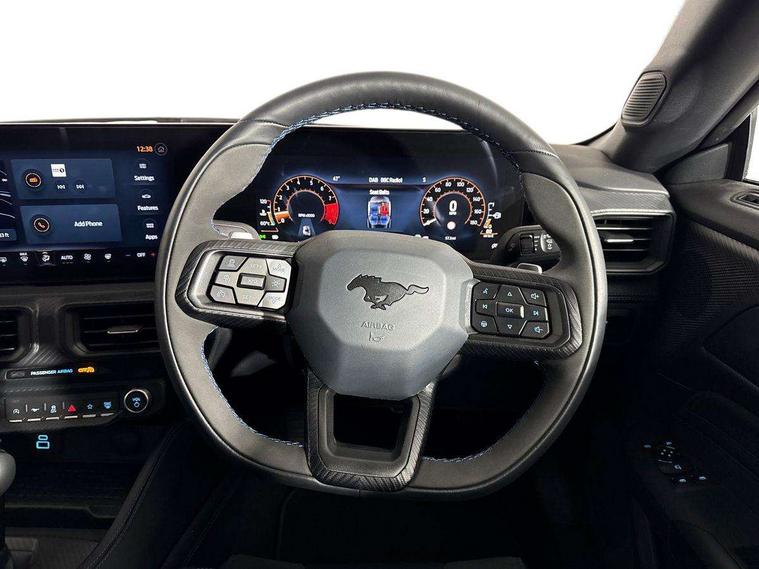 12" digital LCD instrument cluster, Adaptive cruise control with adjustable speed limiter, Apple car play/Android Auto, Bluetooth connectivity with voice control, Electric power steering, Emergency services call system, Ford pass connect embedded modem, Fully customisable 13.2" Touchscreen with wireless smartphone integration, FordPass connect & connected navigation, Lane keeping aid with lane keeping assist, Oil pressure gauge, Rear view camera with rear parking sensors, Selectable driving modes - normal, mymode, snow/wet, sport+, track and drag mode, Service interval indicator, SYNC Emergency Assistance, Track apps with accelerometer technology, Trip computer, Wireless charging and USB charging port, Limited slip differential, Magneride adaptive suspension system with unique Dark Horse calibration and pothole mitigation, Magneride damping system with pothole mitigation, Bang & Olufsen 12-speaker surround sound audio system, DAB Digital radio, USB connection, 3rd brake light, Active exhaust system with quad tailpipes, Auto dimming rear view mirror, Auto high beam, Automatic headlights, Automatic rain sensing wipers, Body colour bumpers, Body colour door mirrors, Bonnet air intake, Dark Horse front grille with dark pony badge, Dark Horse extrior badging and quad tailpipes in black, Dark Horse specific bodykit with exclusive aerodynamic enhancements, Dark Triple-LED headlamps with welcome / farewell animation, Electric front windows, LED daytime running lights, LED rear lights with sequential indicators and welcome / farewell animations, Power-folding door mirrors including blind spot informaion system and mustang logo projection puddle lamps, Rear boot, 6 way power adjustable front seats, Ambient lighting, Cup holders, Electronic automatic temperature control (EATC), Front headrests, Heated leather flat bottom steering wheel with blue stitching and Dark Horse badging, Illuminated entry system, Individually folding 2 rear seats in 2nd row, Isofix system on outer rear seats, Leather gearknob, Reach and rake adjustable leather steering wheel with integrated controls, Rear head restraints, Single front passenger seat, 4 seatbelts, ABS, Drivers knee airbag, Dual front airbags, Electronic Line Lock, Electronic Stability Control (ESC) with three settings, ESP, Front side airbags, Performance brake system with brembo 6 piston front callipers and electronic brake prefill, Pre-collision assist with AEB and pedestrian and cyclist detection, Side curtain airbags, Tyre pressure monitor, Ford key free system with power starter button and keyless entry, Immobiliser, Thatcham Cat.1 alarm, 19" Unique aluminium wheels, Tyre repair kit,