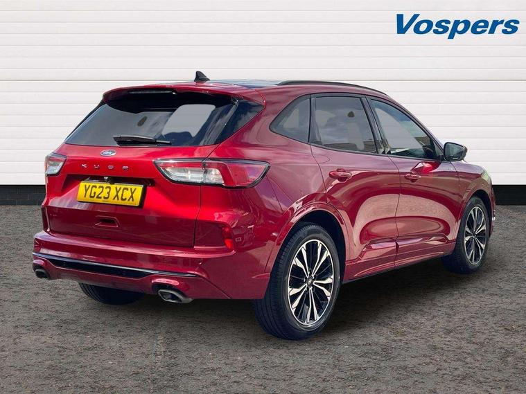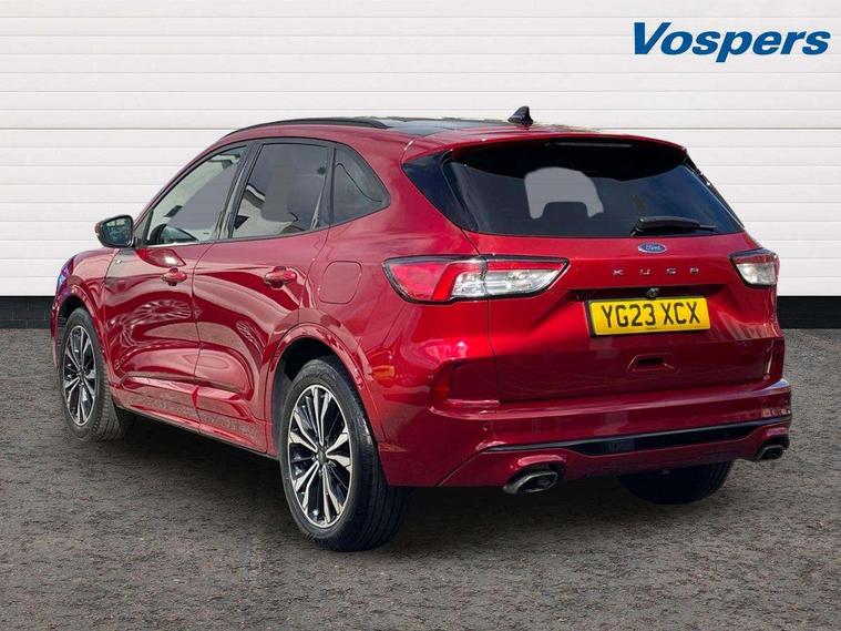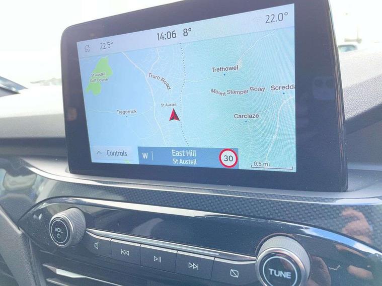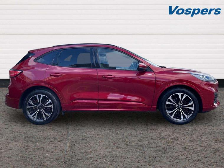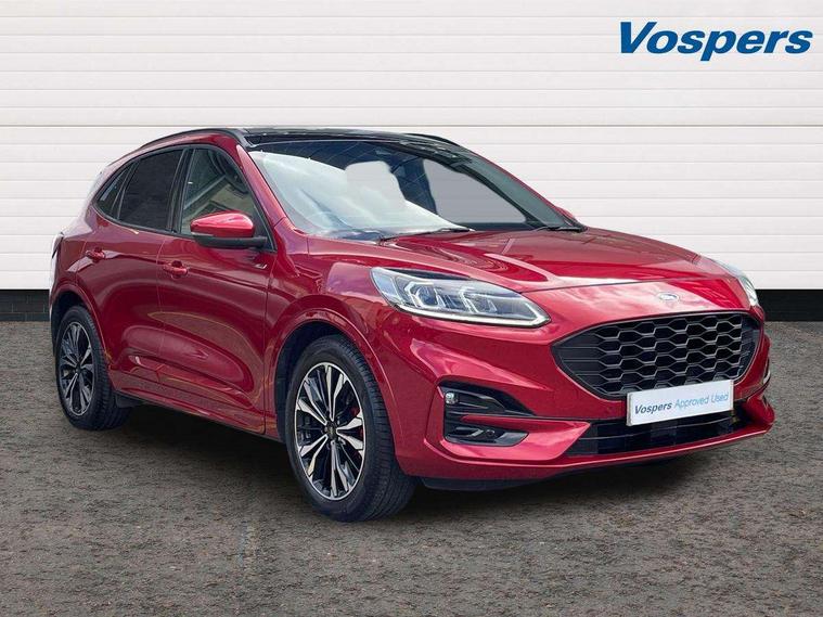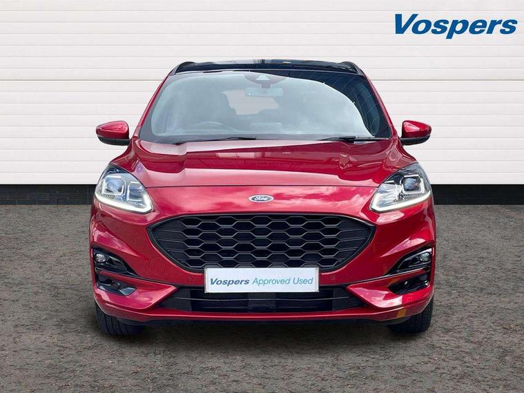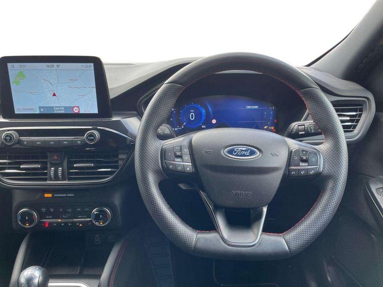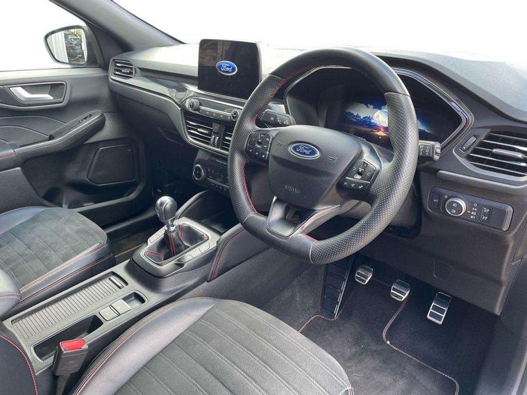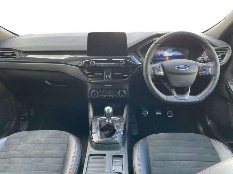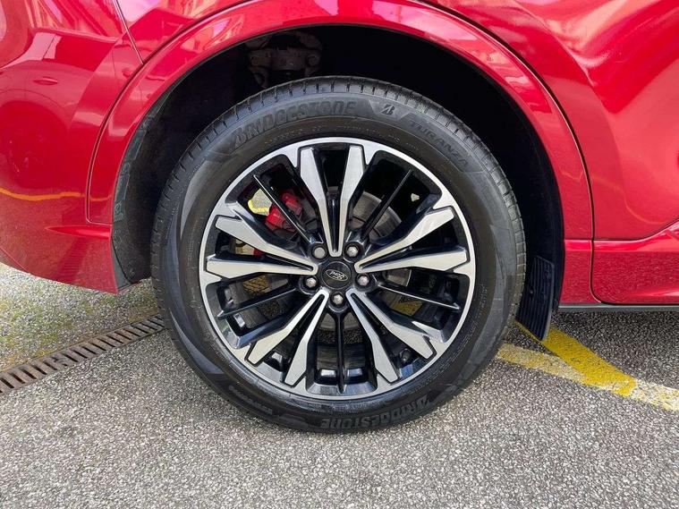 12.3" digital colour instrument cluster, Ford easy fuel, Ford SYNC 3 with 8" TFT LCD touchscreen, App Link, andriod auto/apple carPlay, emergency assistance and navigation with Ford pass connect, Front and rear parking sensors, Hands free power tailgate, Lane keeping aid with lane departure warning, Power assist steering, Rear view camera, Selectable drive modes, Service interval indicator, Sports suspension, Twist beam rear suspension, B&O premium audio system with 10 speakers and subwoofer, 2 USB ports, DAB radio/CD, Auto headlamps with high and low beam, Black roof rails, Day/night rear view mirror, Front LED fog lamps, Large rear spoiler, LED daytime running lights, LED rear lights, Power folding heated door mirrors with puddle lights, Power front/rear windows with global close, Power opening panoramic roof, Privacy glass, Quickclear heated windscreen, Rear side wing doors, Rear wiper, ST Line body styling kit with unique front and rear fascia and bumper, rear painted diffuser, front painted skid plates, dark mesh upper grille, ST Line front scuff plates, Third brake light, Twin exhausts, 10 way power adjustable drivers seat, 2nd row sliding seats with 60:40 split, 8 way manual passenger seat including lumbar support and height adjust, Alloy pedals, Centre console with electronic parking brake, Dark headlining and pillars, Electronic automatic temperature control (EATC), Flat bottomed leather steering wheel in sensico with red stitching, Front and rear head restraints, Heated passenger and driver seats, Heated rear seats, Heated steering wheel, Partial premium touch sensico leather upholstery with black cloth inserts and red stitching, Rear charging point, Single front passenger seat, Sports seats, ST Line front and rear floor mats, ST Line gear knob, 3x3 point rear seatbelts, Airbags - front driver/passenger, front and rear curtain, Drivers knee airbag, Electronic stability control (ESC) and ABS, Ford MyKey Gen 2 safety system, Manual child proof rear door locks, Post collision braking, Pre collision assist with autonomous emergency braking, Rear seat Occupancy alert, Red brake calipers, Tyre pressure monitoring system, Engine immobiliser, Keyless entry and Ford power start button (Keyless start), Locking wheel nuts, Remote powered central double locking doors, Thatcham category 1 alarm,