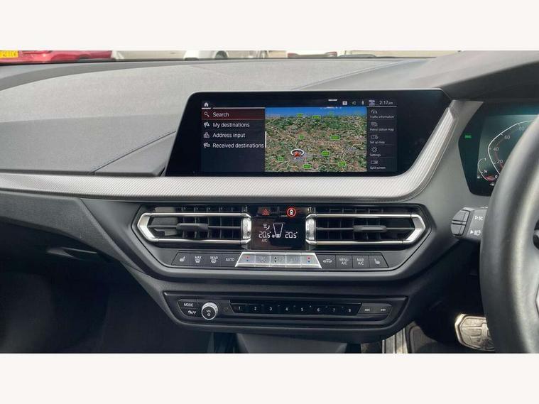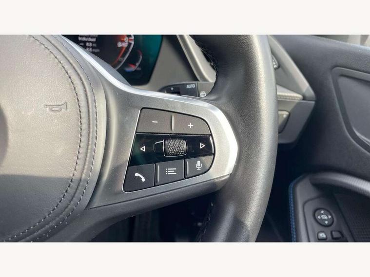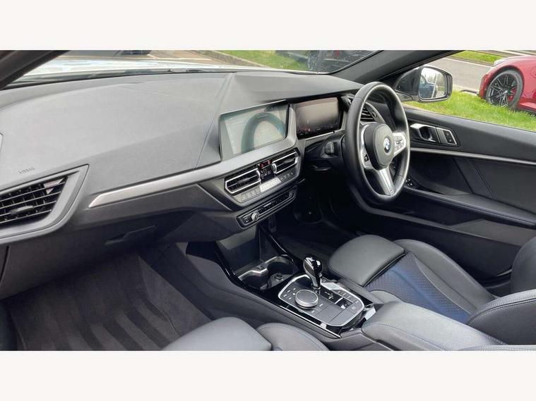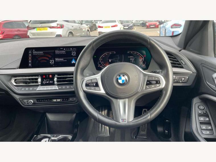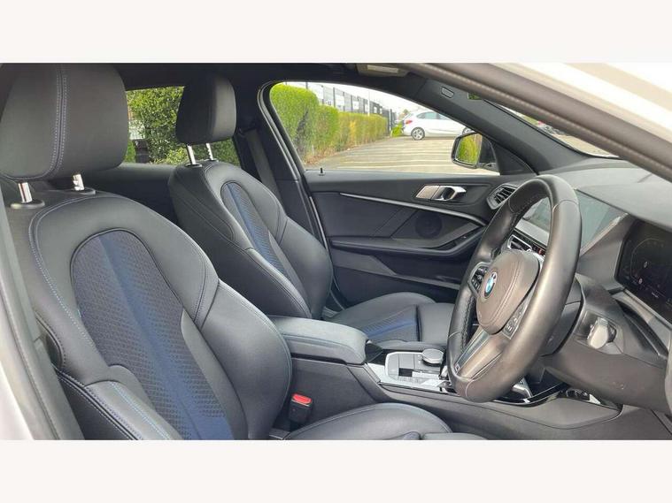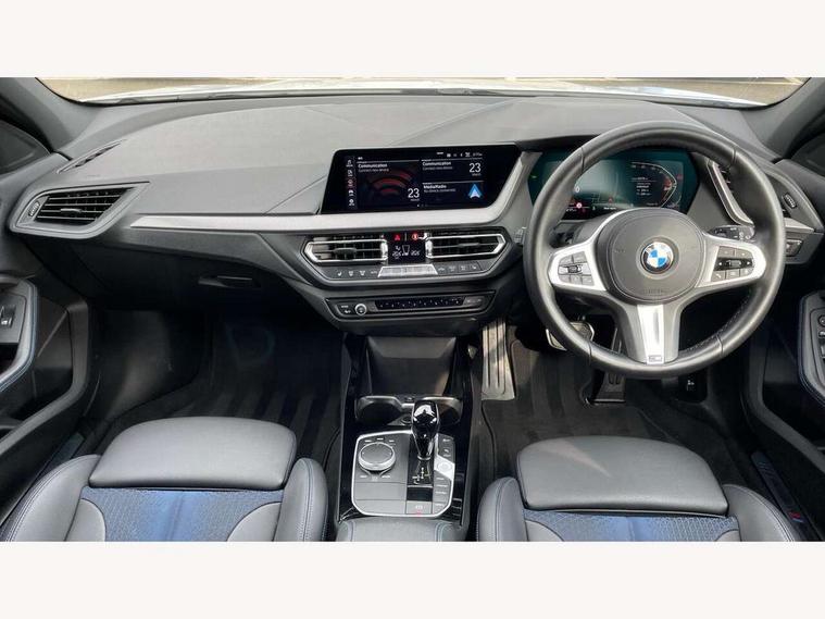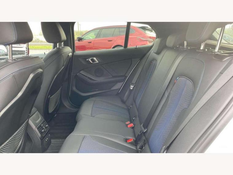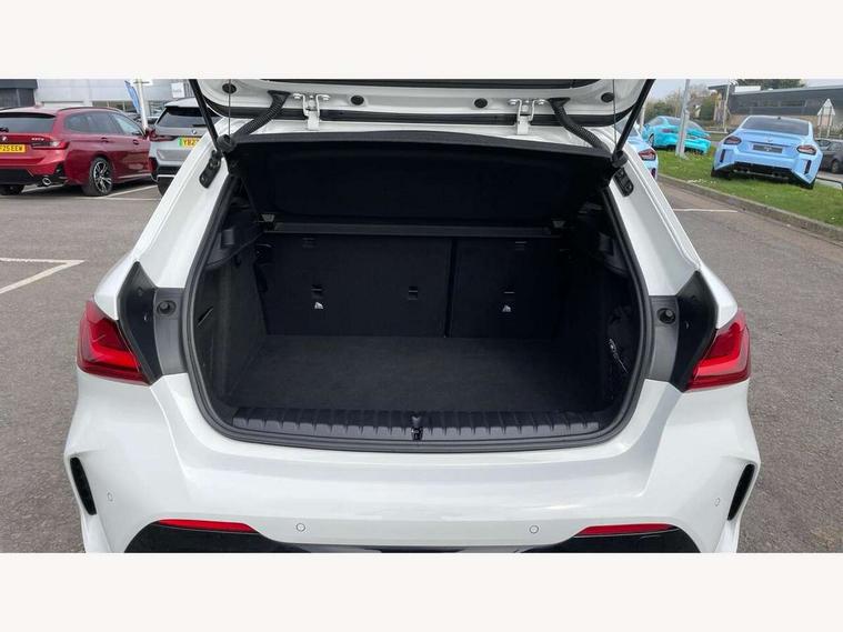 Active guard plus, Attentiveness assist, BMW ConnectedDrive online services, BMW Teleservices, Check Control warning system for monitoring of lights and door/luggage compartment open warning, Cruise control with brake assist, Eco pro mode, Front axle single joint with specific axle kinematics to minimise drive influences on steering + provide increased rigidity agile driving behaviour, Integrated owners handbook, Lane departure warning system, Oil sensor for level and grade, On board computer, Optimum shift indicator, Personal Profile, Pull away assistant, Rigidly mounted rear subframe - Multi link construction with separate spring / damper configuration and excellent driving characteristics, Speed limit Info including no-overtaking indicator, Speed limiter, Aluminium lightweight construction, Anti roll bar front and rear, Balancer shaft, Double VANOS twin scroll turbocharging system, Drive Performance Control, Electronic differential lock, High precision injection, M sport suspension, Petrol Particulate Filter, Twin tube gas filled shock absorbers with degressive characteristic curve, VALVETRONIC engine management, DAB Digital radio, Auto dimming rear view mirror, Automatic headlight beam throw control, Automatic windscreen wipers and automatic headlight, Body colour door handles, Body colour mirror caps, Body colour roof trims, Chrome 'M' logo side designation, Chrome exhaust twin tailpipes round 90mm in left, Chrome kidney grille frame with Satin Aluminium struts, Direction indicator side lights in exterior mirrors, Fading support, Folding side mirrors with auto dimming/folding wing mirrors with auto dimming, Follow me home headlights, Front and rear bumper system with replaceable deformation elements, Front and rear electric windows with open and close fingertip control, anti trap facility and comfort closing, Front door sill finishers in black plastic with M designation in metallic look, Green tinted heat protection glazing, Heated, electrically adjustable exterior mirror aspheric on driver side, convex on passenger side, High gloss shadowline window frame, Recess cover mirror frames and B/C pillar embelisher trim, High level third brake light, Integrated front windscreen with washer jets, LED daytime running lights, LED eyebrow turn indicators, LED front fog lights, LED Headlights, Lightweight engineering, Matt black air guide grilles, Matt black wheel arch trim, Model designation on electric bootlid, Nearside reverse light in rear light cluster, Preparation for high beam assistant, Rear fog lights, Rear side wing doors, Rear window wiper, Shark fin antenna, Trailer stabilisation logic, Visible VIN plate, Welcome lighting, 12V power socket in front centre console with blanking plug, 3 rear seat head restraints, 3 seat bench in 2nd row, 3 spoke sports leather steering wheel with black leather and stitching, pearl chrome decorative finish, specific M Badge, Anthracite headlining, Black boot net with lashing eyes, Cargo function on 2nd seat row, Child seat ISOFIX attachment for two outer rear seats and front passenger seat with anchorage points, Conditioned based service, Driver and front passenger seat heating, Folding rear clothes hook, Four grab handles integrated in roof lining, Front and rear door pockets with bottle holders, Front and rear side armrest integrated into door trim, Front armrest, Front sports seats, Glove compartment, Height adjustable front head restraints, Luggage compartment for bag hooks on left and right, foldable luggage compartment liner and four lashing eyelets, Manual adjust steering wheel, Multi-function controls for steering wheel, Single front passenger seat, Storage compartment in centre console, Sun visors with vanity mirrors and insert tab, Two front centre console cupholders, Two zone automatic air conditioning, Velour floor mats, Additional interior lighting pack - 1 Series, BMW live cockpit professional pack- 1 Series, Connected pack professional - 1 Series, Interior lights pack - 1 Series, M Sport exterior styling aerodynamics pack - 1 Series, 2 tone horn, 3 point seatbelts on all seats, front pyrotechnic belt tensioners, stopper and belt force limiters, rear coded belt buckles, Airbags - Front driver/passenger, front and rear curtain head protection, front side, manual deactivation of front passenger airbag, Anti lock braking system (ABS) with brake assist, BMW emergency call, Brake drying, Braking readiness, Child proof locking system in rear door, City braking function, Comfort modes, Cornering brake control, Crash sensor activating central locking release, hazard warning lights, fuel cut off, interior lighting + activation of safety battery terminal clamp, Driver and front passenger seat belt security check, Dynamic stability control + (DSC+), Dynamic Traction Control - DTC, Electrically operated hand brake including automatic hold function, Front and rear disc brakes, Seatbelt warning, Side impact protection, Tyre pressure monitoring system, Warning triangle and first aid kit, Central locking switch for all doors, fuel filler cap and luggage compartment, Deadlocking function system to all doors, Drive away locking system on all doors and luggage compartment with de-activated in iDrive settings, Locking wheel bolts, Remote control with integrated key with High-gloss Black inlay and M designation and 1 button for open/ close lock, window, open luggage compartment, Start/stop button illuminated in centre console with keyless engine start and auto start stop deactivation button, Thatcham Cat.1 alarm and immobiliser, Wheel slip limitation close to the actuator (ARB), Contrast stitching on instrument panel, Electrically powered 12V compressor, Reduced rolling resistance tyres,
