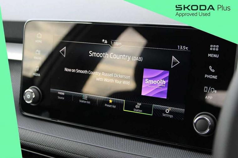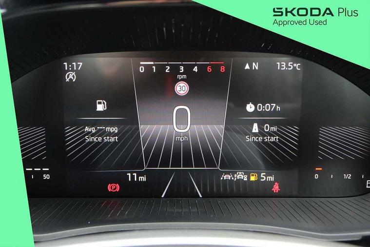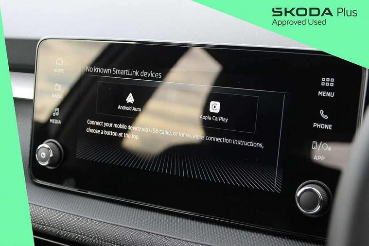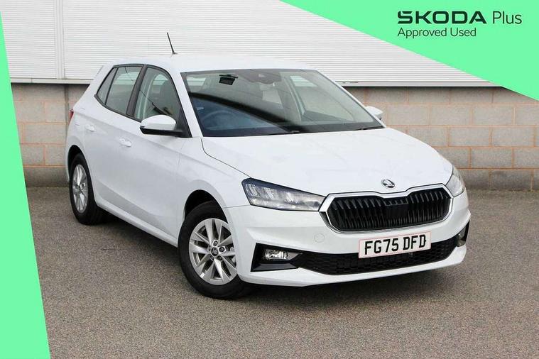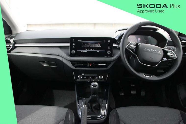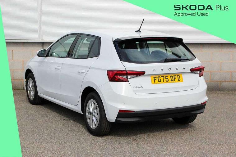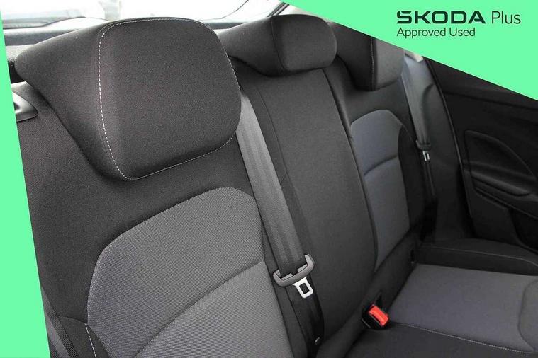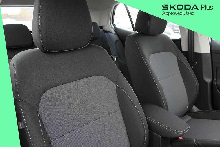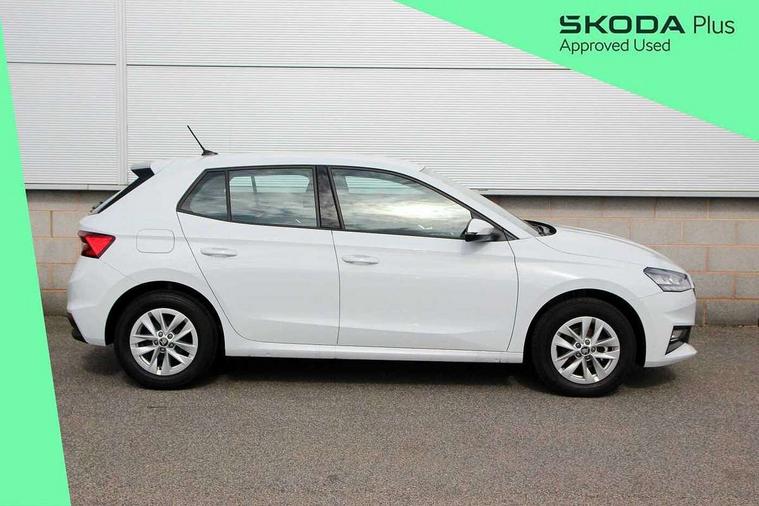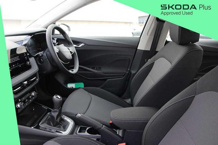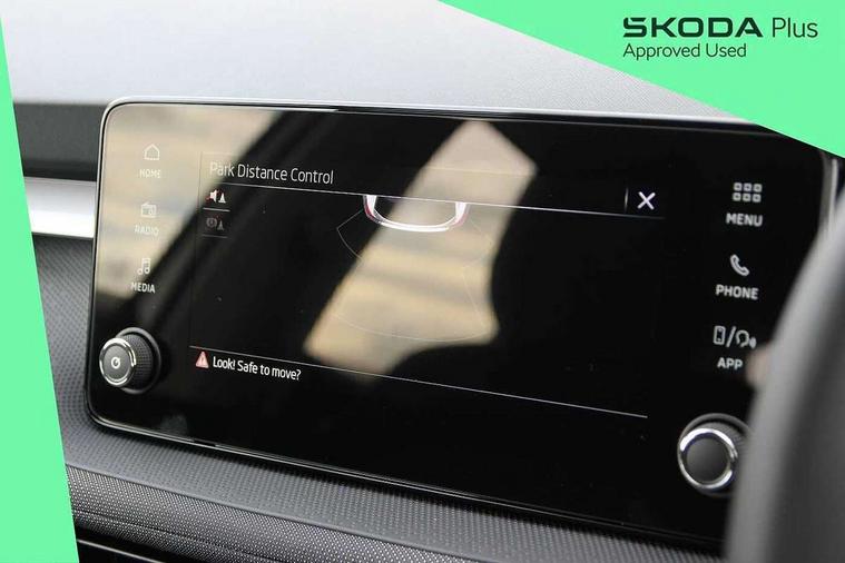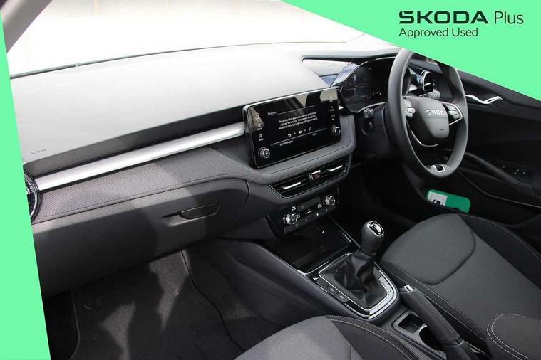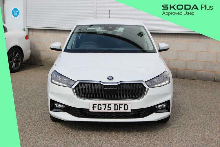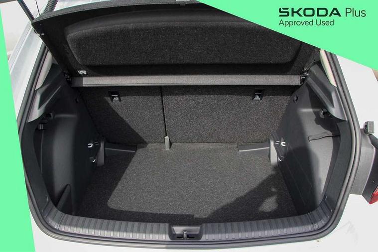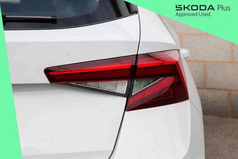 8" Digital instrument display, Advanced driver attention and drowsiness monitor, Bluetooth connection, Driver alert system, Electromechanical power steering, Exterior temperature gauge, Service interval indicator, Traffic sign recognition, Wireless SmartLink for Apple CarPlay and Android Auto, 6 Speakers (4 in front and 2 in rear), 8.25" Skoda infotainment touchscreen display, Auxiliary socket for external MP3 player, DAB digital radio reception, Auto dimming rear view mirror, Body colour door mirrors, Body coloured bumpers, Door mirror integrated indicators, Front and rear electric windows, Front window wiper intermittent control, Headlight range control - Automatic, LED 3rd brake light, LED daytime running lights with coming and leaving home feature, LED rear lights, Rear LED fog light, Rear side wing doors, Rear window wiper with washing nozzles, Roof mounted spoiler, SKODA tailgate lettering in chrome, Unique dark chrome design logo on alloy wheels, 2 reading lights in front and 2 reading lights in rear, 3 rear headrests, Backrest split and folding, Central console with removable cup holder and storage box, Chrome handbrake release button, Dual zone air conditioning with climatronic electronic control, Fabric upholstery, Front centre armrest, Gearshift knob/handle in leather, Grain satin black interior door handles, Hand brake lever handle in leather, Height adjustable front headrests, Height adjustable front seats, Height adjustable steering wheel, ISOFIX and TopTether anchorage points to the outer rear seats, ISOFIX and TopTether on the front passenger seat, Luggage compartment lighting, Manually adjustable lumbar support in front seats, Pollen filter, Rear seat bench unsplit, Single front passenger seat, Skoda lettering on steering wheel, Storm grey headlining, Sun visors with mirror and airbag label on passenger side, Textile floor mats, Ambient lighting pack - Fabia Hatchback, 3-point height adjustable front seats belts with pretensioner and force limiter, Automatic warning lights in case of crash, Driver and passengers airbag with switch off function, e-Call+, ESC including ABS, MSR, ASR, EDS, HBA and XDS, Front and rear seat belt warning, FRONT ASSIST (AEB City and AEB Inter Urban), Front side airbags, Head airbags, One tone horn, Pedestrian protection, Three rear 3-points safety seat belts with pretensioner and force limiter including stop function for outer rear seat belts, Tyre pressure monitoring system, Anti-theft alarm system including immobiliser, interior monitoring, backup horn, and towing protection, Central locking with radio remote control, interior controls, SAFE function and 2 foldable keys, Black painted air vents, Grain satin black central console cover, Metallic grey upper decorative trim, Satin black door and side trim panel in front, Textile Kota grey lower decorative inserts, Anti-theft wheel bolts protection, Super-low rolling resistance tyres,