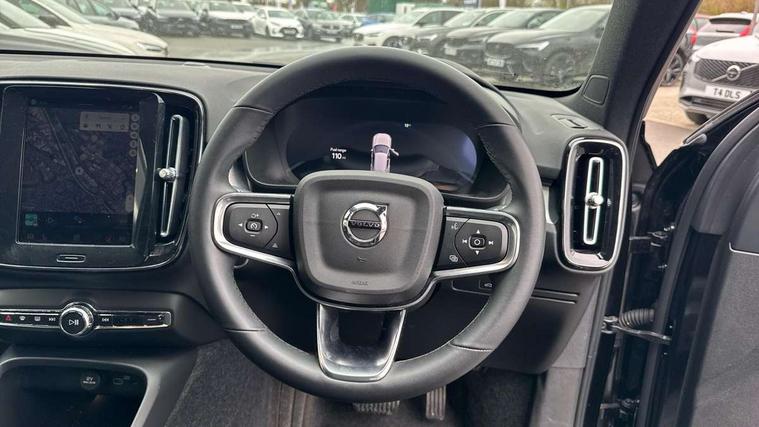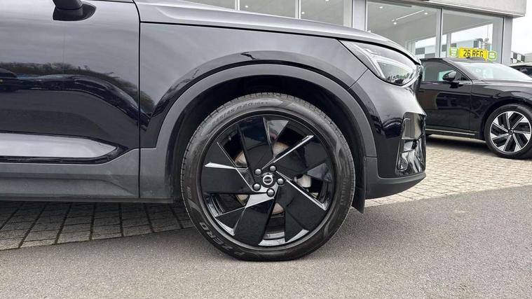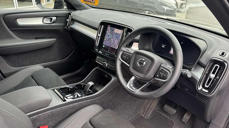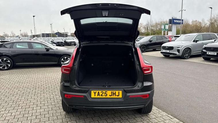 12.3" Progressive Driver Display, 9" centre console portrait touch screen, Adjustable steering wheel force, Android auto (Wired), Apple carplay (wired), Bluetooth handsfree system, Driver alert control, Driver assistance (pilot assist and adaptive cruise control), Driver awareness - Blind spot information system with steer assist, cross traffic alert with autobrake and rear collision warning and mitigation, E-call, Front and rear parking sensors, Front park assist, Google automotive services - Enabled entertainment apps, navigation with google maps, voice recognition with google assistant, Hands free power tailgate, Intelligent speed assistance, Lane keeping aid, Oncoming Lane Mitigation, Speed sensitive steering, Volvo cars services with app - Driving journal, engine remote start, remote door locking/unlocking and vehicle dashboard, Wireless/Inductive Mobile Phone Charging, Automatic transmission with start/stop and manual change functions, Dynamic chassis, DAB Digital radio, Steering wheel mounted remote controls, Adaptive brake lights with high level LED brake lights, Auto dimming feature for exterior door mirrors, Auto dimming interior mirror, Auto folding and heated power door mirrors, Automatic headlamp levelling, Automatic LED Headlights + Active high beam incorporating daytime running lights, Dark tinted windows - rear side windows and rear screen, Front aluminium tread plates, Front and rear electric windows, High gloss black front and rear skid plate, High gloss black front bumper deco, High gloss black front grille strikethrough and ironmark, High gloss black rear model, engine and volvo logo badges, High gloss black window trim, Home safe and approach lighting, Integrated roof rails in high gloss black, LED front fog lights, Puddle lights, Rain sensor with automatic windscreen wiper activation, Rear side wing doors, Rear wiper, Roof antenna, Roof spoiler, Visible VIN plate, 12V socket in front tunnel console and luggage compartment, 2-Zone electronic climate control with CleanZone air quality system and pollen filter, 3 seat bench in 2nd row, 3 Spoke tailored steering wheel with chrome trim, 60/40 versatile split folding rear seat, Centre console cupholders and storage, Charcoal carpet and floor mats, Charcoal headlining, Connect suede textile/microtech upholstery, Flexible load floor and grocery bag holder, Front headrests, Front seat cushion extensions, Glovebox bag hook, Heated front seats, Height adjustable passenger seat, Height/reach adjustable steering column, High gloss centre tunnel deco, High level illumination - Front door pocket, front side step (under door), tailgate, instrument panel, front door inlay, rear courtesy&reading lights, Integrated waste bin, Isofix attachments on outer rear seats, Load cover, Load protection net, Mid level illumination - Front footwell, luggage & glovebox compartment, front cabin courtesy & reading lights, illuminated vanity mirrors+ticket holder, Multi directional lumbar support for driver and passenger seat, Power driver seat with memory + exterior mirrors memory, Rear armrest with cupholders, Rear headrests, Single front passenger seat, Underfloor luggage compartment storage, Climate pack without heated front seats - XC40, 3x3 point rear seatbelts, City safety with steering support with Pedestrian + cyclist + front collision warning with full auto brake and rear auto brake, Driver and passenger airbags, Drivers knee airbag, Electronic parking brake with auto hold, First aid kit, Front and outer rear seatbelt reminder and pretensioners, Front seats SIPS airbags, Hill descent control - Off-road drive mode, Hill start assist, IC (Inflatable Curtains) - Full Length, Passenger airbag cut-off device, Power child locks on rear doors, Road sign information display, Run off Road Protection, SIPS (Side Impact Protection System), Slippery road and hazard light alert, Stability and Traction Control with Spin control, Engine Drag Control and Corner Traction Control, Tyre pressure monitoring system, Vehicle deceleration control with Anti-lock Brake System, Electronic Brake Distribution and Emergency Brake Assist, Warning triangle, WHIPS whiplash protection system - front, 2 x Key integrated remote control central locking including with deadlocking system and auto open/close windows, Anti-theft alarm including immobiliser/volume sensor + level sensor, Keyless drive includes keyless entry and keyless start, Locking wheel nuts, 20" 5 spoke high gloss black alloy wheels,