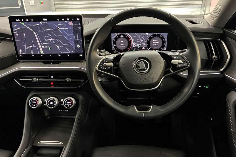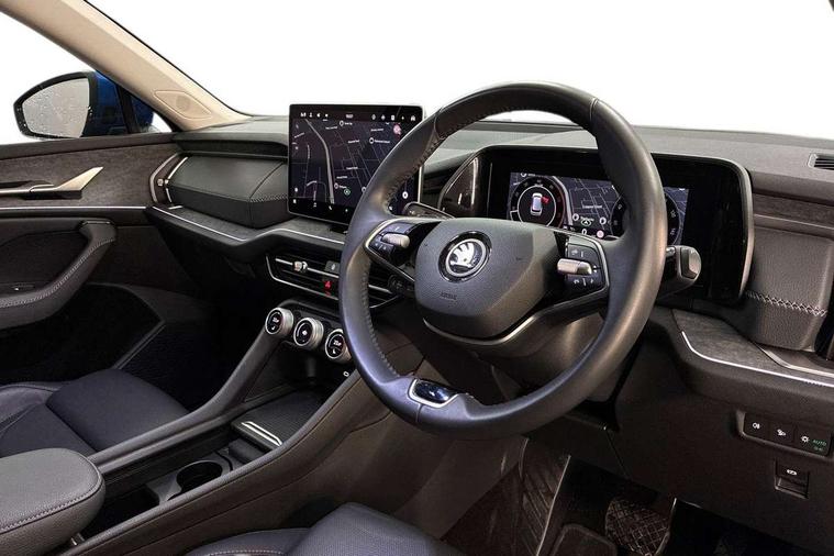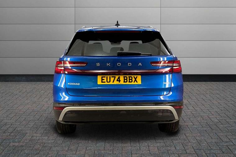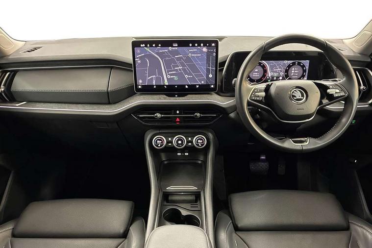 13" satellite navigation touchscreen display, Blind spot detection with door exit warning, Bluetooth system, ChatGPT functionality, Drive mode selector, Driver alert with fatigue sensor, Driver drowsiness alert system, Dry display cleaner, e call+, Front cross traffic assist, Lane assist, PAS, Rear traffic assist, Tailgate unlocking from outside, Traffic sign recognition, USB C Port x 2 in front centre console, Virtual Cockpit - 10.25" digital display, Voice control system, Wireless charging for two smartphones (15W) with cooling function, Wireless SmartLink for Apple CarPlay and Android Auto, Stop/start function, 2x USB-C in the rear, DAB Digital radio, Aero front windscreen wipers with intermittent function, Auto dimming rear view mirror, AWL (all weather lighting) and all weather light with cornering function, Black wheel arch surrounds, Body colour bumpers, Body colour door mirrors and handles, Cornering light and poor weather light, Electric folding /adjustable/separted heated/folding door mirrors, auto dimming with boarding sports and memory function, Electric front and rear windows, Exterior black decorative trims, Heat insulating glass in windshield, Heated rear window, Ice scraper in fuel tank cap, Invisible tailpipe, LED daytime running lights, LED rear fog light, LED third brake light in rear spoiler, Light assistant with automatic headlight control and coming home feature, Logo projection in door mirrors, Privacy glass, Rear side wing doors, Rear spoiler, Rear window wiper, Red decorative strip between rear LED lights, Safety reflectors on front and rear doors, Window control switches with black trim, Windscreen wipers with rain sensor, Without engine designation, 1.5l bottle holder points in all door, 12V socket in boot, 1x centre rear reading light, 2 seat bench in 3rd row, 3 configurable smart dials with 32mm coloured display, 3 seat bench in 2nd row, 4 foldable roof handles with rear coat hooks, Ambient interior lighting - Dashboard, front-door stowage compartments, front and rear door panels and footwell lighting, Automatic gear selector on steering wheel, Chrome interior door handles, Driver/front passenger reading lights, Fabric headlining, Fixed bench 40:60:40 split folding backrests, Front and rear floor mats, Front centre armrest with jumbo box storage compartment, cup holder and 12V socket, Front courtesy lights, Height adjustable front headrests, Isofix child seat fittings in outer middle row rear seats and front passenger with top tether, Manually adjustable steering column, Pollen filter, Rear centre armrest with cupholders, Rear seat boot backrest release, Retractable luggage compartment cover, Single front passenger seat, Sliding trunk cover, Small Bags on the inner sides of the front backrests, Storage pocket including mobile phone pockets on the backs of the front seats, Sunvisors with illuminated vanity mirrors, Three rear height adjustable headrests, Ticket holder on A Pillar, Tri zone climate control, Umbrella in door panel x1 made from sustainable materials, Upper and lower glovebox with card holder and coin compartment, USB C port by rear view mirror for charging only (15W), Exterior styling pack - Kodiaq, Auto door release and activation of warning lights in the event of an accident, Driver and front passenger airbag with knee airbag and front passenger airbag deactivation, Electric child locks, Electronic parking brake, ESC (incl. ABS+EMD+MSR+ASR+EDL+HBA+DSR+RBS+ESBS+MCB+TSA+XDS), Front assist with braking reaction to vehicles, pedestrians and cyclists, Front disc brakes, Fuel cut off safety device, Height adjustable front 3 point seatbelts + pretensioners, Hill hold control, Junction assist with automatic emergency braking, Rear disc brakes, Safety vest holder in door, Seat belt reminder for all seats, Three point rear seat belts, Two tone horn, Tyre pressure monitor, Anti-theft wheel bolts, Immobiliser, Remote central locking with 2 keys, Breakdown kit,