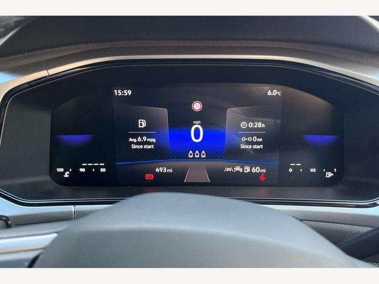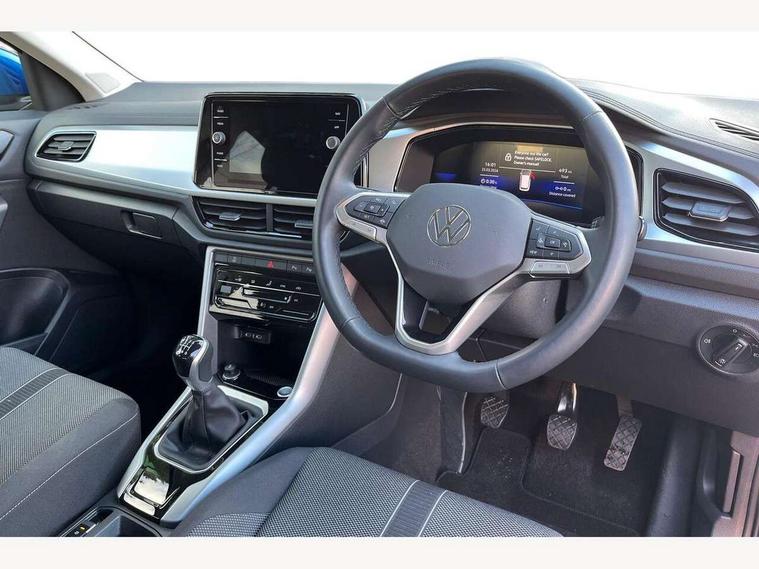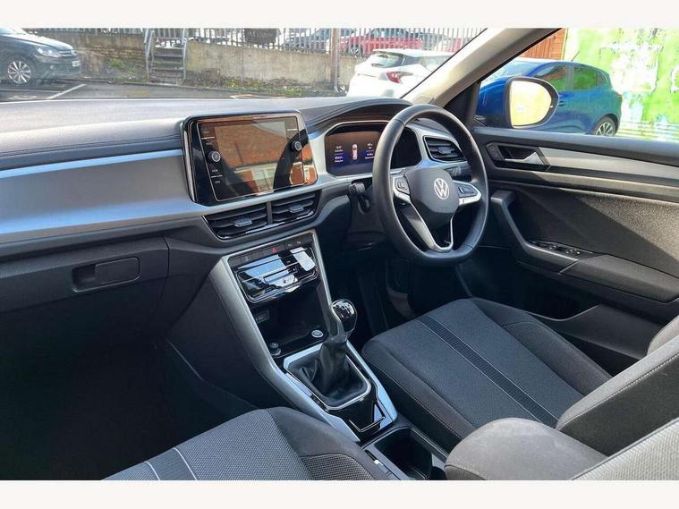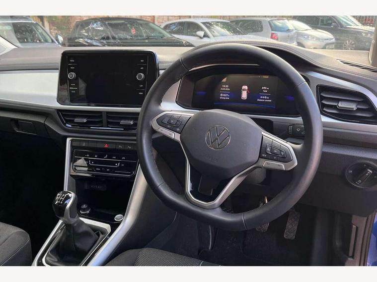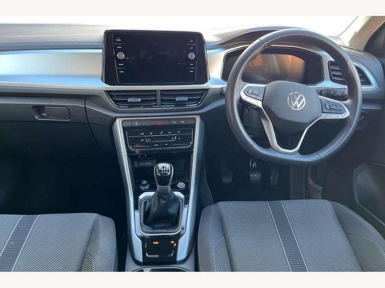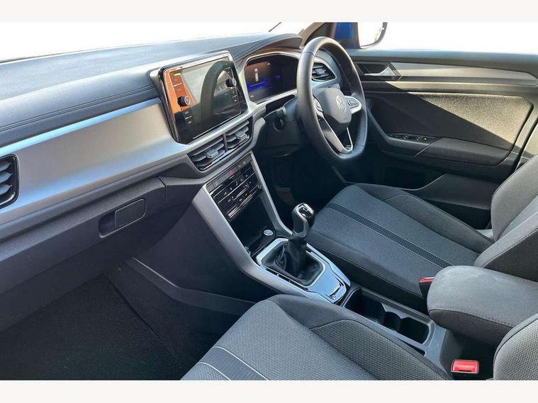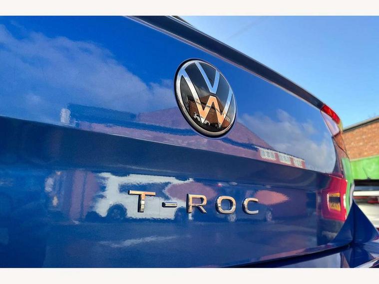 Advanced driver attention and drowsiness monitor, Dynamic road sign display, Emergency call service, Lane keeping system Lane Assist, Mobile phone interface, Modified key software - reduce switch off time for key status change to Long no motion, Online services, Park assist including front and rear parking sensors, Power assisted speed sensitive steering, Rear view camera, Service interval indicator, Tailgate/trunk lid release from outside, Think blue trainer driver tips and journey analysis, Warning sound and light for front seatbelts unfastened, Wireless app connect, Battery regeneration during braking, Front shock absorption, Rear shock absorption chassis with increased ride height, Start/stop function with battery regeneration, DAB Digital radio, Diversity antenna for FM reception, Front and rear 6 speakers, Music playback - MP3, WMA and AAC files, Premium USB cable in choice of either Apple or Android smartphone compatibility, SD card slot, Simultaneous pairing of 2 compatible mobile devices, Title and cover art display, We Connect and We Connect Plus functionality, Auto dimming interior rear view mirror, Automatic hazard lights activation under emergency braking, Automatic headlight control with LED separate daytime running lights with coming/leaving home function, Black roof rails, Body coloured bumpers and radiator grille with chrome trim and front fog lamps with chrome bezel, Body coloured exterior mirror housings and door handles, Electrically adjustable and heated door mirrors, Extended roof spoiler, Exterior mirrors aspherical on driver side, convex on front passenger side, External USB type C socket and charging sockets, Front windscreen wiper with intermittent wipe and 4 position delay, Heated rear window, LED 3rd brake light, LED rear combination lamps, LED rear number plate lights, Power windows with comfort operation and circuit breaker, Privacy glass for rear side windows and rear window, Rain sensor, Rear exhaust tailpipe, Rear fog light on one side and reversing lights on both sides, Rear side wing doors, Rear wash/wipe with intermittent wipe setting, Remote electrically foldable door mirrors, puddle lights and reverse activated passenger's door mirror, 12V power socket in centre console, 3 rear head restraints, 3 seat bench in 2nd row, 4 load lashing points in luggage compartment, Air care climatronic air conditoning system with active combination filter and 2-zone temperature control, Black stitching for floor mats, Ceramique roof liner, Cloth upholstery, Door and side trim panel in cloth, Drawer under drivers seat, Driver/front passenger seat height adjustment, Front centre armrest, Front comfort sports seats, Front cupholders x 2, Front reading light, Front seat back storage pockets, Glove compartment door with light, Instrument lighting, white adjustable panel illumination, Interior ambient lighting and surround lighting, Interior light delay, Isofix child seat preparation, Leather gearshift handle, Load-through provision with cup holder when folded down ('Unsplit rear seat bench, split folding backrest, with centre armrest), Luggage compartment lighting, Lumbar support for driver's and front passengers seat, Non-folding front passenger seat backrest, Single front passenger seat, Storage compartment in left and right luggage area, Storage compartment in rear doors, Storage compartments in driver and front passenger doors, Sunvisors with illuminated vanity mirrors, Variable boot floor, height adjustable and removable, Driver assistance pack without proactive passenger protection - T-Roc Life/Match, 3 point height adj front seatbelts + pretensioners, 3 point seatbelts in outer rear with ECE label, ABS, Child locks on rear doors, City emergency braking and pedestrian monitoring, Driver and front passenger airbag with front passenger airbag deactivation, Driver and front passenger safety-optimised head restraints, Drivers seatbelt reminder, Electronic parking brake, Electronic Stability Control (ESC) inc EDL (Electronic Differential Lock) and ASR (Traction Control), Front and rear passengers curtain airbag system including front side airbags, Front disc brakes, Hill start assist, Predictive pedestrian protection, Rear disc brakes, Two tone horn, Tyre pressure loss indicator, Volkswagen roadside assistance, Alarm with interior protection, Keyless locking and starting system keyless access with safelock, Pewter matt decorative inserts for intrument panel, centre console and door panels at the front, Trims for alloy wheels,