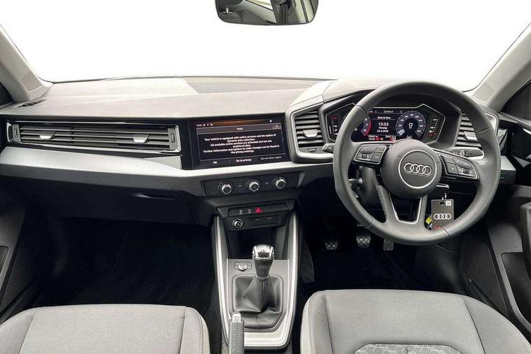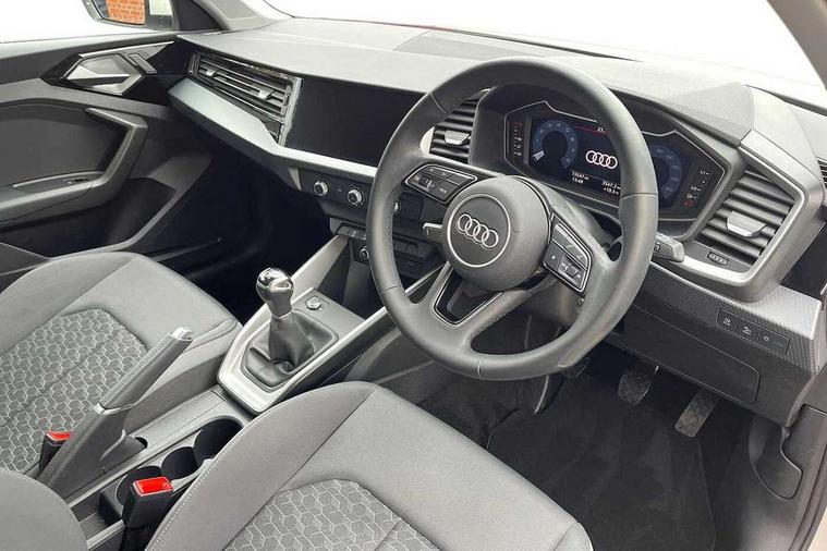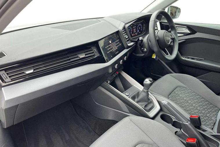10.25" Digital instrument cluster display classis style instrument dials + speed, odometer, time, outside temperature, telephone menu + fuel level warning, Audi smartphone interface with connect compatible smartphone via USB directly MMI display + Nav, music, third party apps controlled via MMI controller, Automatic start/stop system, Bluetooth interface, Cruise control, Driver's information system, Electromechanical power steering, Emergency e-call, Lane departure warning system, Rear parking sensor, Service interval indicator, Speed limiter, Voice control system, Washer fluid level indicator, Dynamic suspension, 2 x USB type C connection points, 6 passive loudspeakers, DAB Digital radio, MMI radio plus with 10.1" colour MMI display screen and MMI touch, Auto dimming rear view mirror, Body coloured bumpers, Body coloured door mirrors, Electric front and rear windows, Electrically adjustable, heated, folding door mirrors with integrated LED side indicator, Front side air inlets in grained matt black and C frame in anthracite black, Heat insulating glass windscreen and side windows, Heated rear windscreen, High level LED brake light, LED headlights with LED rear lights + dynamic rear indicators + headlight adjustment and high beam, turning light + LED daytime running lights, Radiator grille and rear diffuser in matt anthracite black, Radiator protective grille frame in matt aluminium silver, Rain and light sensors, Rear fog lights, Rear side wing doors, Rear wiper, Side front spoiler lips in grained matt black, 12V socket in centre console with two cup holders, 3 rear seats with headrests, 3 seat bench in 2nd row, 3 spoke leather multifunction plus steering wheel, 40:60 Split folding rear seat or folded fully, Black front and rear floor mats, Door sill trims with aluminium inlay, Driver and passenger seat with manual height adjust with forward and backwards adjustment, Front head restraints, Front passenger seat, Grey cloth headlining, Height and reach adjustable steering wheel, ISOFIX child seat mounting for front passenger and outer rear seats including top tether attachment point of outer rear seats, Leather gear knob with aluminium trim, Leather handbrake grip, Luggage compartment light with front and rear reading lights, Manual air conditioning, Manually adjustable lumbar support in front seats, Novum cloth upholstery with front sport seats, Luggage compartment pack - A1, 3x3 point rear seatbelts, Audi pre-sense front with pedestrain and cyclist recognition, Brake assist function, Driver and front passenger airbag with front side and head airbags, Electronic Stability Control including ABS, EBD, ASR and EDL, Front passenger airbag deactivation switch, Hill hold assist, Manual rear child locks, Seatbelt height adjustment for front seats, Seatbelt monitoring, Tyre pressure warning light, Warning triangle and first aid kit, Anti theft alarm, Anti theft wheel bolts and loose wheel warning, Immobiliser, Remote central locking with 2 foldaway keys, Aluminium trim for control switches, air vents and digital instrument cluster, Black dashboard, Silver grey accent areas including air vents, door handle recesses and centre console in diamond paint finish, Slate grey inlays polygon structure in fine paint finish,