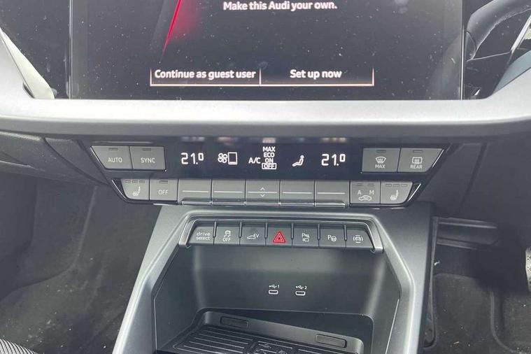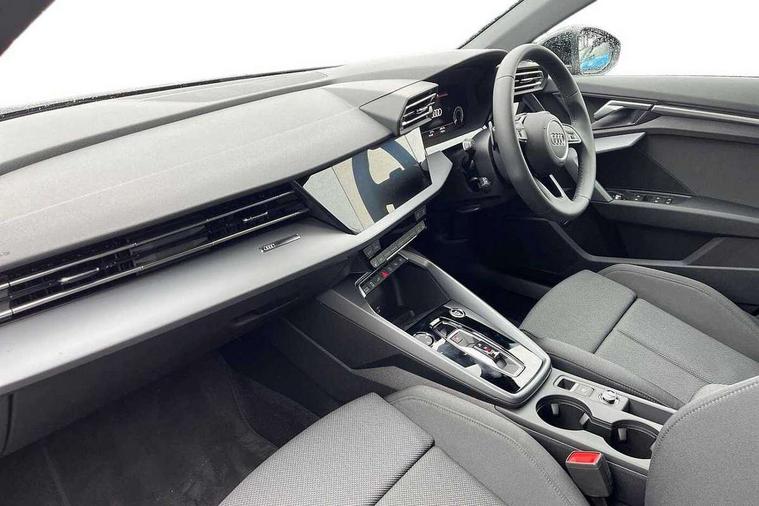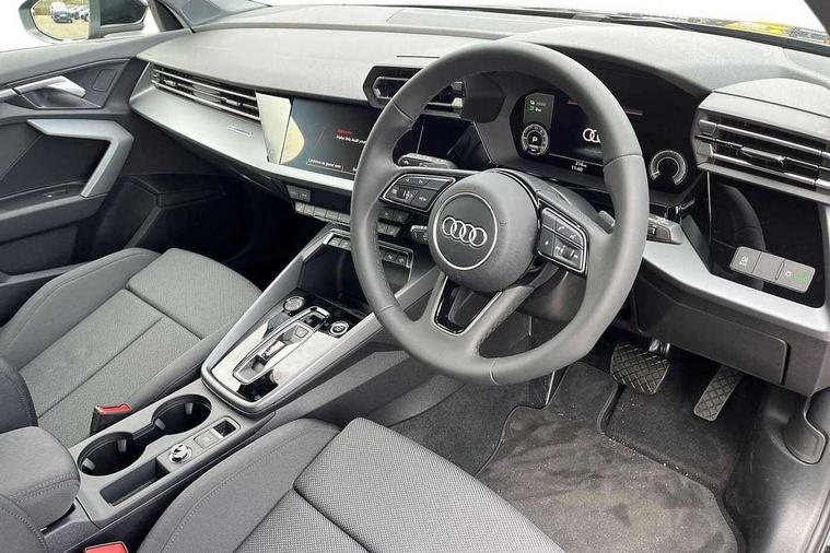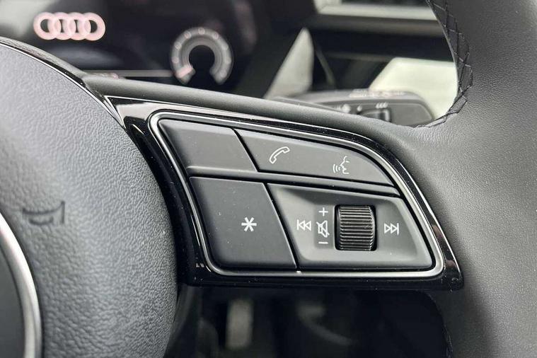 Adaptive cruise control (ACC), Adjustable speed limiter, Audi drive select (Auto, Comfort, Dynamic, Efficiency and Individual), Audi virtual cockpit plus - 12.3" full HD resolution dynamic digital instrument cluster, Automatic start/stop system with recuperation, Bluetooth interface, Camera based traffic sign recognition, Collision avoidance assistant, Driver attention and fatigue detection, e-Call (emergency call), Electromechanical power speed sensitive steering, Emergency assist, Intersection assist, Lane departure warning system, MMI Navigation Plus with high resolution 10.1" colour touch screen display, Park Assist with parking system Plus, Reversing camera, Service indicator, Smartphone interface with app store includes wireless Apple carplay, Android auto and Amazon alexa integration, Trip computer, Voice control system with natural language interaction, CCS socket for DC charging, Charging cable for public charging, mode 3 (type 2), 32 A, Standard suspension, Type 2 socket for AC charging, Audi Phonebox light with wireless charging, Audi sound system - 10 loudspeakers including centre loudspeaker and subwoofer, DAB Digital radio, USB ports with charging function in the rear, 3rd brake light, Acoustic glass windscreen, Aluminium window trim, Auto dimming frameless rear view mirror, Body colour exterior mirrors, Body colour roof spoiler, Electrically adjustable/heated/folding/auto dimming door mirrors with integrated LED indications + kerb view function for passenger side, Exterior model badging, Front electric windows, Front radiator grill in high gloss dark chrome, Front side air inlets in grained matt black with silver frame, Heat insulating glass windscreen, Invisible tailpipe, LED daytime running lights, LED headlights and halogen rear lights, Light and rain sensors, Rear diffuser and grill in grained matt black with silver frame, Rear electric windows, Rear side wing doors, Rear window, rear door windows and rear side windows in clear glass, Rear wiper, 12V socket and storage compartment in front centre console, 3 seat bench in 2nd row, 3 spoke leather multifunction steering wheel with gear shift paddles, 3-zone deluxe automatic air conditioning, 4 way electrically adjustable lumbar support for driver and front passenger, 60/40 split folding rear seat bench, Black front and rear floor mats, Convenience auxiliary air conditioning, Front and rear headrests, Front centre armrest, Front door sill trims with aluminium inlay, Heated front seats, Height and reach adjustable steering wheel, i-Size child seat mounting on the front passenger side and outer rear seats, i-Size and top tether on the outer rear seats, Manual boot compartment lid, Manually adjustable front seats, Routine cloth upholstery with front sports seats, Seat side bolsters, Single front passenger seat, Steel grey cloth headlining, Aluminium interior elements pack - A3, LED interior lighting pack -A3, 3x3 point rear seat belts, Acoustic vehicle alerting system, Driver and front passenger airbag with passenger airbag deactivation, Electronic Stabilisation Control (ESC) including ABS, ASR and EDL, First aid kit with warning triangle and 2 safety vests, Front side airbags with head airbags and interaction airbag, Hill hold assist, Pre-sense front with pedestrian and cyclist detection, Seatbelt monitoring, Tyre pressure loss indicator, Anti theft alarm, Anti-theft wheel bolts, Electronically operated child locks, Immobiliser, Black dashboard, Inlays in volcano grey fine paint finish, Tyre repair kit,