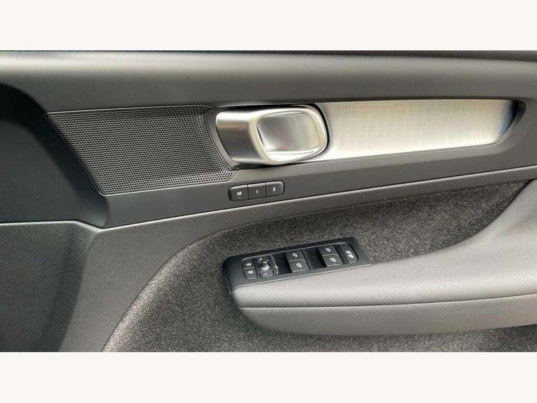12.3" Progressive Driver Display, 9" centre console portrait touch screen, Adjustable steering wheel force, Android auto (Wired), Apple carplay (wired), Bluetooth handsfree system, Driver alert control, Driver assistance (pilot assist and adaptive cruise control), Driver awareness - Blind spot information system with steer assist, cross traffic alert with autobrake and rear collision warning and mitigation, E-call, Front and rear parking sensors, Front park assist, Google automotive services - Enabled entertainment apps, navigation with google maps, voice recognition with google assistant, Hands free power tailgate, Intelligent speed assistance, Lane keeping aid, Oncoming Lane Mitigation, Speed sensitive steering, Volvo cars services with app - Driving journal, emergency and breakdown call, engine remote start, remote door locking/unlocking and vehicle dashboard, Wireless/Inductive Mobile Phone Charging, Automatic transmission with start/stop and manual change functions, Dynamic chassis, DAB Digital radio, Steering wheel mounted remote controls, Adaptive brake lights with high level LED brake lights, Auto dimming feature for exterior door mirrors, Auto dimming interior mirror, Auto folding and heated power door mirrors, Automatic headlamp levelling, Automatic LED Headlights + Active high beam incorporating daytime running lights, Front aluminium tread plates, Front and rear electric windows, High gloss black front and rear skid plate, High gloss black front bumper deco, High gloss black mesh front grille with high gloss black surround, High gloss black window trim, Home safe and approach lighting, Integrated roof rails in high gloss black, LED front fog lights, Puddle lights, Rain sensor with automatic windscreen wiper activation, Rear side wing doors, Rear wiper, Roof antenna, Roof spoiler, Visible VIN plate, 12V socket in front tunnel console and luggage compartment, 2-Zone electronic climate control with CleanZone air quality system and pollen filter, 3 seat bench in 2nd row, 3 Spoke tailored steering wheel with chrome trim, 60/40 versatile split folding rear seat, Centre console cupholders and storage, Charcoal carpet and floor mats, Charcoal headlining, Connect suede textile/microtech upholstery, Flexible load floor and grocery bag holder, Front headrests, Front seat cushion extensions, Glovebox bag hook, Heated front seats, Height adjustable passenger seat, Height/reach adjustable steering column, High gloss centre tunnel deco, High level illumination - Front door pocket, front side step (under door), tailgate, instrument panel, front door inlay, rear courtesy&reading lights, Integrated waste bin, Isofix attachments on outer rear seats, Load cover, Load protection net, Mid level illumination - Front footwell, luggage & glovebox compartment, front cabin courtesy & reading lights, illuminated vanity mirrors+ticket holder, Multi directional lumbar support for driver and passenger seat, Power driver seat with memory + exterior mirrors memory, Rear armrest with cupholders, Rear headrests, Single front passenger seat, Underfloor luggage compartment storage, Climate pack without heated front seats - XC40, 3x3 point rear seatbelts, City safety with steering support with Pedestrian + cyclist + front collision warning with full auto brake and rear auto brake, Driver and passenger airbags, Drivers knee airbag, Electronic parking brake with auto hold, First aid kit, Front and outer rear seatbelt reminder and pretensioners, Front seats SIPS airbags, Hill descent control - Off-road drive mode, Hill start assist, IC (Inflatable Curtains) - Full Length, Passenger airbag cut-off device, Power child locks on rear doors, Road sign information display, Run off Road Protection, SIPS (Side Impact Protection System), Slippery road and hazard light alert, Stability and Traction Control with Spin control, Engine Drag Control and Corner Traction Control, Tyre pressure monitoring system, Vehicle deceleration control with Anti-lock Brake System, Electronic Brake Distribution and Emergency Brake Assist, Warning triangle, WHIPS whiplash protection system - front, 2 x Key integrated remote control central locking including with deadlocking system and auto open/close windows, Anti-theft alarm including immobiliser/volume sensor + level sensor, Keyless drive includes keyless entry and keyless start, Locking wheel nuts,