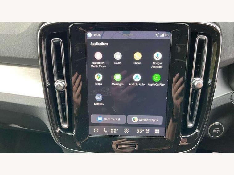 12.3" Progressive Driver Display, 9" centre console portrait touch screen, Adjustable steering wheel force, Android auto (Wired), Apple carplay (wired), Bluetooth handsfree system, Driver alert control, Driver assistance (pilot assist and adaptive cruise control), Driver awareness - Blind spot information system with steer assist, cross traffic alert with autobrake and rear collision warning and mitigation, E-call, Front and rear parking sensors, Front park assist, Google automotive services - Enabled entertainment apps, navigation with google maps, voice recognition with google assistant, Hands free power tailgate, Intelligent speed assistance, Lane keeping aid, Oncoming Lane Mitigation, Speed sensitive steering, Volvo cars services with app - Driving journal, emergency and breakdown call, engine remote start, remote door locking/unlocking and vehicle dashboard, Wireless/Inductive Mobile Phone Charging, Automatic transmission with start/stop and manual change functions, Dynamic chassis, DAB Digital radio, Steering wheel mounted remote controls, Adaptive brake lights with high level LED brake lights, Auto dimming feature for exterior door mirrors, Auto dimming interior mirror, Auto folding and heated power door mirrors, Automatic headlamp levelling, Automatic LED Headlights + Active high beam incorporating daytime running lights, Front aluminium tread plates, Front and rear electric windows, High gloss black front and rear skid plate, High gloss black front bumper deco, High gloss black mesh front grille with high gloss black surround, High gloss black window trim, Home safe and approach lighting, Integrated roof rails in high gloss black, LED front fog lights, Puddle lights, Rain sensor with automatic windscreen wiper activation, Rear side wing doors, Rear wiper, Roof antenna, Roof spoiler, Visible VIN plate, 12V socket in front tunnel console and luggage compartment, 2-Zone electronic climate control with CleanZone air quality system and pollen filter, 3 seat bench in 2nd row, 3 Spoke tailored steering wheel with chrome trim, 60/40 versatile split folding rear seat, Centre console cupholders and storage, Charcoal carpet and floor mats, Charcoal headlining, Connect suede textile/microtech upholstery, Flexible load floor and grocery bag holder, Front headrests, Front seat cushion extensions, Glovebox bag hook, Heated front seats, Height adjustable passenger seat, Height/reach adjustable steering column, High gloss centre tunnel deco, High level illumination - Front door pocket, front side step (under door), tailgate, instrument panel, front door inlay, rear courtesy&reading lights, Integrated waste bin, Isofix attachments on outer rear seats, Load cover, Load protection net, Mid level illumination - Front footwell, luggage & glovebox compartment, front cabin courtesy & reading lights, illuminated vanity mirrors+ticket holder, Multi directional lumbar support for driver and passenger seat, Power driver seat with memory + exterior mirrors memory, Rear armrest with cupholders, Rear headrests, Single front passenger seat, Underfloor luggage compartment storage, Climate pack without heated front seats - XC40, 3x3 point rear seatbelts, City safety with steering support with Pedestrian + cyclist + front collision warning with full auto brake and rear auto brake, Driver and passenger airbags, Drivers knee airbag, Electronic parking brake with auto hold, First aid kit, Front and outer rear seatbelt reminder and pretensioners, Front seats SIPS airbags, Hill descent control - Off-road drive mode, Hill start assist, IC (Inflatable Curtains) - Full Length, Passenger airbag cut-off device, Power child locks on rear doors, Road sign information display, Run off Road Protection, SIPS (Side Impact Protection System), Slippery road and hazard light alert, Stability and Traction Control with Spin control, Engine Drag Control and Corner Traction Control, Tyre pressure monitoring system, Vehicle deceleration control with Anti-lock Brake System, Electronic Brake Distribution and Emergency Brake Assist, Warning triangle, WHIPS whiplash protection system - front, 2 x Key integrated remote control central locking including with deadlocking system and auto open/close windows, Anti-theft alarm including immobiliser/volume sensor + level sensor, Keyless drive includes keyless entry and keyless start, Locking wheel nuts,