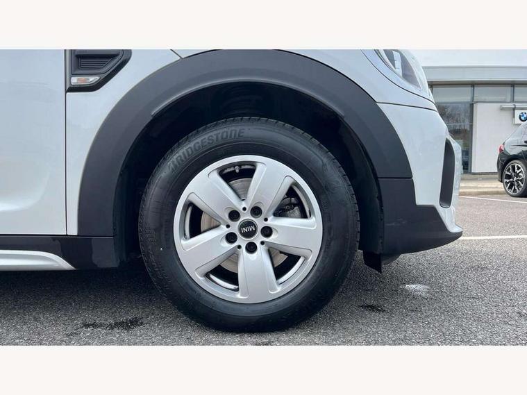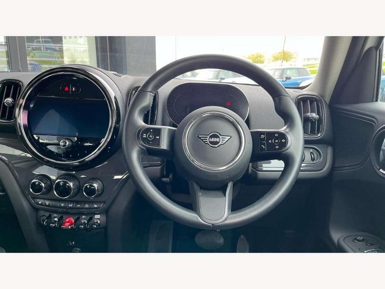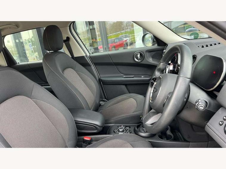 Active Guard incl speed limiting and lane departure functions with auto steering, and front collision warning with brake intervention, Automatic start/stop function with brake energy recuperation, Compatible mobile phone bluetooth with audio streaming, Cruise control with brake assist, Electro-mechanical speed dependant steering assistance, Instrument cluster, Mini E-call, On board computer, Rear parking distance control, 51 Litre fuel tank, Double Vanos system, Fully variable valve control, High precision injection, Performance Control, Steptronic transmission with double clutch, FM tuner and DAB digital radio, 3rd brake light, Body colour fuel filler cap, Day time driving lights, Door sill strips, Dynamic brake lights, Electric windows, Heated rear window, Heated windscreen washer jets, LED fog lights, LED Headlights, Left exhaust tailpipe with chrome finisher, Model logo, Model logo on Tailgate, Radiator grille, Rain sensor with auto headlights, Rear fog lights, Rear side wing doors, Rear window wiper, Side scuttle panel with integrated indicator, Split rear doors, Sun/heat protection glass, White indicator lenses, 12V socket in centre console, 3 seat bench in 2nd row, 3 spoke sport leather steering wheel + limiter function and audio controls, 360L luggage compartment capacity, 4 lashing eyes in luggage compartment, 40:20:40 split folding rear seats, Chrome interior highlights, Colour line - Carbon black, Cupholders, English handbook, Floor mats, Front headrests, Glove compartment, Headliner with grab handles and clothes hooks, Height and length steering column adjustment, Interior lighting with 12 basic colours selectable via toggle switch in roof, Isofix rear child seat preparation, Leather gearshift lever and handbrake gaiters, LED reading lights, vanity mirror lights, front foot well light and spotlight on front seats, Manual air conditioning, Mechanical seat adjustment, driver seat height adjust, forward/back and front seats backrest, Multifunction steering wheel, Passenger seat height adjuster, Rear headrests, Single front passenger seat, Storage compartments in doors, Sunvisors with vanity mirrors, Excitement pack - Countryman, Navigation pack - Countryman, 2 tone horn, 3 point seatbelts on all seats, 6 Airbags - front, side, head and seat belt tensioners, Anti-lock braking system (ABS), DSC - Dynamic Stability Control, Electronic handbrake, Front and rear disc brakes, Hill start assist, Manual rear child locks, Tyre pressure monitoring system, Alarm system with tilt sensor, monitoring doors, bonnet interior and tailgate, Auto drive away locking, Deadlocking function, Electronic vehicle immobiliser, Locking wheel bolts, Start/stop toggle with keyless go, Tool kit,
