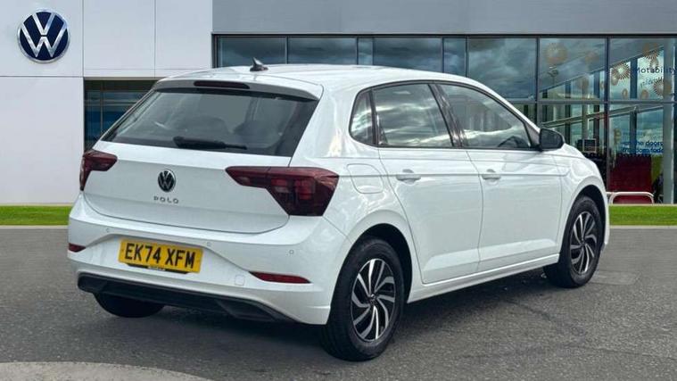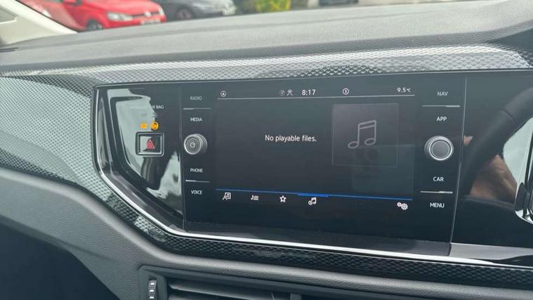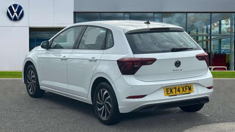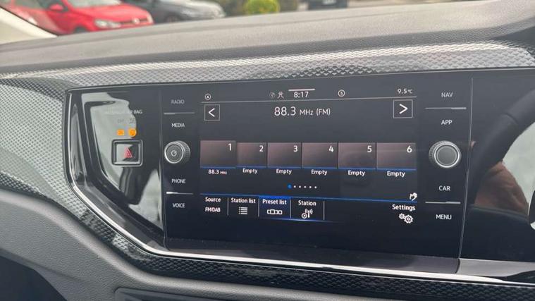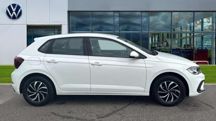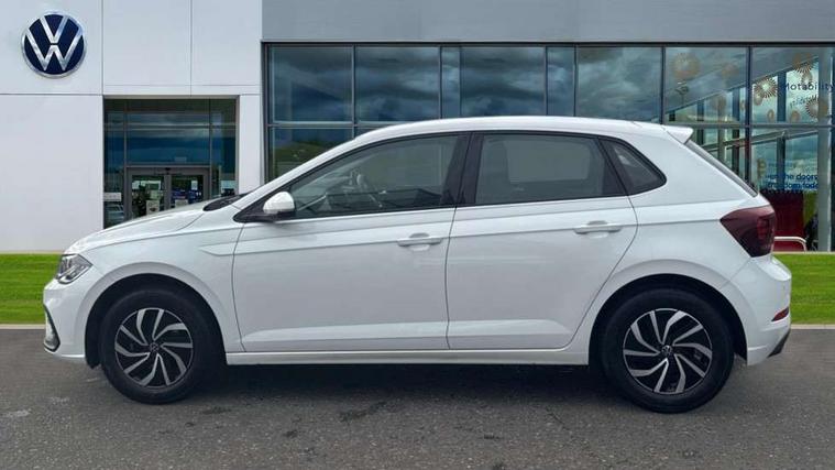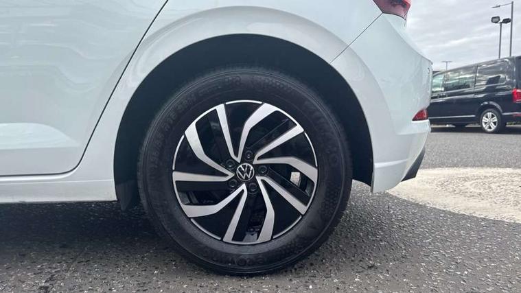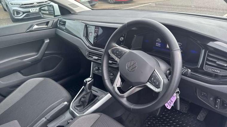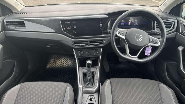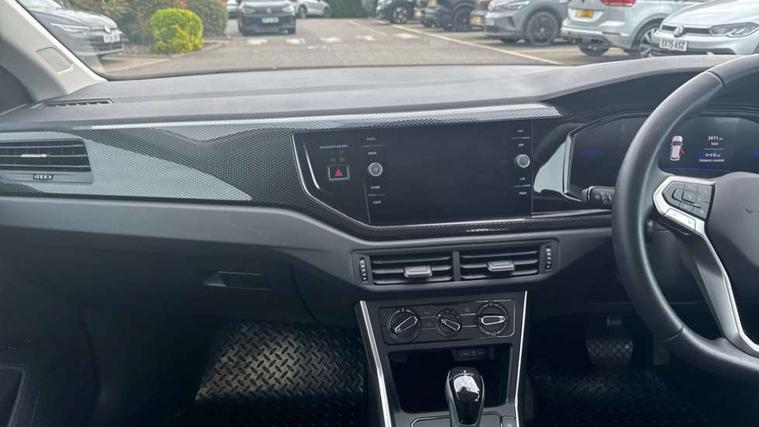 Adaptive cruise control with follow-to-stop and speed limiter, Advanced driver attention and drowsiness monitor, Bluetooth mobile phone interface, Dynamic road sign display, Emergency call service, Multifunction camera, Power assisted speed sensitive steering, Preparation for navigation system with media and internet package, Preparation for We connect and We connect plus, Speedo and rev counter, electronic odometer, trip, service interval display and exterior temperature gauge, Standard rear axle, Travel Assist - Lane keeping system and traffic jam assist, Travel assist including emergency assist, Trip computer, Warning signal and warning light for front and rear seatbelts not fastened, Washer fluid level indicator, Wireless app connect, Front wheel drive, Rear shock absorpion, Start-stop system with battery regeneration (recuperation - energy recovery during braking), DAB Digital radio, Diversity antenna for FM reception, Front and rear 6 speakers, Automatic dimming interior rear view mirror, Automatic headlight control with LED separate daytime running lights with coming/leaving home function, Body colour bumpers with chrome inserts, Body colour door handles, Body colour door mirrors, Electric front windows, Engine badge deletion, Headlight range adjustment, Heat insulating and laminated safety glass windshield, Heat insulating darkened glass in side and rear windows, LED Headlights, LED rear combination lamps, Power folding adjustable/heated exterior mirrors and front passenger exterior mirror lowering function, Rain sensor, Rear electric windows, Rear fog light, Rear side wing doors, Rear windscreen washer and wiper with interval delay, Third brake light, 12V power socket in centre console, 2 front and 2 rear reading lights with switch off delay and dimmer, 2 USB-C ports in the front, 2 USB-C charging sockets on the center console in the rear, 3 rear head restraints, 60/40 split folding rear seat and rear seat bench not split, Ceramique roof lining, Chrome plated radiator grille inserts, air vent surrounds and light switch surrounds, Door and side trim panel, Driver and front passenger seat height adjustment, Driver/passenger sunvisors with illuminated vanity mirrors, Front centre armrest, Front seat backrest storage pockets, Front standard seats, Handbrake lever handle in leather, Hartley/Thomas cloth upholstery, Headliner in recycled material, Isofix child seat preparation easy-fit (for two outer rear seats, and front passenger seat) compatible with I-size, Leather trimmed gear knob, Luggage compartment cover, Luggage compartment lighting, Removable luggage compartment floor, Single front passenger seat, Standard climatic zones, Standard pedal cluster, Three spoke leather wrapped multifunction steering wheel with shifting paddles, Light and vision pack - Polo, 3 point height adj front seatbelts + pretensioners, 3x3 point rear seatbelts, ABS, Driver and front passenger airbag with front passenger airbag deactivation, Drivers and front passengers safety optimised head restraints, ESC (Electronic stability control) + EDL (Electronic Differntial lock) and ASR (Traction control), Extended and predictive pedestrian/ cyclist protection, Front assist with autonomous emergency braking (for Adaptive Cruise Control ACC up to 130 mph), Front curtain and side airbags with center airbag, Front disc brakes, Hill hold control, Manual child lock in rear doors, Rear drum brakes, Single tone horn, Tyre pressure loss indicator, Alarm with interior protection, Anti-theft alarm system with interior monitoring, backup horn, and towing protection, Anti-theft wheel bolts, Electronic engine immobiliser, Lava stone black gloss/matt decorative inserts in dash and front door panels, Low rolling resistance tyres,