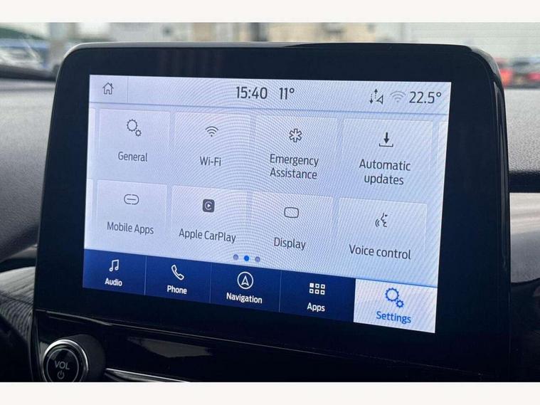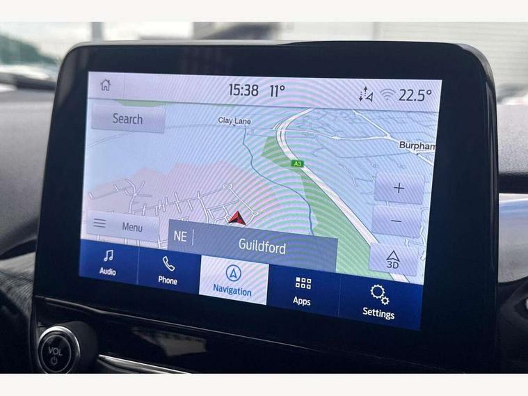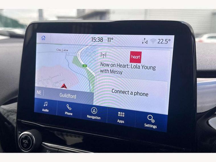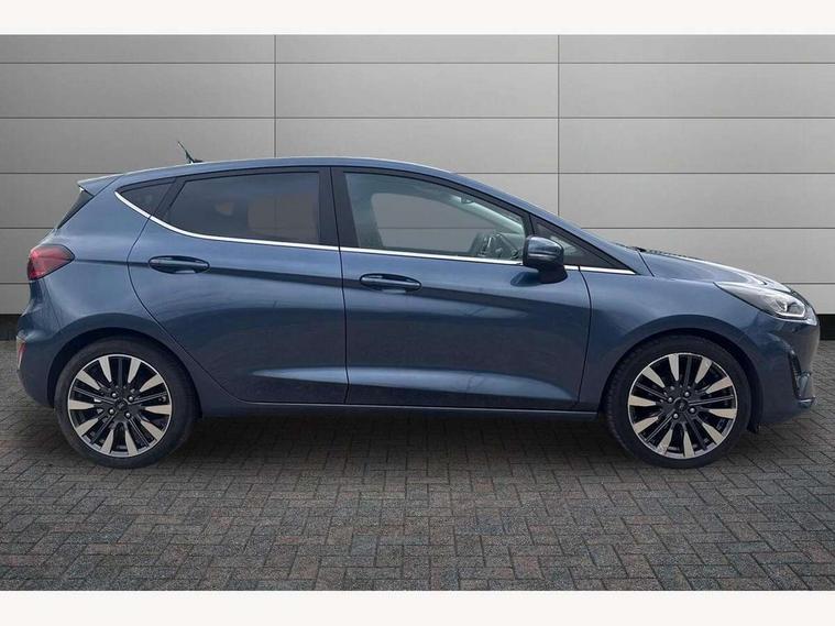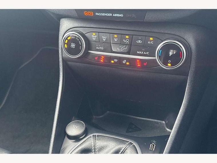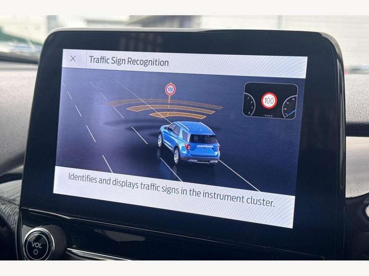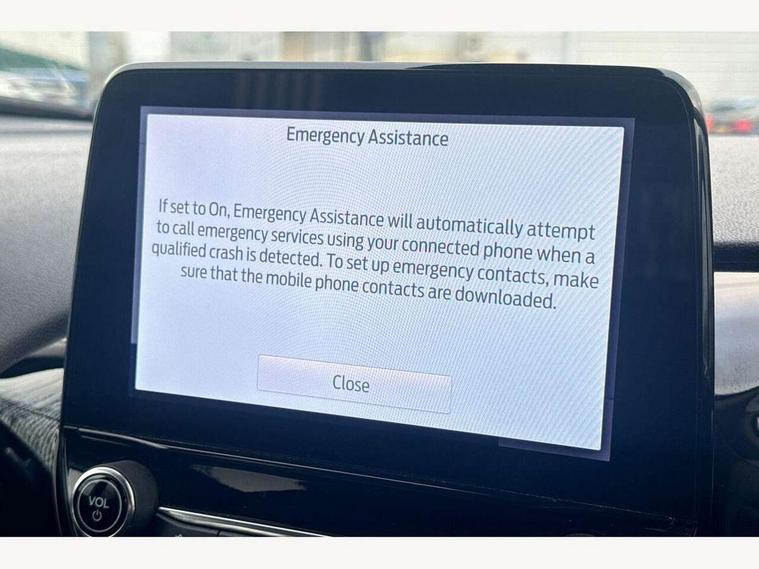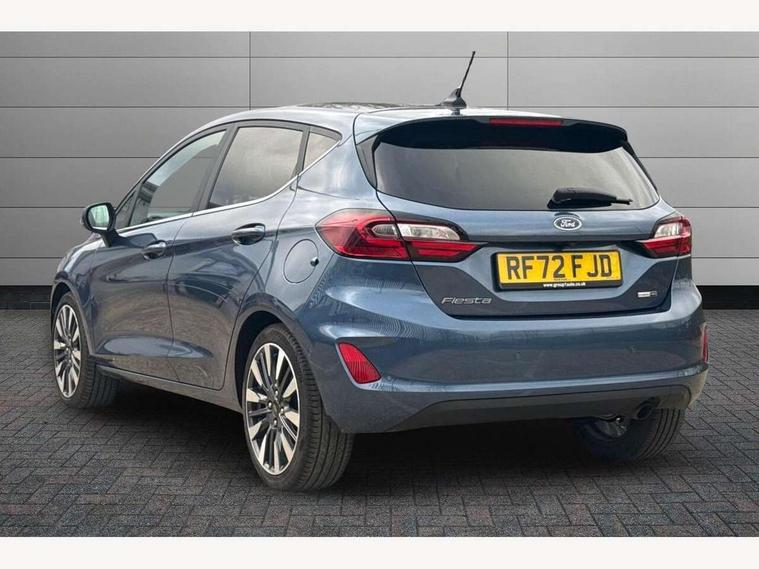 4.2" TFT instrument cluster screen, Bluetooth system, Electric power steering, Ford easy fuel, Rear parking distance sensors, Selectable drive modes (Normal, Sport, Track), Traffic sign recognition, Trip computer, 2 USB ports, Auxiliary input socket, B&O Premium audio system with 8" touchscreen, 10 speakers, 360 degree sound system, Ford SYNC 3 navigation system and Ford pass connect, DAB Digital radio, Steering wheel mounted controls, Auto high beam, Body colour bumpers, Body colour door handles, Body colour rear spoiler, Body coloured electrically operated and heated door mirrors with side indicators, Chrome beltline trim, Chrome front grille, Chrome lower window surround, Cornering front fog lights, Electric front windows/one touch facility, Electric rear windows, LED Night signature to rear lights, Power foldable door mirrors with puddle lights, Quickclear heated windscreen, Rain sensing wipers and auto dimming rear view mirror, Rear privacy glass, Rear wiper, 3 spoke leather trimmed steering wheel with audio control, 60/40 split folding rear seat, Adjustable head restraints, Boot carpet, Centre console with opening armrest, 2x cupholders, 12v and USB, Chrome inner door handles, Drivers and Passenger lumbar support, EATC - Electronic Auto Temperature control, Footwell illumination, Front floor mats in velour, Front map reading lights, Front seat and rear pockets, Height adjustable passenger seat, Illuminated glovebox, Leather gaiter, LED ambient lighting, Load area light, Luxury woven headliner, Manual 4-way driver seat adjust, Overhead console with sunglasses holder, Pollen filter, Rake/reach adjustable steering wheel, Sensico partial premium upholstery, Sensico wrapped steering wheel, NCAP Pack - Fiesta, 3 point seatbelts on all rear seats, ABS+EBA, Curtain airbags, Driver and passenger airbags, Drivers knee airbag, Electronic stability control with hill start assist, Front passenger airbag deactivation, Front side airbags, Seatbelt warning, Two tone horn, Tyre pressure monitoring system, Ford keyfree system with Keyless entry and keyless start, MyKey system, Remote central locking & engine immobiliser, Thatcham Cat.1 alarm, 17" 8 spoke alloy wheels,