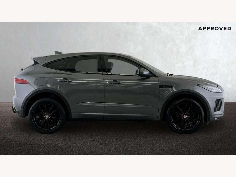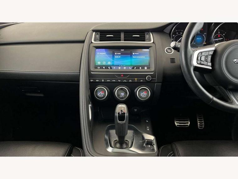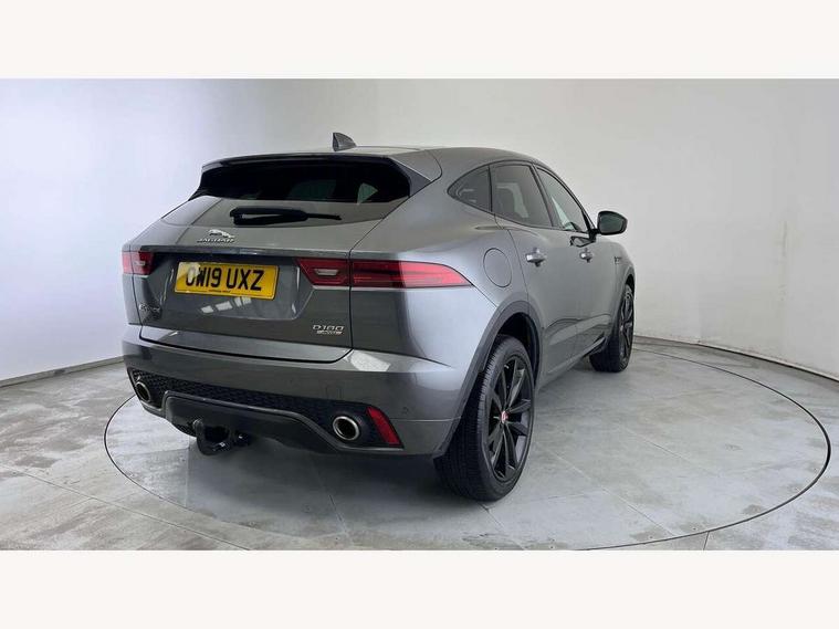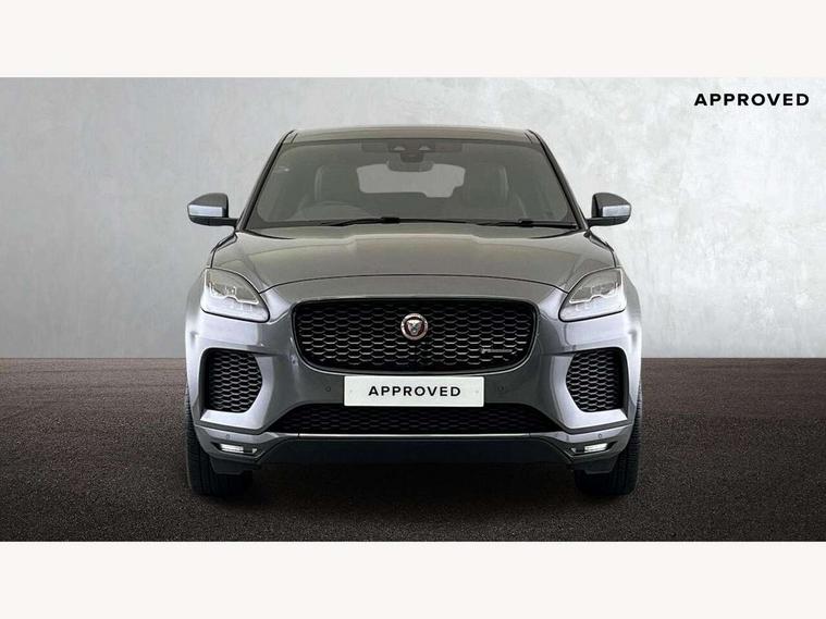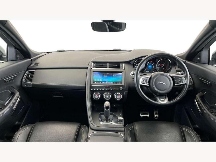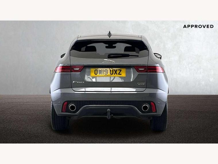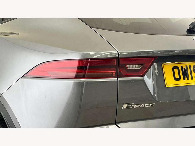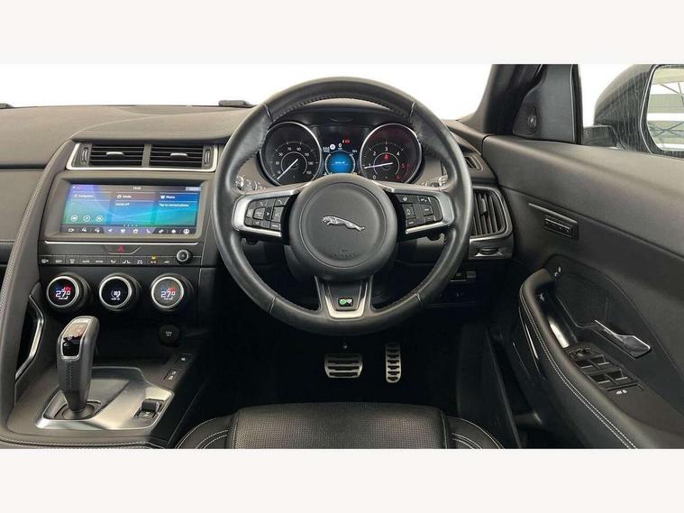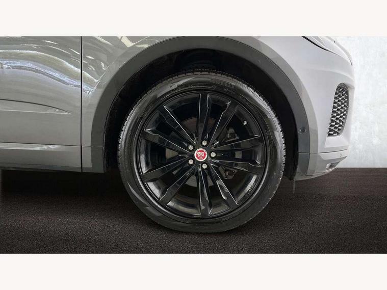 Driver condition monitor, Eco driving style assistant, Electric power assisted steering, InControl remote, InControl Touch navigation pro, Lane keep assist, Misfuelling protection device, Outside temperature gauge, Push button starter, Speed proportional steering, Start up sequence with movement in dials and lighting, Traffic sign recognition with adaptive speed limiter, Trip computer, Voice control system, Diesel particulate filter, Efficient Driveline, Passive suspension, AM/FM DVD MP3 radio, Bluetooth connectivity including audio streaming, DAB Digital radio, Dynamic volume control, 3 flash lane change indicators, Approach Illumination, Auto dimming rear view mirror, Auto high beam assist, Automatic headlights, Body colour side cladding, Electric folding auto dimming and heated door mirrors with memory + Signature approach lamp, Electric front/rear windows with one touch/auto up/down, Front fog lights, Heated front windscreen, Heated rear window with timer, Heated washer jets, Jaguar script and leaper, R Dynamic badge, R Dynamic body colour bumpers, Rain sensor windscreen wipers, Rear fog lights, Tailgate/boot lid spoiler, Twin tailpipes with finishers, 12V power socket in rear, 2nd row 60/40 split/fold, 2nd row air vents, 3 seat bench in 2nd row, 4 Load area hooks, Black gearshift paddles, Bright metal pedals, Centre armrest console, Centre headrest in row 2, Elasticated loadspace side strap, ISOFIX on outer rear seats, JaguarDrive selector, LED lighting in overhead console, Loadspace cover, Loadspace lamp, Passive front headrests, R branded leather steering wheel, Storage net in luggage compartment, Sunvisors with illuminated vanity mirrors, Tie down hooks in luggage area, Twin front cupholders, Two zone climate control, Connect pro pack - E-Pace, Park pro pack - E-Pace, Smartphone pack - E-Pace, 3x3 point rear seatbelts, ABS, All surface progress control (ASPC), Customer configurable autolock, DSC - Dynamic Stability Control, Electronic brake force distribution, Electronic parking brake, Emergency brake assist, Front airbags with passenger seat occupant detector, Front and rear curtain airbags, Front and rear seatbelt reminder, Front side airbags, Hill start assist, Low friction launch, Power child locks, Torque vectoring brake, Tyre pressure monitoring system, Intrusion sensor and alarm, Locking wheel nuts,