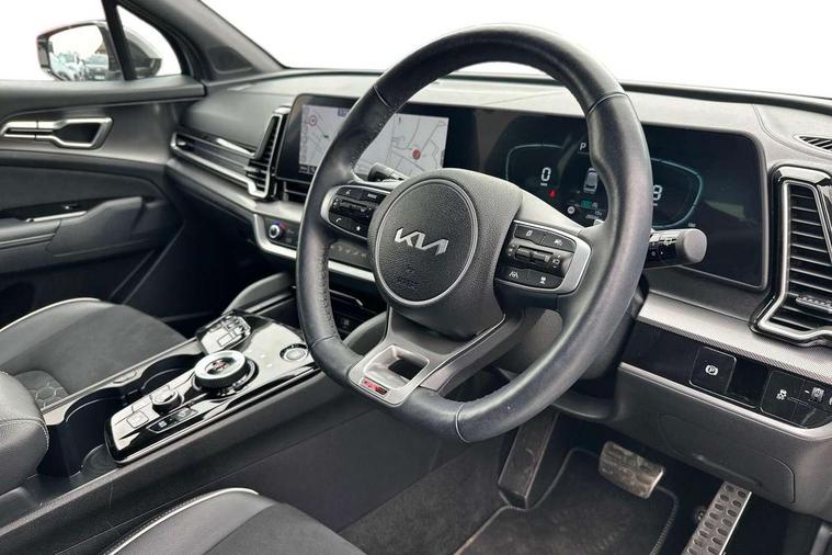 12.3" Display with navigation, 4.2" supervision colour cluster display, Apple car play/Android Auto with voice control, Drive mode selector, E-call, Forward collision avoidance assist (FCA) - city/pedestrian/cyclist/junction covering, Front and rear parking sensors, Highway Driving Assist (HDA), Intelligent speed limit assist, Kia Connect (UVO), Lane Following Assist (LFA), Lane keep assist, Low washer fluid warning, Rear view monitor, Reversing camera system integrated into centre fascia screen, Smart cruise control with stop and go functionality, Speed sensitive power steering, Trip computer, Windscreen washer level indicator, Intelligent Stop and Go, 6 speaker audio system, Bluetooth audio streaming, DAB Radio with MP3, Rear USB port, Steering wheel mounted audio controls, USB C type charging ports on centre console, USB C type charging ports on side of front seats, USB port for connection of a media device, All round electric windows with drivers and front passenger auto up/down function, Automatic headlight control system, Automatic window defogger, Backlite glass heated with timer, Body colour and black bumper with silver accents, Body colour exterior door handles, Body colour radiator upper garnish and door garnish, Electrically adjustable/heated/folding door mirrors with LED indicators, Front and rear chrome skid plates, Gloss black door mirrors, Gloss black radiator grille, Gloss black side sill and wheel arch body mouldings, Glossy black roof rack, High beam assist, Interior electrochromic mirror, LED daytime running lights, LED front fog lamps, LED headlamps (low and high beam - MFR type), LED High mounted stop light, LED rear combination lamp, Rain sensing wipers with aero blades, Rear fog lamp, Rear privacy glass, Rear side wing doors, Rear spoiler, Rear wiper, Satin finished beltline, Silver coloured inserts to bumpers, Tinted rear glass, Trailer stability assist, 12V power socket in front centre fascia and luggage compartment, 2nd row personal lamps, 3 seat bench in 2nd row, 3 x passenger assist grips, 40/20/40 split folding rear seat, All-round height adjustable headrests, Black headlining, Centre console storage box, Cupholders in rear armrest, D-Shaped sports leather steering wheel and perforated inserts with GT-Line logo, Door courtesy lamps, Drink holder at centre armrest, Driver and front passenger side sunvisors with illuminated vanity mirrors, Driver's seat manual height adjust, Drivers seat power lumbar support, Front and rear door storage, Front seat and rear pockets, Front/rear centre armrests, Gear shift indicator, Glovebox illumination, Heated front seats, Heated steering wheel, Interior door lock/unlock function, ISOFIX Child seat top tethers and anchor fixings outer rear seats, Luggage area light, Luggage area load cover, Luggage net with hooks, Metal paint interior door handles, Overhead console lamp, Paddle shift controls, Rear cabin light, Rear coat hooks, Single front passenger seat, Sports pedals, Suede leather upholstery, Three zone climate control, Tilt/telescopic adjustable steering wheel, Ventilation ducts to rear compartment, Active front headrests, All round 3-point seatbelts, Anti-lock braking system (ABS), Dual front side airbags, Dual horn, Electronic parking brake, Electronic stability control with downhill brake control, Front passenger airbag cut-off switch, Front seatbelt pretensioners + load limiters, Height adjustable front seatbelts, Hill start assist control (HAC), Impact sensing auto door unlocking, Multi collision brake assist, Rear door child safety locks, Rear seat alert system, Traction control, Twin curtain airbags, Twin front airbags, Tyre pressure monitoring system, Advanced anti-theft system including immobiliser and alarm, Door deadlocks, Engine Start/Stop Button with Smart Entry System, Locking wheel nuts, Speed sensitive auto door locking, Visible vehicle identification number, Aluminium pattern finish centre fascia and door garnish, 19" GT-Line alloy wheels, Tyre mobility kit,