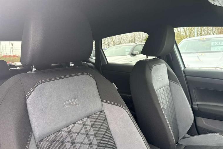 Adaptive cruise control with follow-to-stop and speed limiter, Advanced driver attention and drowsiness monitor, Bluetooth mobile phone interface, Digital Cockpit Pro with 10.25" Display, Dynamic road sign display, Emergency call service, Multifunction camera, Power assisted speed sensitive steering, Preparation for We connect and We connect plus, Speedo and rev counter, electronic odometer, trip, service interval display and fuel gauge, Standard rear axle, Travel Assist - Lane keeping system and traffic jam assist, Travel assist including emergency assist, Trip computer, Warning signal and warning light for front and rear seatbelts not fastened, Washer fluid level indicator, Wireless app connect, Front wheel drive, Rear shock absorpion, Start-stop system with battery regeneration (recuperation - energy recovery during braking), DAB Digital radio, Diversity antenna for FM reception, Front and rear 6 speakers, Body colour bumpers, Body colour door handles, Electric front windows, Front scuff plates with R-Line logo, Heat insulating glass windscreen, Power folding adjustable/heated exterior mirrors and front passenger exterior mirror lowering function, Rear electric windows, Rear fog light, Rear side wing doors, Rear windscreen washer and wiper with interval delay, Third brake light, 12V power socket in centre console, 2 USB-C ports in the front, 2 USB-C charging sockets on the center console in the rear, 3 rear head restraints, 60/40 split folding rear seat and rear seat bench not split, Air care climatronic air conditoning system with active combination filter and 2-zone temperature control, Black roof lining, Carpet mats, front and rear, Chrome plated radiator grille inserts, air vent surrounds and light switch surrounds, Door and side trim panel, Driver and front passenger seat height adjustment, Driver/passenger sunvisors with illuminated vanity mirrors, Front centre armrest, Front footwell illumination, Front seat backrest storage pockets, Front sports comfort seats, Handbrake lever handle in leather, Headliner in recycled material, Isofix child seat preparation easy-fit (for two outer rear seats, and front passenger seat) compatible with I-size, Karoso artvelours cloth upholstery, Leather trimmed gear knob, LED interior light with switch off delay and dimmer, 2 reading lights front and rear, Luggage compartment cover, Luggage compartment floor, Luggage compartment lighting, Lumbar adjustment for front seats, Single front passenger seat, Stainless steel pedals, Standard pedal cluster, Three spoke leather wrapped multifunction steering wheel with shifting paddles, Light and sight pack - Polo R-Line/Black Edition, 3 point height adj front seatbelts + pretensioners, 3x3 point rear seatbelts, ABS, Driver and front passenger airbag with front passenger airbag deactivation, Drivers and front passengers safety optimised head restraints, ESC (Electronic stability control) + EDL (Electronic Differntial lock) and ASR (Traction control), Extended and predictive pedestrian/ cyclist protection, Front curtain and side airbags with center airbag, Front/rear disc brakes, Hill hold control, Manual child lock in rear doors, Single tone horn, Tyre pressure loss indicator, Alarm with interior protection, Anti-theft alarm system with interior monitoring, backup horn, and towing protection, Anti-theft wheel bolts, Electronic engine immobiliser, Chrome applications on rotary light, mirror adjustment, window regulator switches, outlet with frame in black, Dark grey anodised matt decorative inserts in dash and front door panels, 16" Coventry alloy wheels, Low rolling resistance tyres,