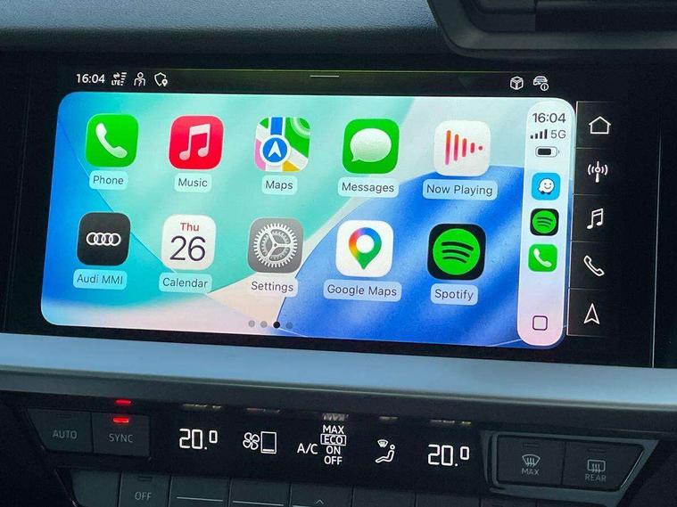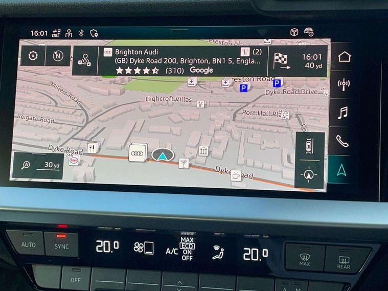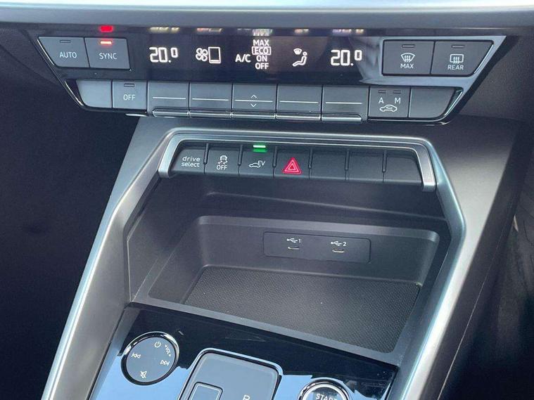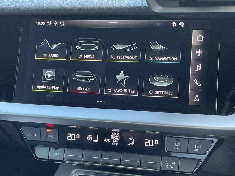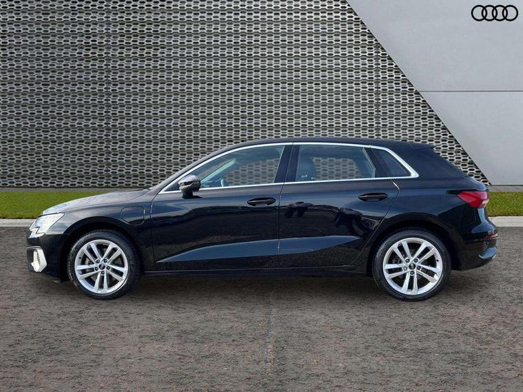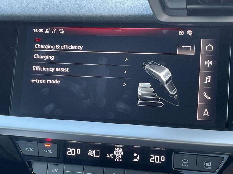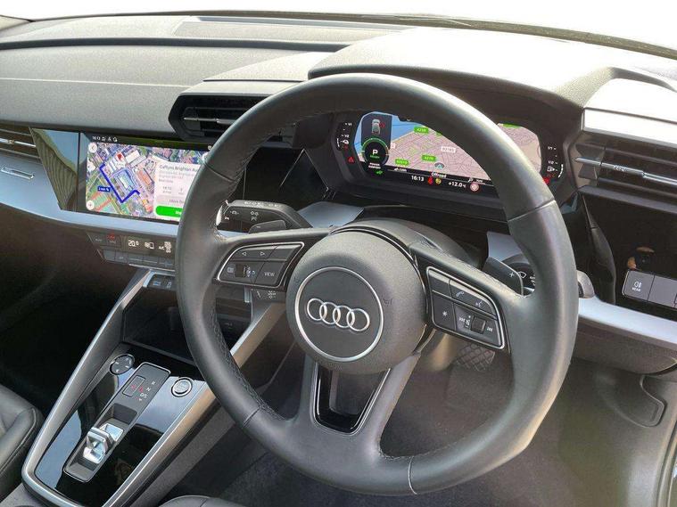 Audi drive select (Auto, Comfort, Dynamic, Efficiency and Individual), Audi smartphone interface, Audi Virtual Cockpit - 10.25" digital and colour instrument cluster, Automatic start/stop system with recuperation, Bluetooth interface, Camera based traffic sign recognition, Collision avoidance assistant, e-Call (emergency call), Electromechanical power speed sensitive steering, Lane departure warning system, MMI Navigation Plus with high resolution 10.1" colour touch screen display, Service indicator, Trip computer, Voice control system with natural language interaction, 3 pin 10 amp domestic charging cable, 3.6 kw On-board charger, Standard suspension, Type 2 mode 3 32 amp charging cable, Type 2 socket for AC charging, 2xUSB-C connection with data and charging functions, 6 passive loudspeakers, DAB Digital radio, 3rd brake light, Acoustic glass windscreen, Aluminium window trim, Auto dimming frameless rear view mirror, Body colour exterior mirrors, Body colour roof spoiler, Electrically adjustable/heated/folding/auto dimming door mirrors with integrated LED indications + kerb view function for passenger side, Front electric windows, LED daytime running lights, LED headlights and halogen rear lights, Light and rain sensors, Rear electric windows, Rear side wing doors, Rear window, rear door windows and rear side windows in clear glass, Rear wiper, 12V socket and storage compartment in front centre console, 3 seat bench in 2nd row, 3 spoke leather multifunction steering wheel with paddle shift, 4 way electrically adjustable lumbar support for driver and front passenger, 60/40 split folding rear seat bench, Dual zone electronic climate control, Front and rear headrests, Front centre armrest, Front door sill trims with aluminium inlay, Front/rear floor mats, Height and reach adjustable steering wheel, Interior lighting - Front and rear roof module including reading lights, glove compartment light and right hand side, Interior lighting - glove compartment light and right hand side, Luggage compartment floor covering, Manual boot compartment lid, Manually adjustable front seats, Routine cloth upholstery with front sports seats, Seat side bolsters, Single front passenger seat, Steel grey cloth headlining, Aluminium interior elements pack - A3 Sportback, LED interior lighting pack - A3 Sportback, Sport styling pack - A3 Sportback, 3x3 point rear seat belts, Driver and front passenger airbag with passenger airbag deactivation, Electronic Stabilisation Control (ESC) including ABS, ASR and EDL, First aid kit with warning triangle and 2 safety vests, Front side airbags with head airbags and interaction airbag, Pre-sense front with pedestrian and cyclist detection, Seatbelt monitoring, Tyre pressure loss indicator, Anti theft alarm, Anti-theft wheel bolts, Electronically operated child locks, Immobiliser, Remote control central locking, Inlays with silk effect paint in platinum grey, Tool kit, Tyre repair kit,