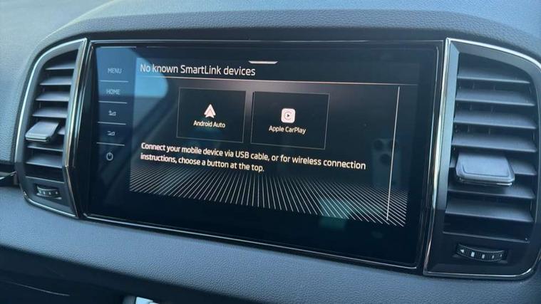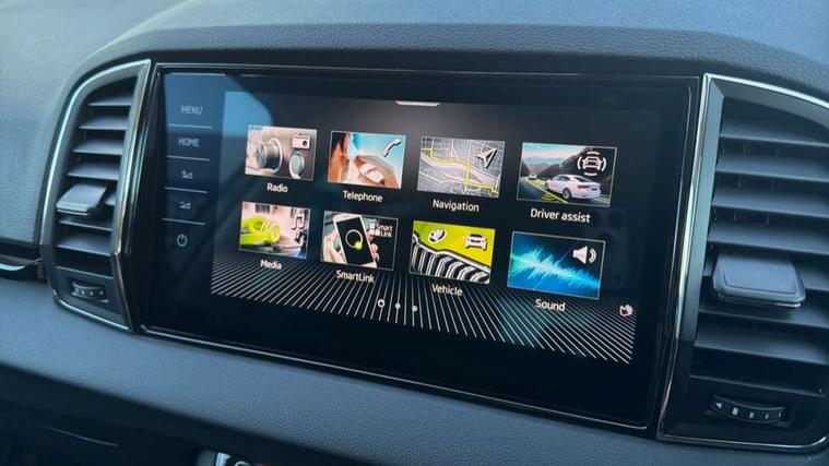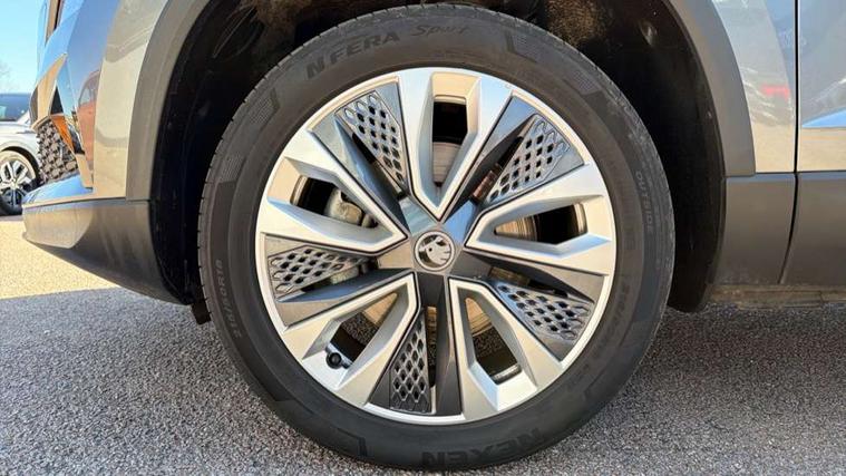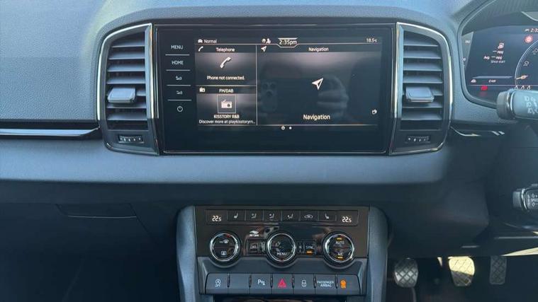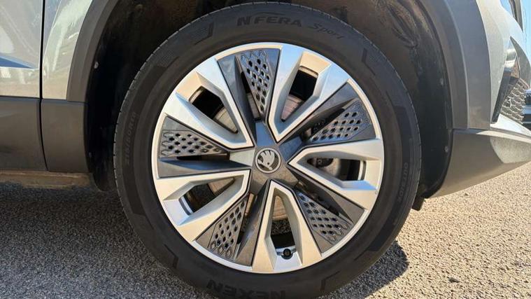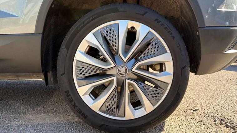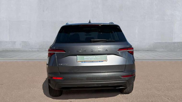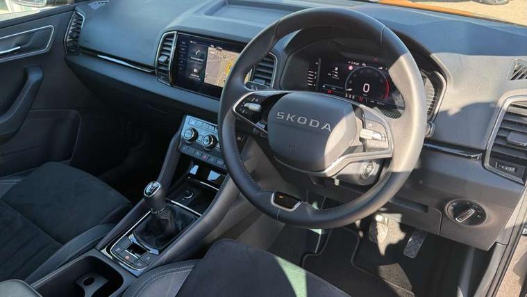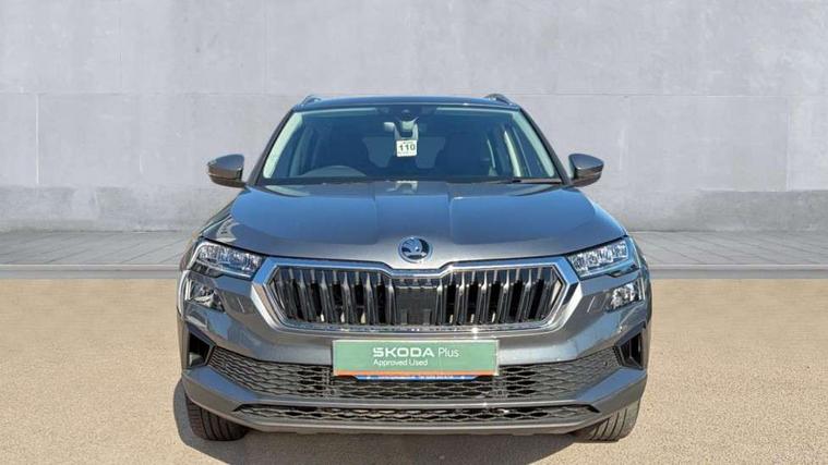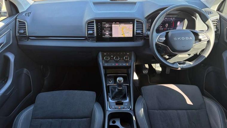 Advanced driver attention and drowsiness monitor, Drive Mode Selection including ECO function, Electro-mechanical PAS, Emergency services call system, Outside temperature gauge, Sensor for driver assistance systems, Service interval indicator, SmartLink wireless for Apple and wired for Android, Start/stop system with regenerative braking, Traffic sign recognition, USB C Port x 2 in front centre console, Virtual Cockpit - 10.25" digital display, Virtual pedal with electrically operated boot door, Wireless smartphone charging, DAB radio with Bluetooth, USB connection, Acoustic glass, Aero front windscreen wipers with intermittent function, Auto dimming rear view mirror with light and rain sensors, Black electric window control buttons, Body colour door mirrors and handles, Electric front and rear windows with child proof lock, Extended rear roof spoiler, Heated rear windscreen, LED daytime running lights, LED rear lights with high functionality welcome effect and dynamic indicators, Light assistant (coming/leaving home/tunnel light), Plastic scuff plates in door apertures, Privacy glass, Rear side wing doors, Rear window wiper with washer system and intermittent control, Safety reflectors on front doors, Third brake light, Unique dark chrome design logo on alloy wheels, 1.5 litre bottle holders in driver and front passenger door panels, 12V socket in boot, 12v socket in front centre armrest with storage compartment and rear air vents, 2 spoke leather heated multifunction steering wheel, 2 x Tablet holder, 3 rear height adjustable headrests, 3 seat bench in 2nd row, 4 foldable roof handles with rear coat hooks, Black floor carpet, Cargo elements in boot, Chrome inner door handles, Foldable hooks in the boot, Front head restraints, Height adjustable front three point seats belts with tensioners, Height/reach adjust steering wheel, Ice scraper, Illuminated glovebox, Illuminated luggage compartment, Interior noise suppression, Isofix child seat preparation for front passenger seat, Isofix child seat preparation outer rear, Manual lumbar support for front seats, Pearl grey interior ceiling, Pen holder, Pollen filter, Rear boot cover, Rear package tray, Rear reading lights, Rubbish bin door, Safety vest holder, Single front passenger seat, Skoda lettering on steering wheel, Storage box in upper central dashboard closed, Sunvisors with illuminated vanity mirrors, Textile floor mats, Ticket holder, Columbus pack - Karoq, Design Pack - Karoq, Non Smokers pack, Parking pack - Karoq, Automatic door unlocking in case of crash, Automatic fuel cut off in case of crash, Driver airbag, Electronic parking brake with auto hold function, Emergency rear braking signal, ESC (incl. ABS+MSR+ASR+EDS+HBA+DSR+RBS+MKB), Front side airbags, Head airbags, Hill hold control, Knee airbags, Passenger airbag with switch-off function, Pedestrian monitor, Seatbelt reminder signalisation and pretensioner for all seats, Three point seatbelts rear, Two tone horn, Tyre pressure monitor, Alarm with interior monitoring, back up horn and tilt sensor with safe function, Electronic engine immobiliser, Keyless entry and start/stop, Remote central locking with 2 remote folding keys, Black centre console, Chrome framed air vents, Satin black dashboard, Anti-theft wheel bolts protection, Breakdown and tool kit,