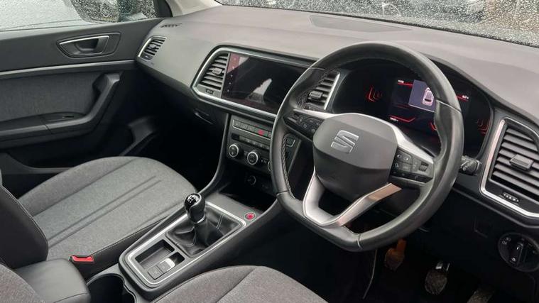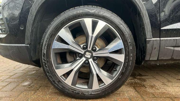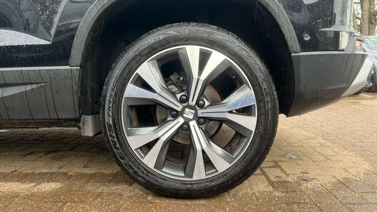 8" Digital cockpit, Colour multi-function on board computer display, Cruise control system with speed limiter, E-call, Outside temperature gauge, PAS, Self parking functionality (includes front and rear parking sensors), Start/stop system, Tailgate, Trip computer, Wireless full link smartphone integration, Wireless phone charger, Steering wheel mounted audio/phone controls, Black wheel arch surrounds, Body colour bumpers, Chrome front grille frame, Chrome roof rails, Chrome side window trim, Daytime running lights, Door mirrors with welcome light silhouette, Dynamic headlight range control with self adjusting whilst driving, Electric adjustable/heated/folding door mirrors, Front and rear electric windows, Full LED headlamps with lens and LED front fog lamps with cornering function, LED rear tail lights with dynamic indicators, Rear fog lights, Rear side wing doors, Rear wash/wipe, Simulated exhaust pipes, Third brake light, Variable front intermittent wipers, 12V socket in front, 3 seat bench in 2nd row, 60/40 split folding rear seat, Cloth upholstery with front comfort seats, Drawer under right front seat, Dual zone climate control, Front and rear head restraints, Front centre armrest, Front seat back storage pockets, Height adjustable driver and passenger seat with lumbar adjustment, ISOFIX points in outer rear seats with top tether anchorage points, Leather steering wheel and gear knob, Rear armrest and easy back seat release mechanism from boot, Single front passenger seat, Interior lighting pack - Ateca, Navigation system pack with DAB - Ateca, 3x3 point rear seatbelts, ABS, Traction control system (TCS), Electronic stability control (ESC) and Electronic differential lock system (XDS), Airbags - Driver and front passenger airbag with deactivation, front side, two curtain and driver's knee airbags, Electric parking brake with auto hold function, Front and rear seatbelt reminder, Front assist with autonomous emergency braking, Hill hold control, Manual rear child locks, Single tone horn, Tiredness recognition system, Traction control, Tyre pressure monitoring system, Alarm, Keyless entry, Locking wheel bolts, Remote central locking, Chrome interior detailing, 18" Performance machined alloy wheels 36/2 in nuclear grey,