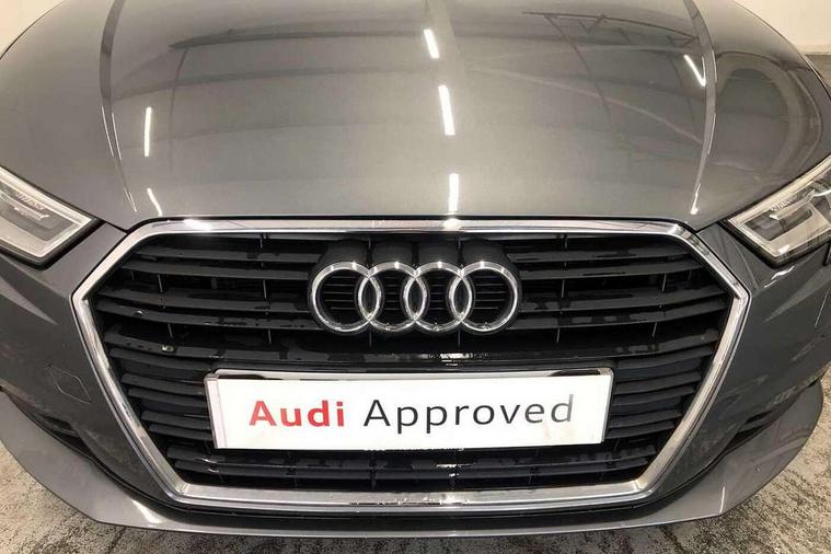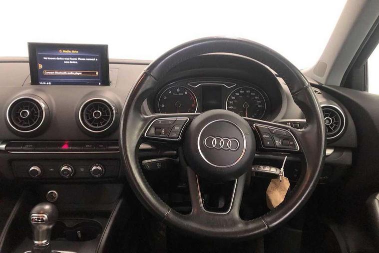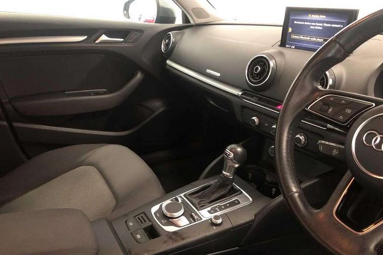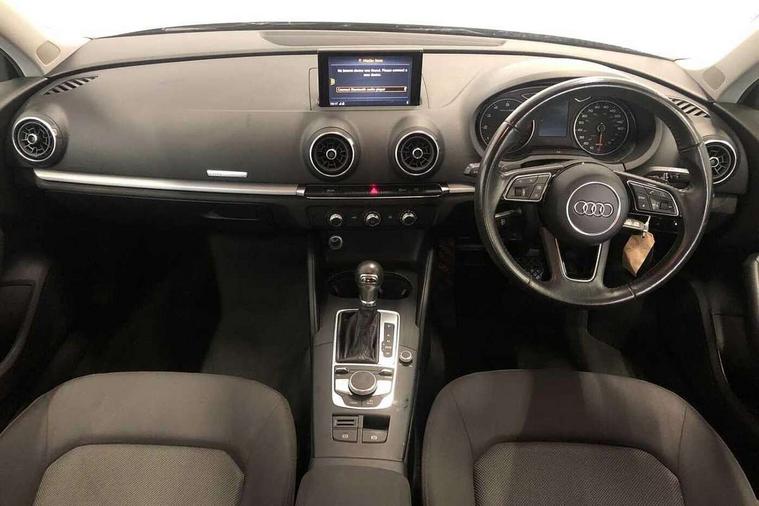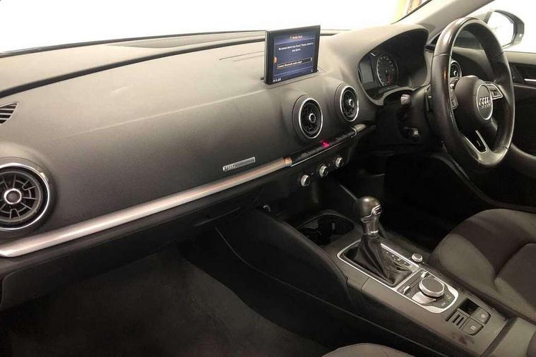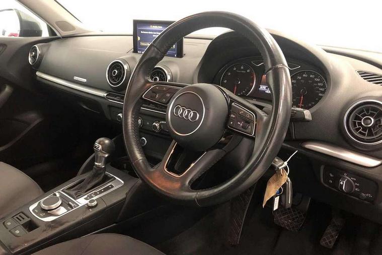 Audi connect, Audi smartphone interface, Colour driver's information system display, Electro-mechanical PAS, HDD satellite navigation system radio single CD/DVD player MMI control system, Mobile telephone preparation - bluetooth interface, Service interval indicator, Speed limit display, Voice control system, Dynamic suspension, 2 USB ports, Audi music interface, Auxiliary input socket, CD player, DAB Digital radio, MMI radio plus with 7" colour MMI screen and MMI controller, Auto dimming rear view mirror with light and rain sensors, Body colour bumpers, Body colour door mirrors with integral indicators, Body colour roof spoiler, Electric front windows, Electric operated/heated door mirrors, Electric rear windows, Heated windscreen washer jets, LED daytime running lights, Matt black radiator grille, Rear wiper, Single exhaust tailpipe, Xenon headlights, 3 adjustable rear headrests, 3 spoke leather multifunction sports steering wheel, 4 lashing points to secure luggage, Adjustable front armrest, Front and rear interior lights with delay, Front passenger seat isofix location point, Front/rear floor mats, Height/depth adjustable steering column, Illuminated glovebox, ISOFIX child seat preparation+airbag deactivation, Jack and tool kit, Rock grey headlining, Steering wheel gearshift paddles, Storage compartment in centre console, Storage compartment under front seats, Storage compartments in doors, Non smoking pack - A3, 3 point seatbelts on all seats, ABS/EBD, Active bonnet, Active front headrests, ASR, Curtain airbags, Driver and passenger side airbags, Driver/Front Passenger airbags, Drivers knee airbag, EDL, Electromechanical parking brake, ESC - Electronic Stability Control + traction control, Front passenger airbag deactivation, Manual rear child locks, Multi-Collision braking, Seatbelt warning, Tyre pressure warning, Warning triangle and first aid kit, Anti theft alarm, Anti-theft wheel bolts, Remote control central locking, Thatcham category 1 alarm + immobiliser, Aluminium air vent surrounds, Micrometallic silver inlay, Space saver spare wheel,
