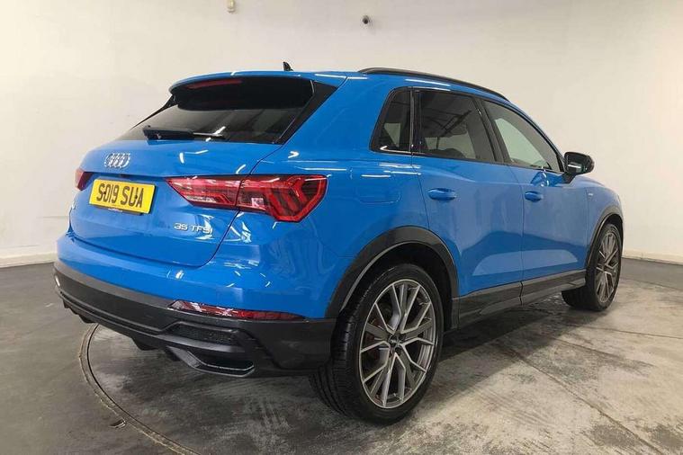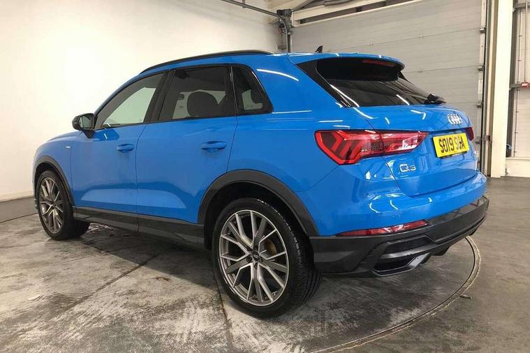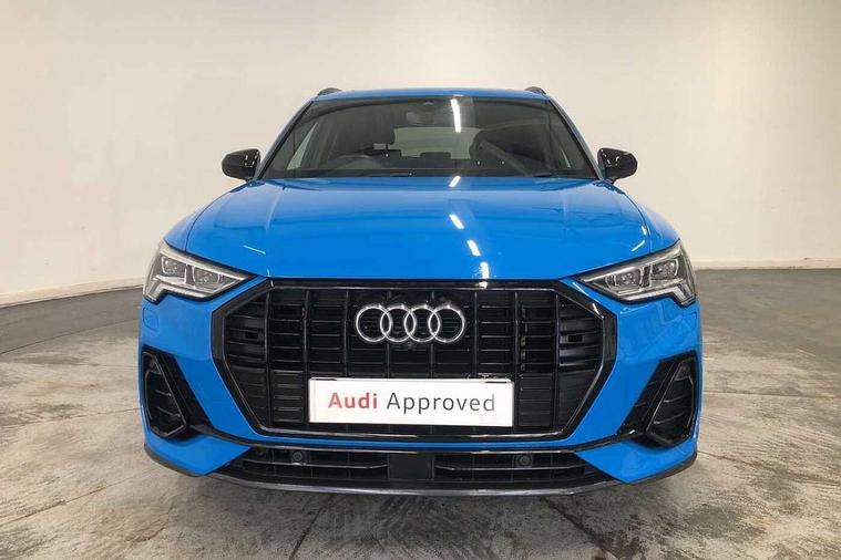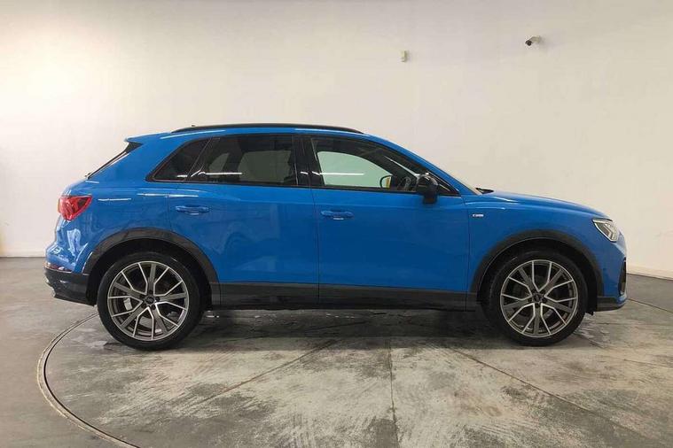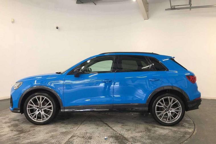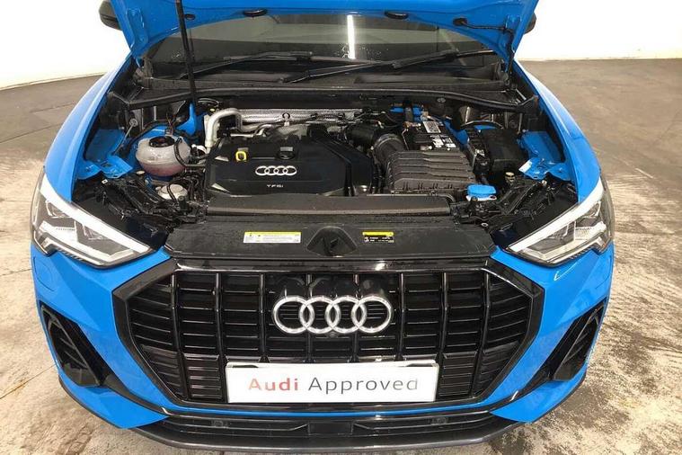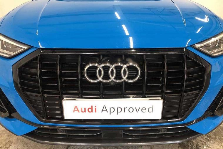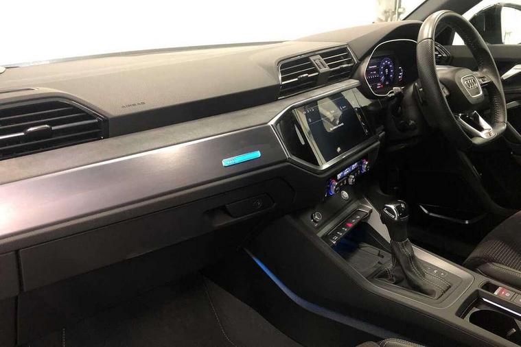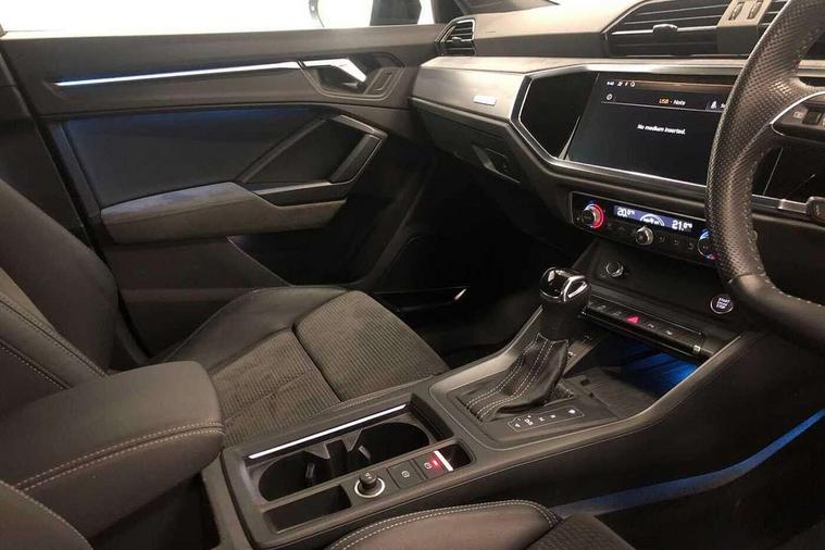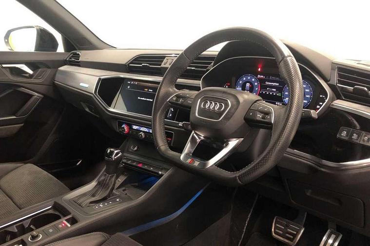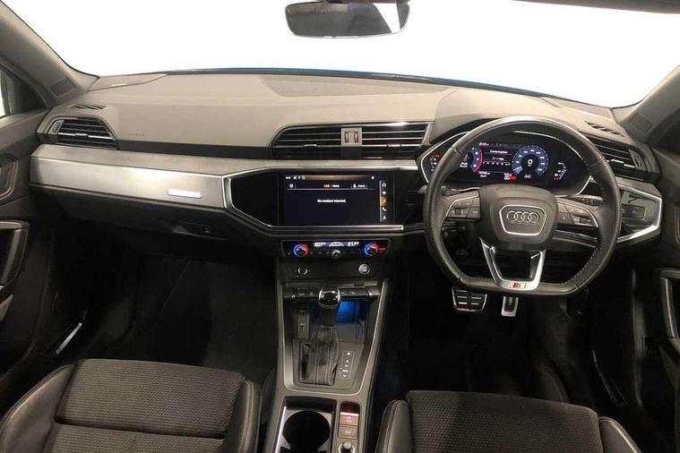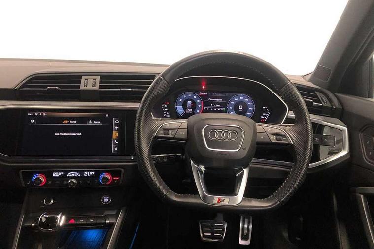 360 degree parking camera, Audi connect safety and service (e-call), Audi drive select, Audi lane departure warning, Audi parking system plus with front and rear sensors, Audi phone box with wireless charging, Audi side assist, Audi smartphone interface, Audi virtual cockpit plus, Bluetooth interface, MMI navigation plus with MMI touch, Power opening/closing tailgate, Progressive steering, Rear cross traffic alert, Service interval indicator, Stop/start system, Voice control system, Adaptive suspension with damping control, 1 x USB type C and 1 USB type A charging points, Bang & Olufsen 3D Premium Sound System, DAB digital radio module, Acoustic windscreen, Auto dimming and folding door mirrors, Auto dimming rear view mirror, Black roof rails, Contrast bumpers in Manhattan grey paint finish, Diffuser in matt Platinum grey, Electrically adjustable and heated door mirrors with integrated LED side indicators, Front and rear electric windows, Front fog lights, Front side air inlets in matt platinum grey, Front spoiler blade in matt platinum grey, Front spoiler in matt selenite silver, Grille vertical bars in aluminium silver/Matt, Headlight washers, High gloss black finish B and C pillars, Matrix LED headlights with LED rear lights and dynamic front and rear indicator, Panoramic opening glass sunroof, Privacy glass, Rain and light sensors, Rear diffuser strip in selenite silver, S line bumpers in contrasting Manhattan grey, 12V socket in rear centre console, 3 spoke flat bottomed high multi-function leather sport steering wheel with gearshift paddles, 4 way electric lumbar support for driver and front passenger, 40:20:40 split folding rear seat, Adjustable rear seat bench/backrest with centre armrest and cupholder, Aluminium door sill trims, Black cloth headlining, Dual zone climate control, Electrically adjustable front seats, Front and rear black floor mats with contrast stitching in rock grey, Front and rear headrests, Front centre armrest with storage compartment and angle adjustment, Heated front seats, ISOFIX child seat mounting and Top Tether with front passenger airbag deactivation, Perforated leather gearknob, Stainless steel luggage compartment sill finisher, Stainless steel pedals, Tool kit, Black styling pack - Q3, Driver Assistance Pack - Q3, Multi coloured extended ambient interior lighting pack - Q3, Non smoking pack - Q3, 3x3 point rear seatbelts, 6 airbags - Driver, front passenger, curtain and side windows, Electrically operated child locks on rear doors, Electromechanical parking brake, Electronic stabilisation control including ABS, ASR and EDL, Hill hold assist, Pre sense basic, Seatbelt monitoring, Tyre pressure warning, Warning triangle and first aid kit, Advanced key, Anti theft alarm, Anti theft wheel bolts, Audi pre-sense front with pedestrain and cyclist recognition, Remote central locking, Dark matt brushed aluminium inlay, MMI touch colour display in gloss black with aluminium surround, Tyre repair kit,