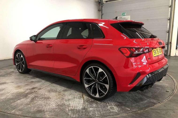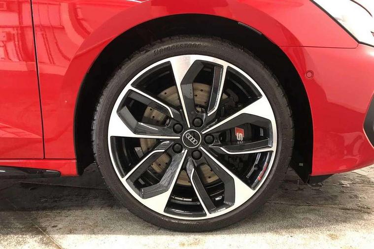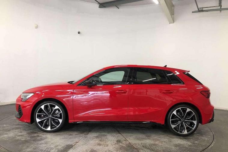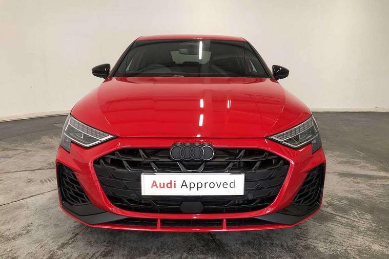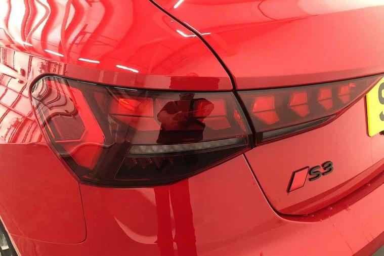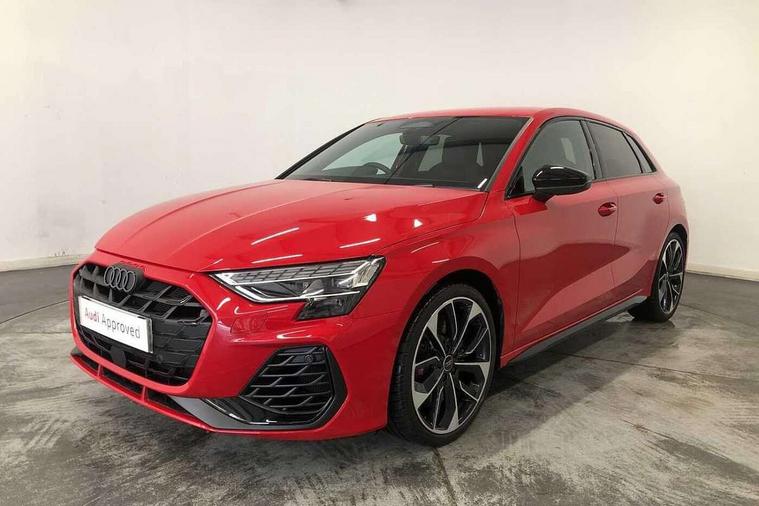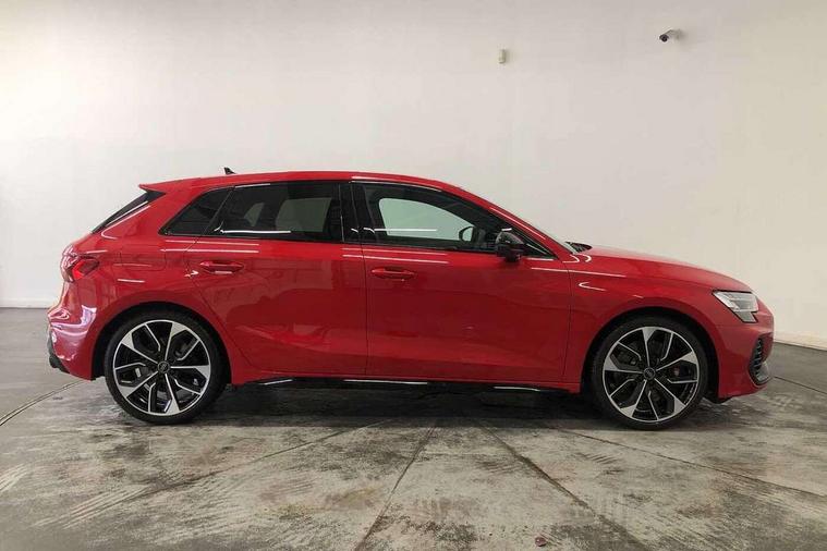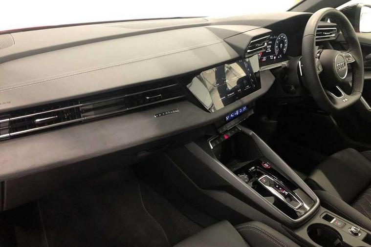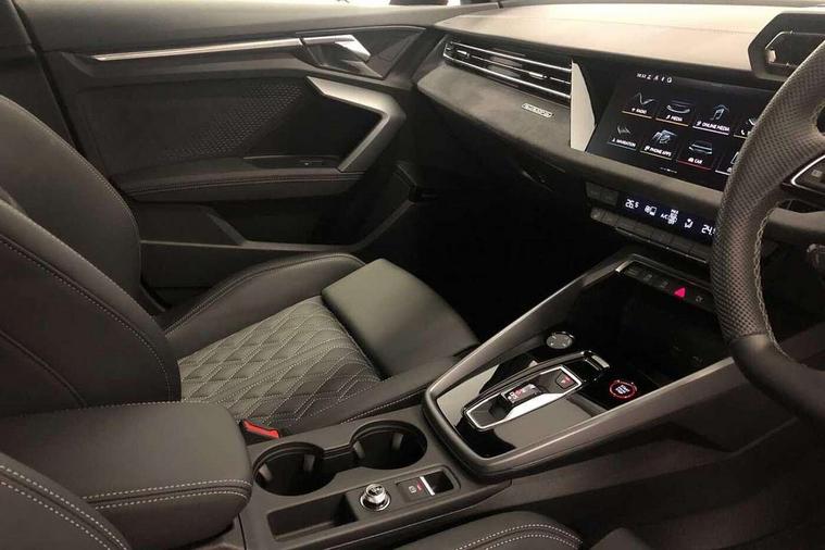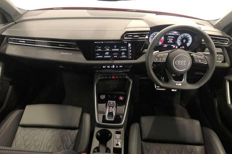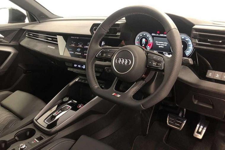 Adaptive cruise control (ACC), Adjustable speed limiter, Audi drive select (Auto, Comfort, Dynamic, Efficiency and Individual), Audi virtual cockpit plus - 12.3" full HD resolution dynamic digital instrument cluster, Automatic start/stop system with recuperation, Bluetooth interface, Camera based traffic sign recognition, Collision avoidance assistant, Driver attention and fatigue detection, e-Call (emergency call), Emergency assist, Intersection assist, Lane departure warning system, MMI Navigation Plus with high resolution 10.1" colour touch screen display, Park Assist with parking system Plus, Progressive steering, Reversing camera, Service indicator, Smartphone interface with app store includes wireless Apple carplay, Android auto and Amazon alexa integration, Trip computer, Voice control system with natural language interaction, quattro permanent all-wheel drive with torque splitter, S sport suspension with spring damper adjustment and lowering by 15mm, Audi Phonebox light with wireless charging, DAB Digital radio, USB ports with charging function in the rear, Anthracite grey Audi rings (front and rear), Audi Beam uses LEDs to project the rhombus S logo onto the ground as you exit your S3, Auto dimming frameless rear view mirror, Black accents front and rear bumpers including air inlets, Black accents in front grille and frame, Black accents in window trims, Electrically adjustable/heated/folding/auto dimming door mirrors with integrated LED indications + kerb view function for passenger side, Exterior model badging, Front and rear side air inlets in grained matt black with dark liquid chrome frame, Front electric windows, Front radiator grill in high gloss dark chrome, Heat insulating glass windscreen, Illuminated door sills with aluminium inserts at the front with S logo, LED 3rd brake light, Light and rain sensors, Privacy glass - dark tinted rear window, rear door and side windows, Rear diffuser and grill in grained matt black with inlay in dark liquid chrome, Rear electric windows, Rear side wing doors, Rear wiper, S grille, S3 front bumper with S specific air intake grilles, S3 roof spoiler, Side sill trim in dark liquid chrome, 12V socket and storage compartment in front centre console, 3 seat bench in 2nd row, 3 spoke flat bottomed leather multifunction sport steering wheel with gear shift paddles, 3-zone deluxe automatic air conditioning, 4 way electrically adjustable lumbar support for driver and front passenger, 40/20/40 split folding rear seat bench, Black cloth headlining, Black front and rear floor mats, Fine Nappa leather upholstery with front sports seats S embossed logo, Front and rear centre armrest in artificial leather with contrasting stitching on armrests and instrument panel, Front and rear headrests, Heated front seats, Height and reach adjustable steering wheel, i-Size child seat mounting on the front passenger side and outer rear seats, i-Size and top tether on the outer rear seats, Manual boot compartment lid, Manually adjustable front seats, Rear centre armrest with cupholder, S badging on the steering wheel, Seat side bolsters, Single front passenger seat, Stainless steel pedals and front footrest in black, Aluminium interior elements pack - A3, Storage package - A3, Technology pack with Matrix LED headlights - A3, 3x3 point rear seat belts, Driver and front passenger airbag with passenger airbag deactivation, Electronic Stabilisation Control (ESC) including ABS, ASR and EDL, First aid kit with warning triangle and 2 safety vests, Front side airbags with head airbags and interaction airbag, Hill hold assist, Pre-sense front with pedestrian and cyclist detection, Seatbelt monitoring, Tyre pressure loss indicator, Anti theft alarm, Anti-theft wheel bolts, Electronically operated child locks, Immobiliser, Black dashboard, Tyre repair kit,