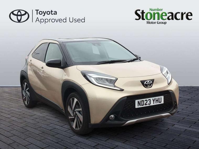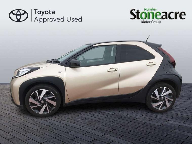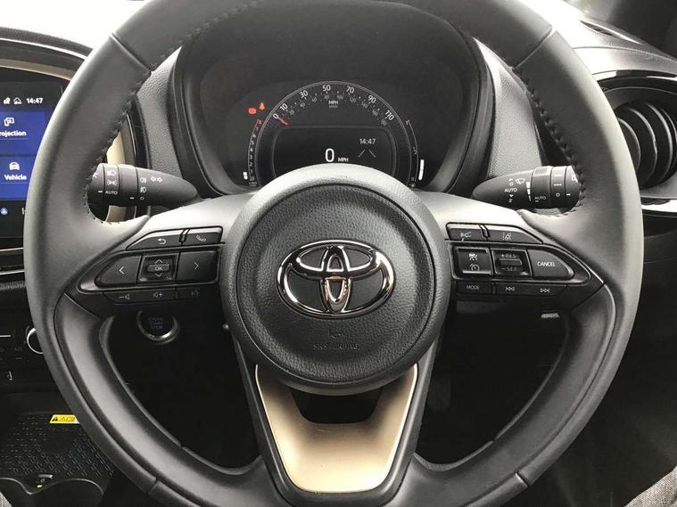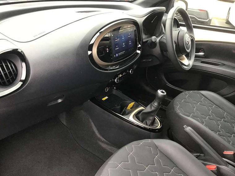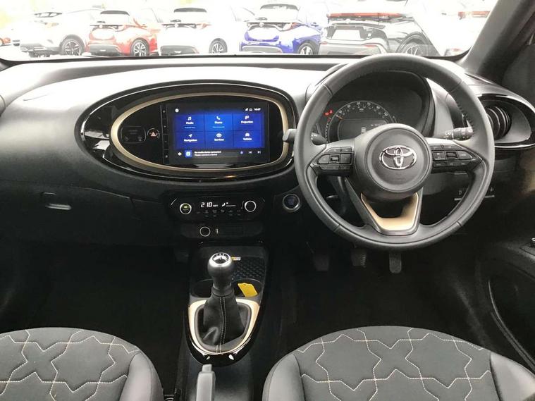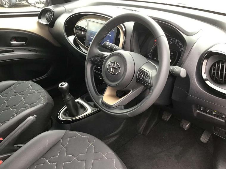 4.2" TFT colour screen, Adjustable speed limiter, Analogue speedometer, Bluetooth connectivity, Digital tachograph, Driver attention alert system, eCall emergency call system, Electric power steering, Front and rear parking sensors with auto brake, Intersection turn assist, Key reminder warning, Noise reduction kit, Pre collision system with emergency steering assist, Remote boot door release on key, Reversing camera with static guide lines, Smart entry and push button start, Speed limit display, Start and stop, Wireless charger, Wireless Smartphone Integration includes Apple CarPlay and Android auto, Vehicle Stability Control (VSC), 4 speakers, 9" HD multimedia display touch screen with Toyota smart connect, DAB digital audio broadcast, USB connector, Auto headlights, Auto wipers, Automatic headlights cut-off, Automatic high beam On/Off switch, Bicycle towing hook, Black fog light surrounds, Black side protection mouldings, Black wheel arch mouldings, Body colour door handles, Body coloured front bumper, Boot door scuff plate, Eclipse black rear bumper, Electric heated door mirrors, Follow me home headlights, Front and rear underruns in silver, Front fog lights, Front power windows, Gloss black door mirrors, Gloss black upper front grille, Headlight cut-off reminder, LED daytime running lights guide, LED front light guide, LED High mounted stop lamp, LED projector headlights, Manual day/night rear view mirror, Manual headlight levelling, Pagoda roof, Power adjustable door mirrors, Power back door, Privacy glass, Rain sensor, Rear combination lights LED bulb type, Rear side wing doors, Rear windscreen defogger, Rear windscreen wiper, Remote hazard lights system, Short antenna, Variable intermittent windscreen wipers, 12v power outlet - front, 2 seat bench in 2nd row, 3 spoke leather steering wheel, 50/50 split folding rear seat, Adhesive roof headlining, Adjustable speed limiter switch on steering wheel, Audio and telephone switches on steering wheel, Auto air conditioning, Black roof lining, Body colour satin anodised insert on steering wheel, Boot light, Centre room light, Chrome interior door handles, Chrome surround on air conditioning buttons, Clean air filter, Console box storage, Floor mats, Front and rear cup holders, Front head rest deco art, Front head restraints, Height adjustable driver seat, Intelligent adaptive cruise control switch on steering wheel, ISOFIX child restraint system on rear seats, Lane departure alert switch on steering wheel, Leather gearshift knob, Light blue ambient lighting in centre console, Manual tilt steering wheel, Manually reclining and sliding driver seat, Manually reclining and sliding front passenger seat, Multimedia switches on steering wheel, Partial synthetic leather upholstery, Pollen filter, Rear door pockets, Rear head restraints, Satin silver insert on gear shift knob, Single compartment glovebox with lights, Single front passenger seat, Soft tonneau cover, Sun visors with mirror on driver and passenger side, Voice recognition switch on steering wheel, Toyota safety sense pack - Aygo X, Anti lock braking system + Electronic brake force distribution, Child safety door lock, Emergency brake light signal (EBS), Hill start assist control (HAC), Passenger airbag on/off switch, Seat belt reminder for front and rear seats, Supplement restraints system (SRS) - 6 airbags, Traction control, Tyre pressure warning system, Immobiliser, Remote power door locks, Black wheel centre caps, Tyre repair kit,