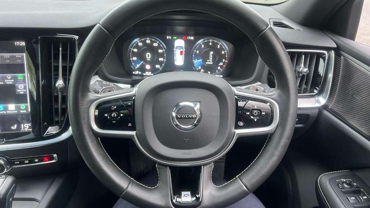 12.3" Active TFT crystal driver's information display, 9" centre console touch screen, Adjustable steering wheel force, Bluetooth handsfree system, Drive mode settings, Driver alert control with lane keeping aid, Hands free boot opening, Oncoming Lane Mitigation, Sensus navigation with European mapping and traffic information, Service interval indicator, Speed limiter, Speed sensitive steering, Trip computer, Voice activated control for key functions, Volvo on call, 8 speed automatic transmission with start/stop + manual change functions, Auxiliary input socket, DAB Radio (Digital Audio Broadcasting), Active high beam, Adaptive brake lights with high level LED brake lights, Auto dimming interior mirror, Automatic active bending LED headlights with adaptive shadow technology incorporating day running lights, Automatic headlight levelling system, Body colour bumpers, Colour coordinated auto folding and heated power door mirrors, Dual integrated exhaust pipes with high gloss black surround, Front and rear power windows, Front LED fog lights with cornering function, Headlight cleaning system, High gloss black door mirrors and window surround, High gloss black mesh front grille with silk metal surround, Home safe and approach lighting, Puddle lights, R Design tread plates, Rain sensor with automatic windscreen wiper activation, Rear diffuser, Roof antenna, Roof spoiler, Visible VIN plate, 2 zone electronic climate control with Clean zone air quality system + pollen filter, A-pillar parking ticket holder, B Pillar ventilation, Black headlining, Centre console cupholders, Contour sports seats with nappa leather/textile upholstery, Driver and front passenger seat cushion extension, Fixed rear seat and headrests, Front and rear footwell and side step illumination, Front and rear reading lights and centre armrest Storage Illumination, Front head restraints, Front/rear door pockets and front cupholder illumination, Glovebox compartment with illumination, Heated front seats, Height/reach adjustable steering column, High gloss black steering wheel remote infotainment controls, Illuminated vanity mirrors + ticket holder, ISOFIX attachment on outer rear seats, Leather sports steering wheel with gearshift paddles, Lockable glovebox, Luggage compartment illumination, Luggage compartment net pocket, Multicolour theatre lighting, Power driver seat with multi directional lumbar support and memory for seat and exterior mirrors, Rear armrest with storage + cupholders, Rear head restraints, Sports floor mats, Sports leather gear knob, Sports pedals, Tailgate illumination and ambient door lighting, Underfloor cargo storage, 5 x 3 point seatbelts, City safety with steering support with Pedestrian + cyclist + large animal detection + front collision warning with full auto brake, Dual stage driver/passenger airbags, First aid kit, Front passenger airbag cut off switch, Front seats SIPS airbags, Hill start assist, IC (Inflatable Curtains) - Full Length, Mechanical child locks on rear doors, Power parking brake with auto hold function, Road sign information display, Run off Road Mitigation, Run off Road Protection, Seatbelt reminder and pretensioners for all seats, SIPS (Side Impact Protection System), Slippery road and hazard light alert, Stability and Traction Control with Spin control, Engine Drag Control and Corner Traction Control, Tyre pressure monitoring system, Vehicle deceleration control with Anti-lock Brake System, Electronic Brake Distribution and Emergency Brake Assist, Warning triangle, WHIPS whiplash protection system - front, Anti-theft alarm including immobiliser/volume sensor + level sensor, Keyless drive (includes keyless entry and keyless start) with remote tag, Locking wheel nuts, Nappa leather key integrated remote control central locking including fuel flap with deadlocking system and auto open/close power windows, Private locking for bootlid, Metal mesh inlays,